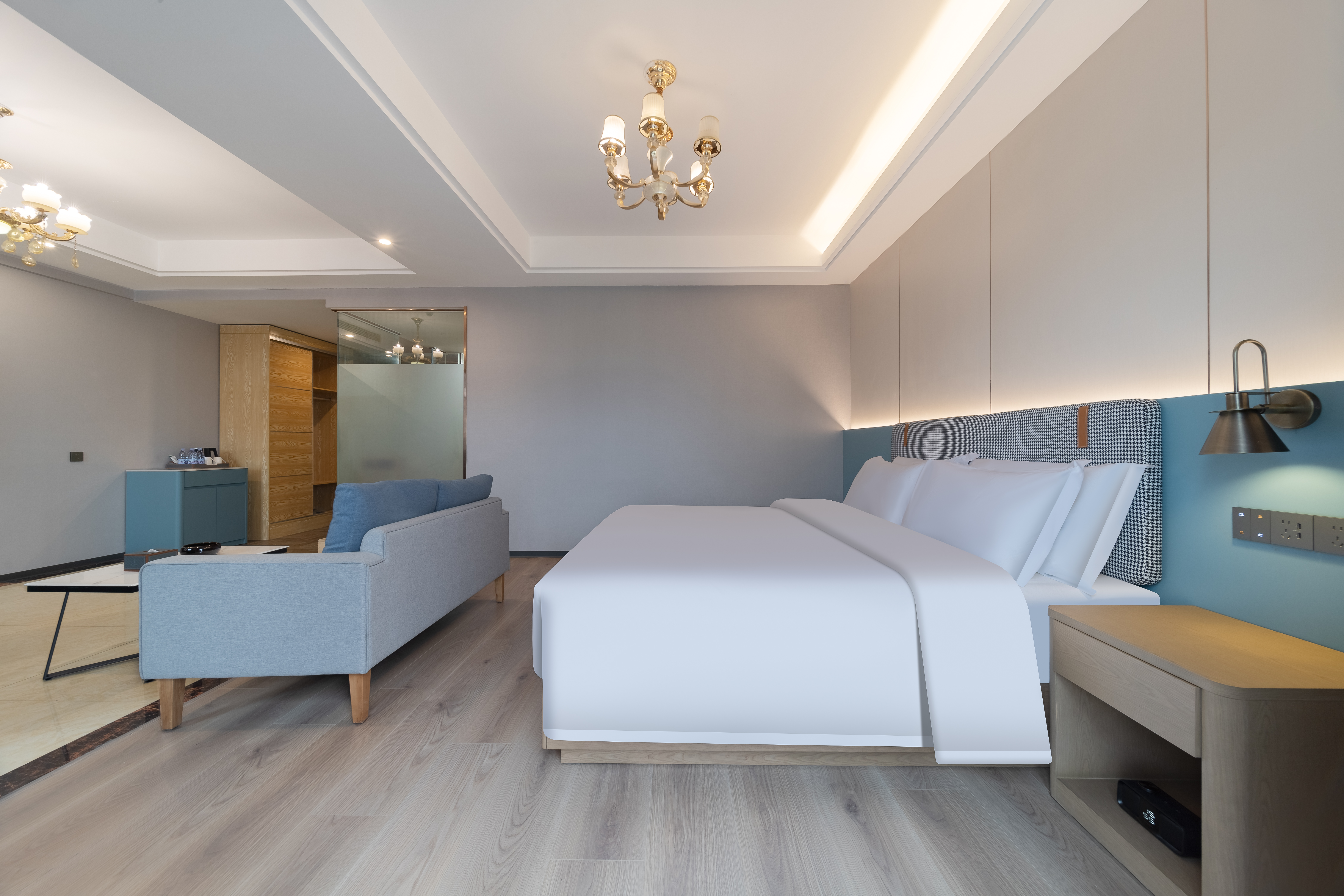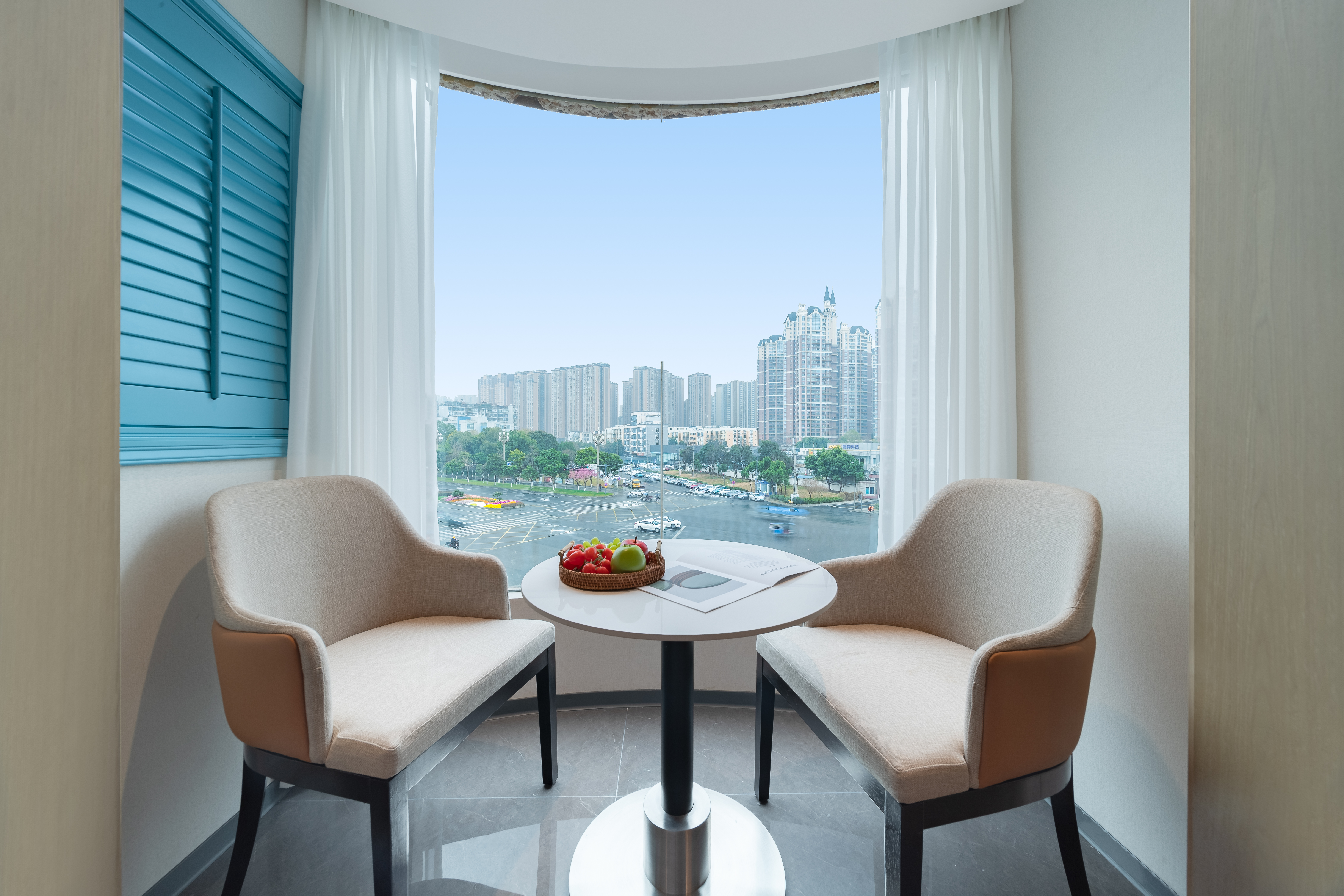 雅致休闲套房(休闲沙发+小冰箱+外景落地窗)