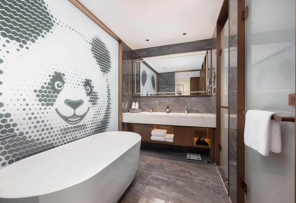 商务大床房(艺术熊猫墙+超大浴缸+全景落地窗)