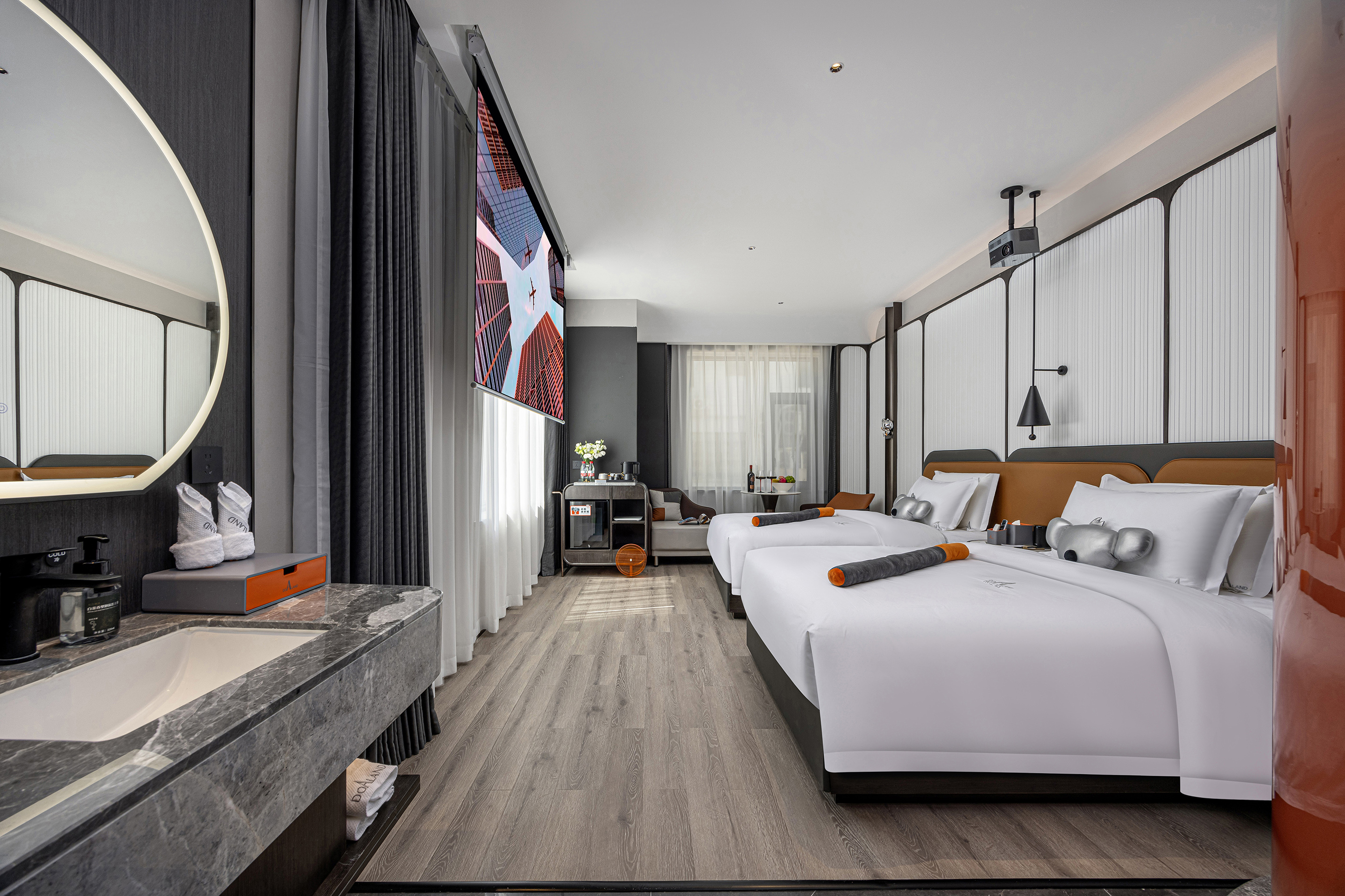 Noble朵拉沉浸观影双床房(巨幕投影+智能客控+冰箱)