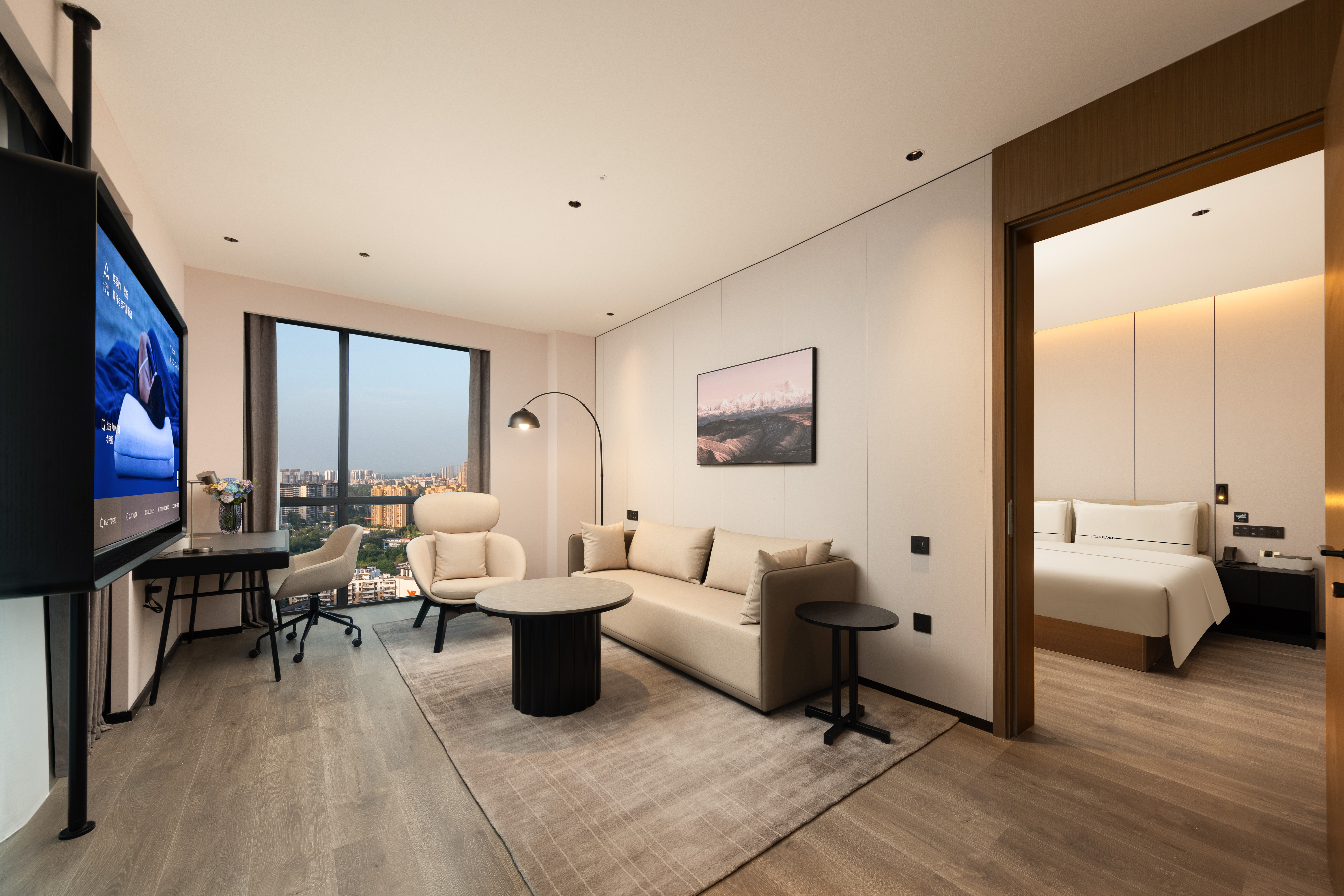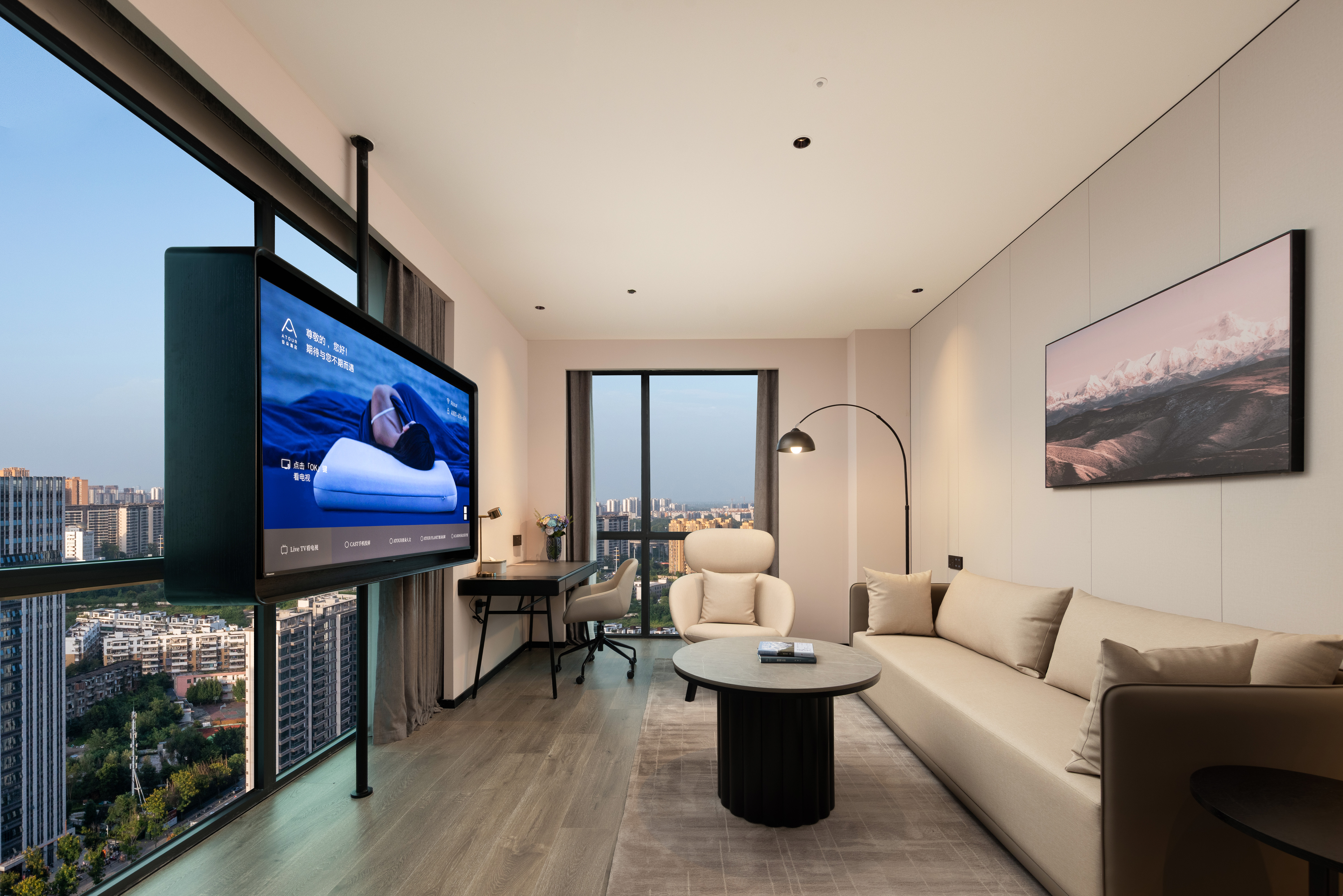 高级城景大床房(四层隔音窗户+深睡床垫枕头+冰箱)