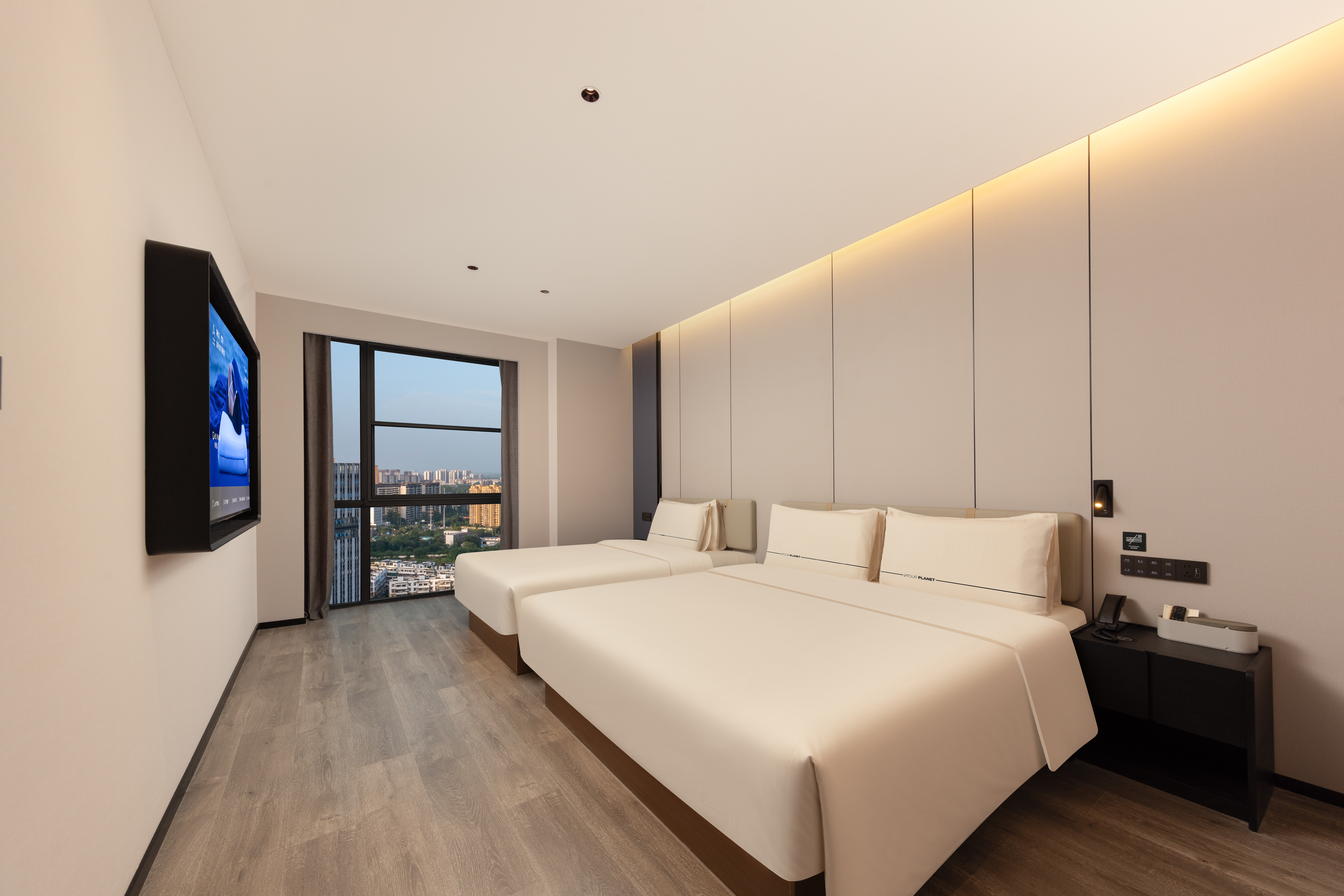 高级城景双床房(四层隔音窗户+深睡床垫枕头+冰箱)