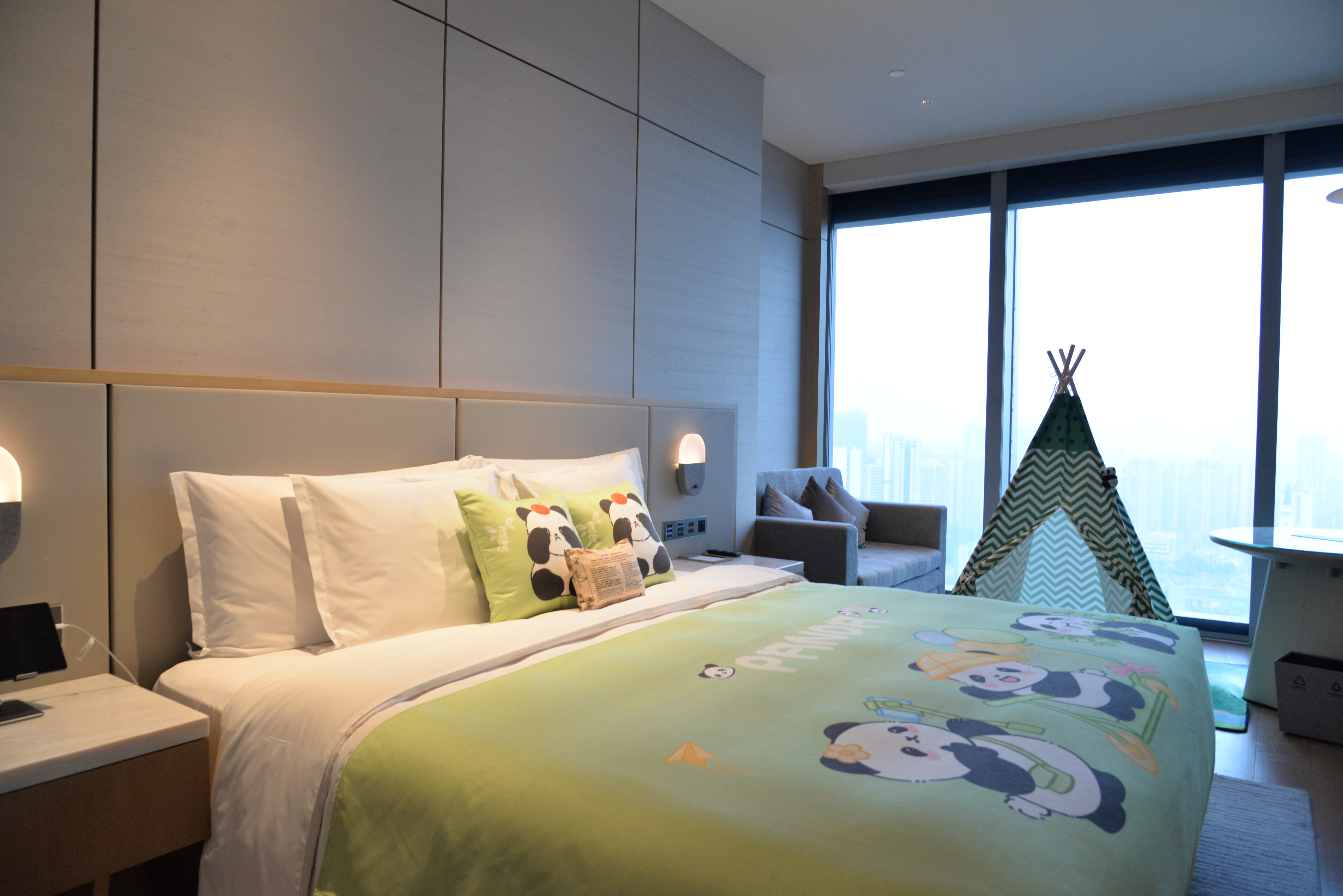 熊猫亲子主题大床房(熊猫主题布置+全落地窗江景)