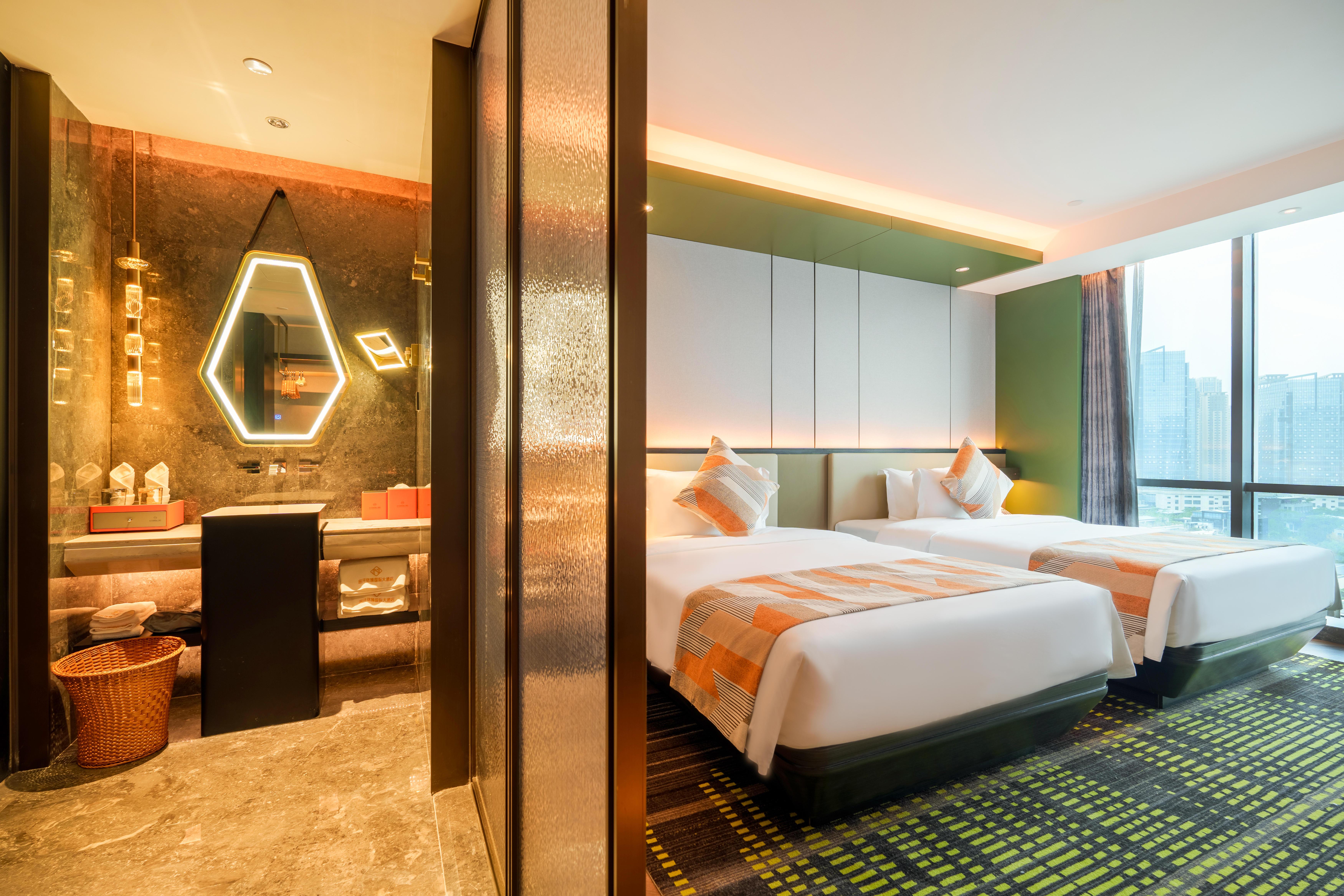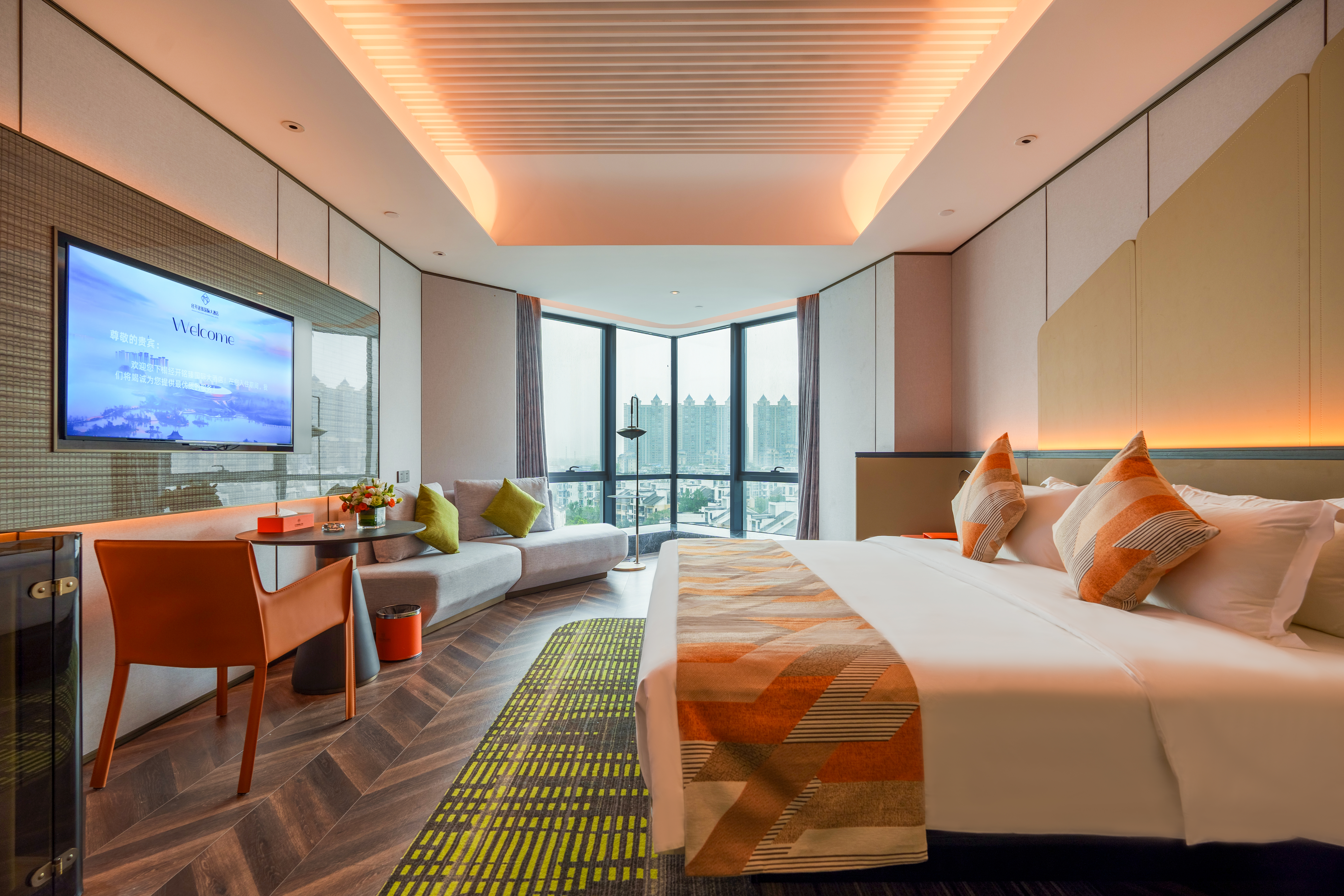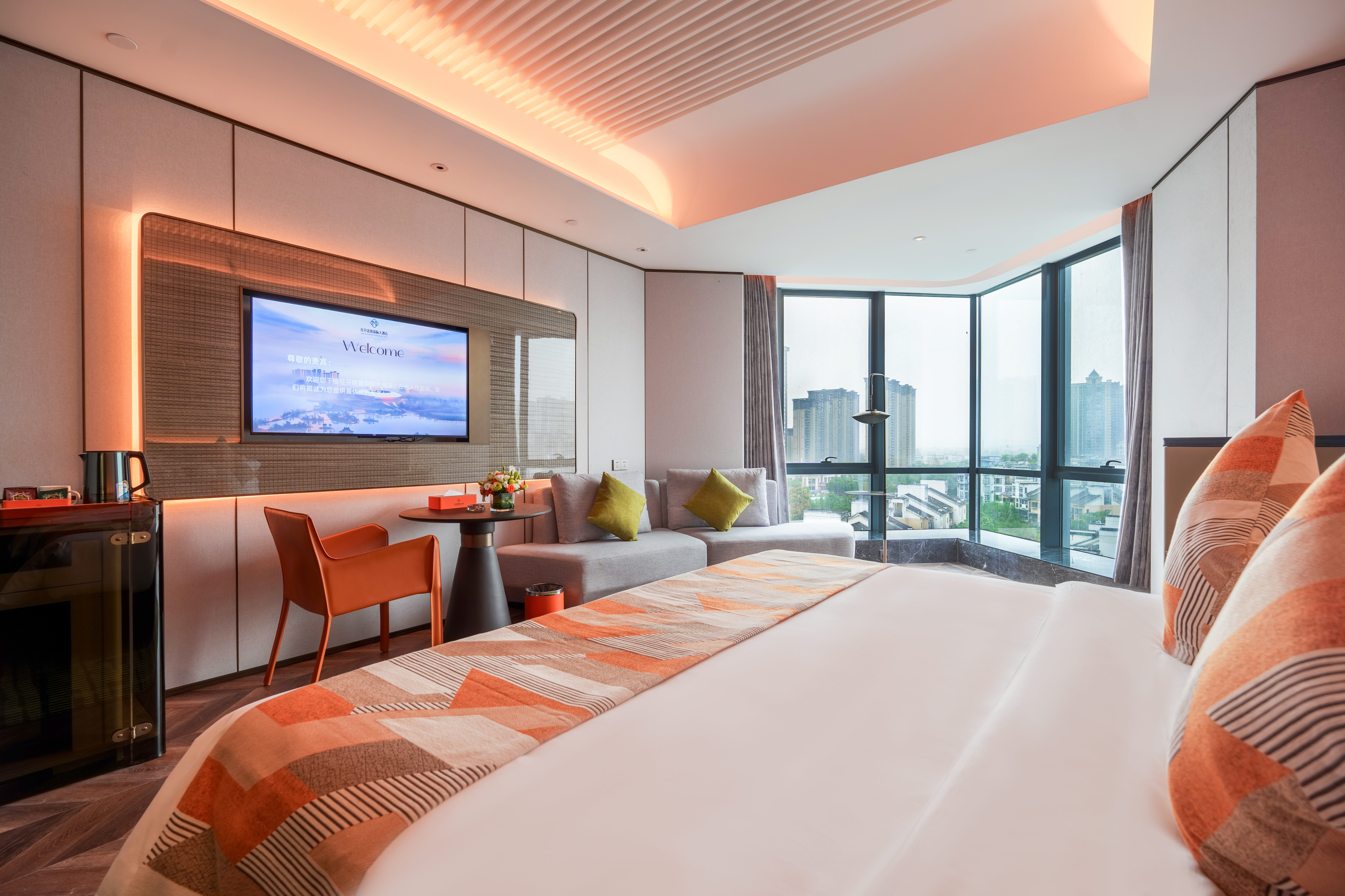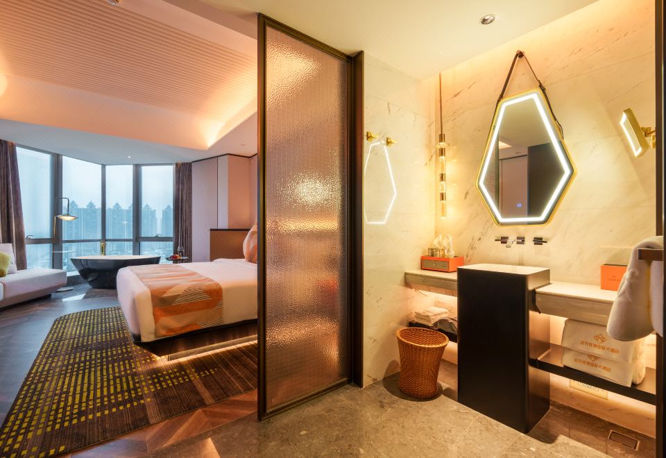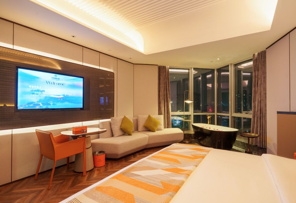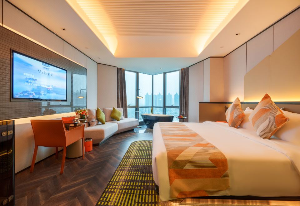 城景雅致大床房丨智能客控+悬浮床+全景落地窗