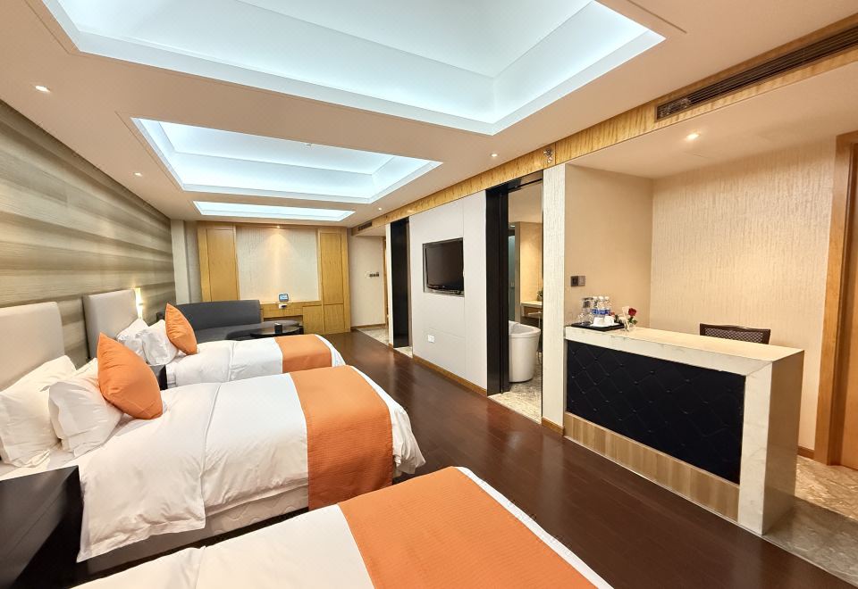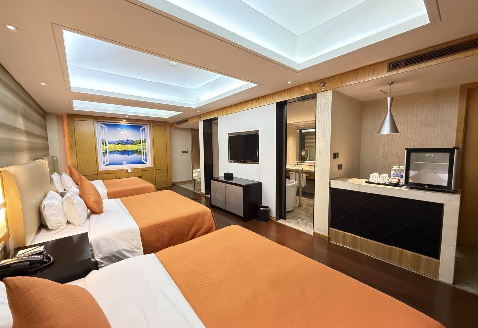 丽雅静谧三人套房+三张大床+双洗漱台+吧枱+浴缸