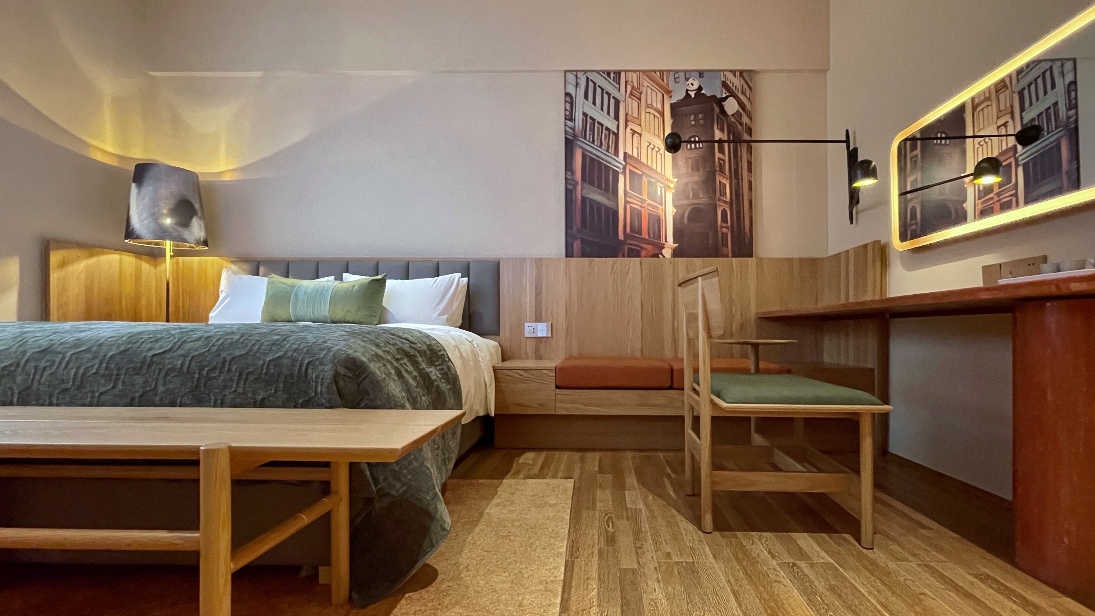熊猫·打盹大床房(遮光风琴帘+熊猫雕塑+熊猫元素)