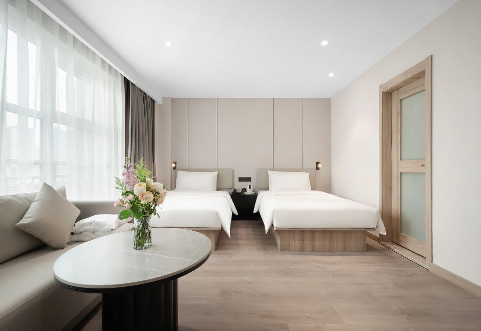 雅致双床房(小冰箱+65寸投屏电视)