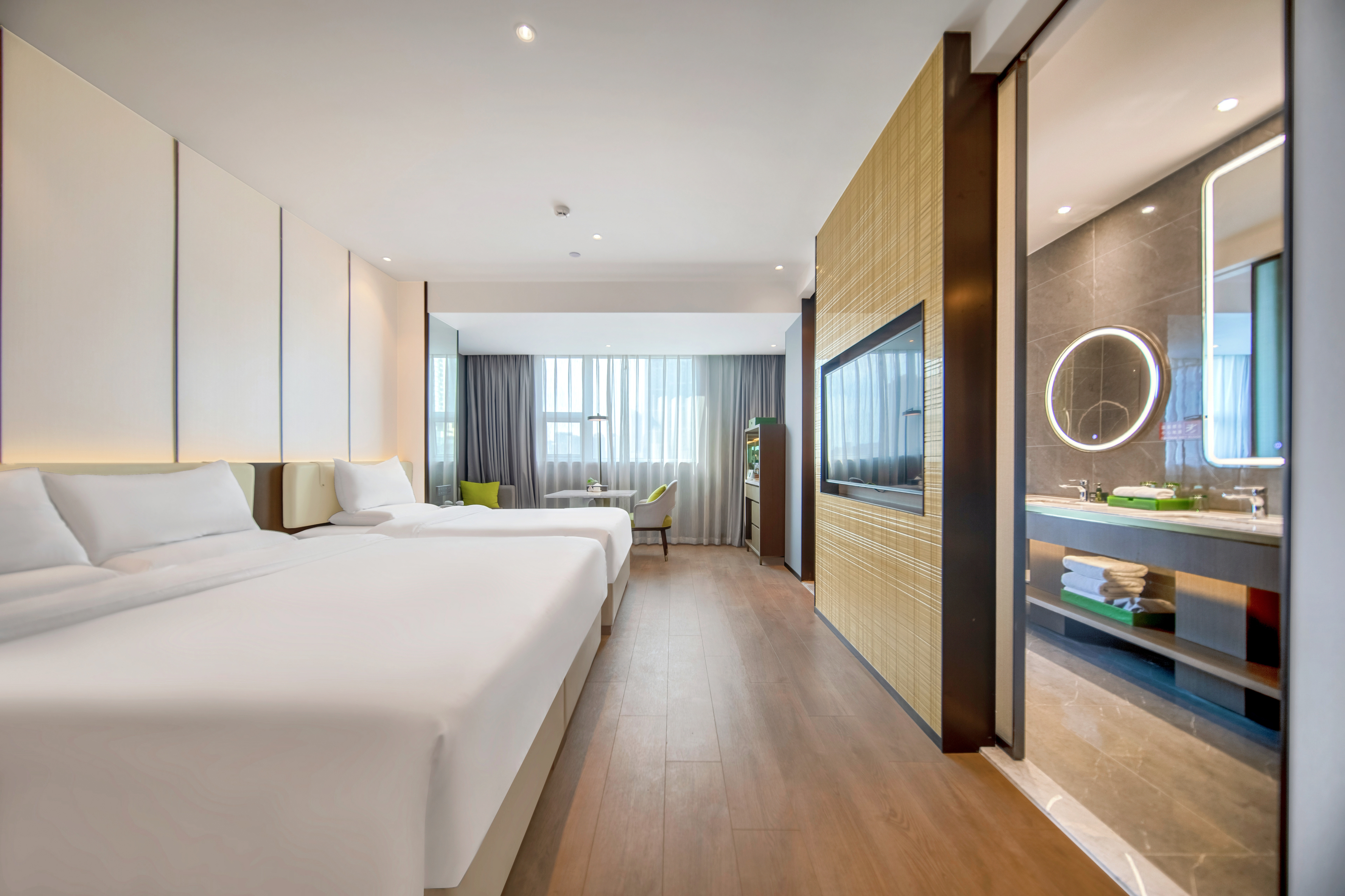 金悦三床房-超宽衞浴(三标准床+投屏+小冰箱)