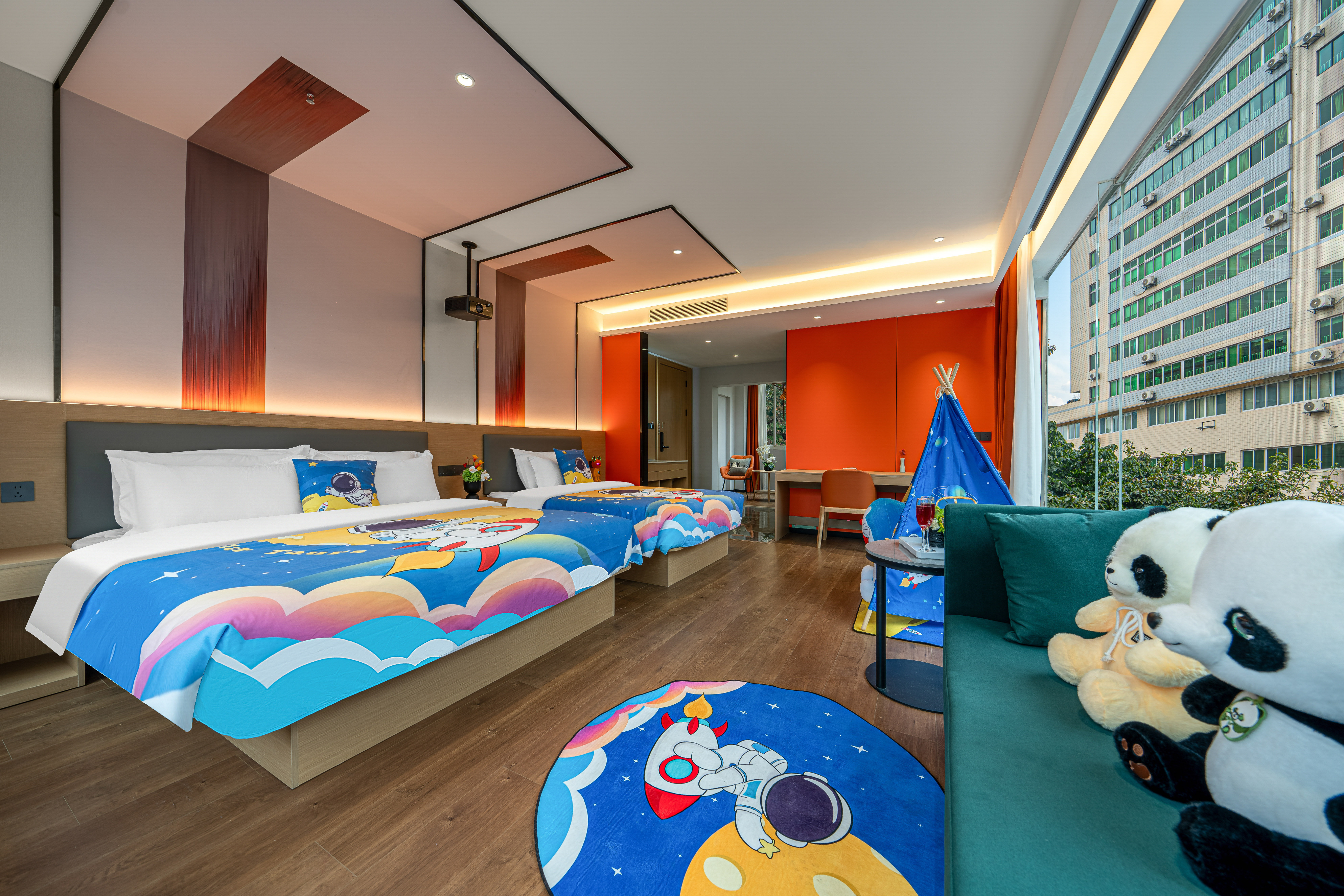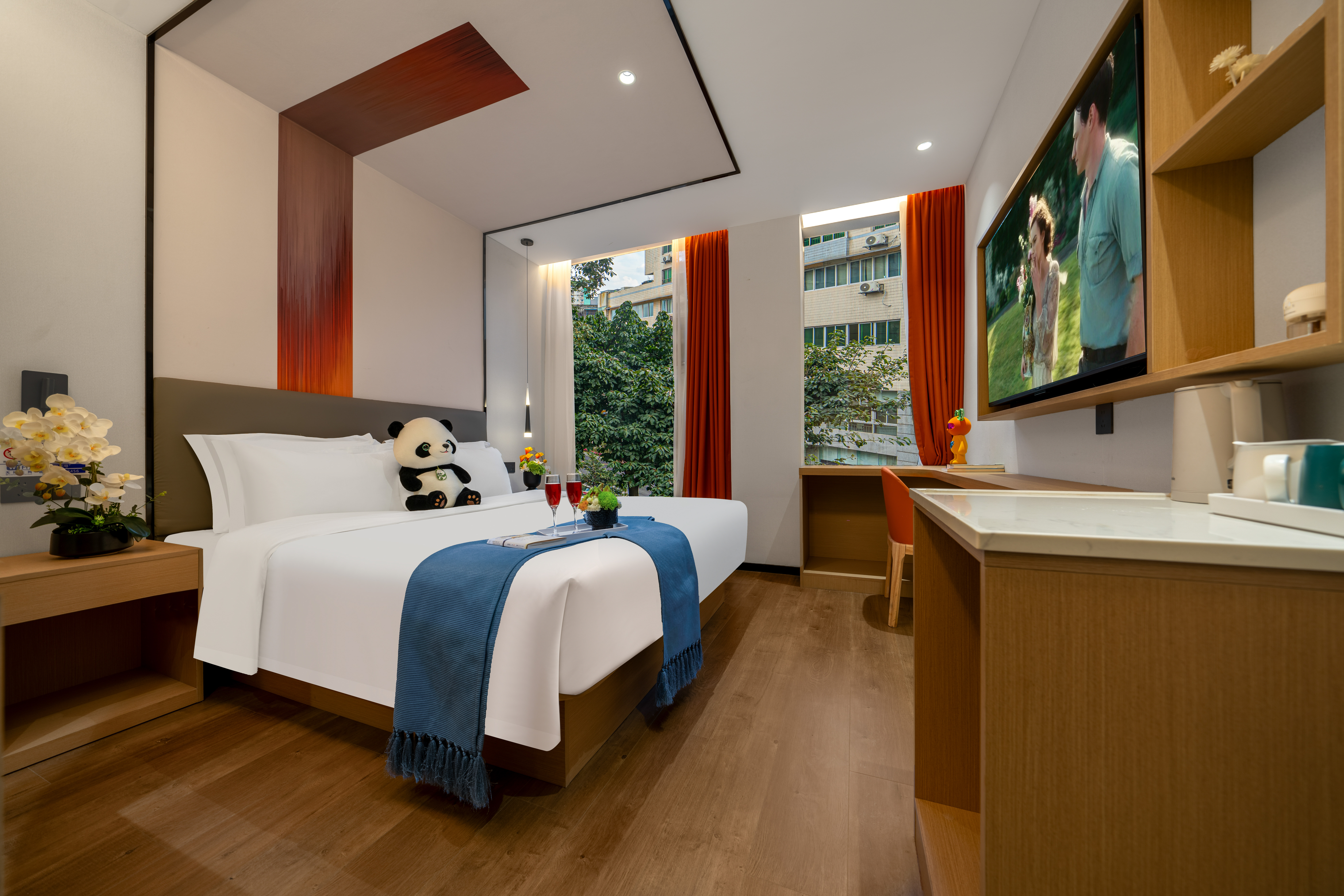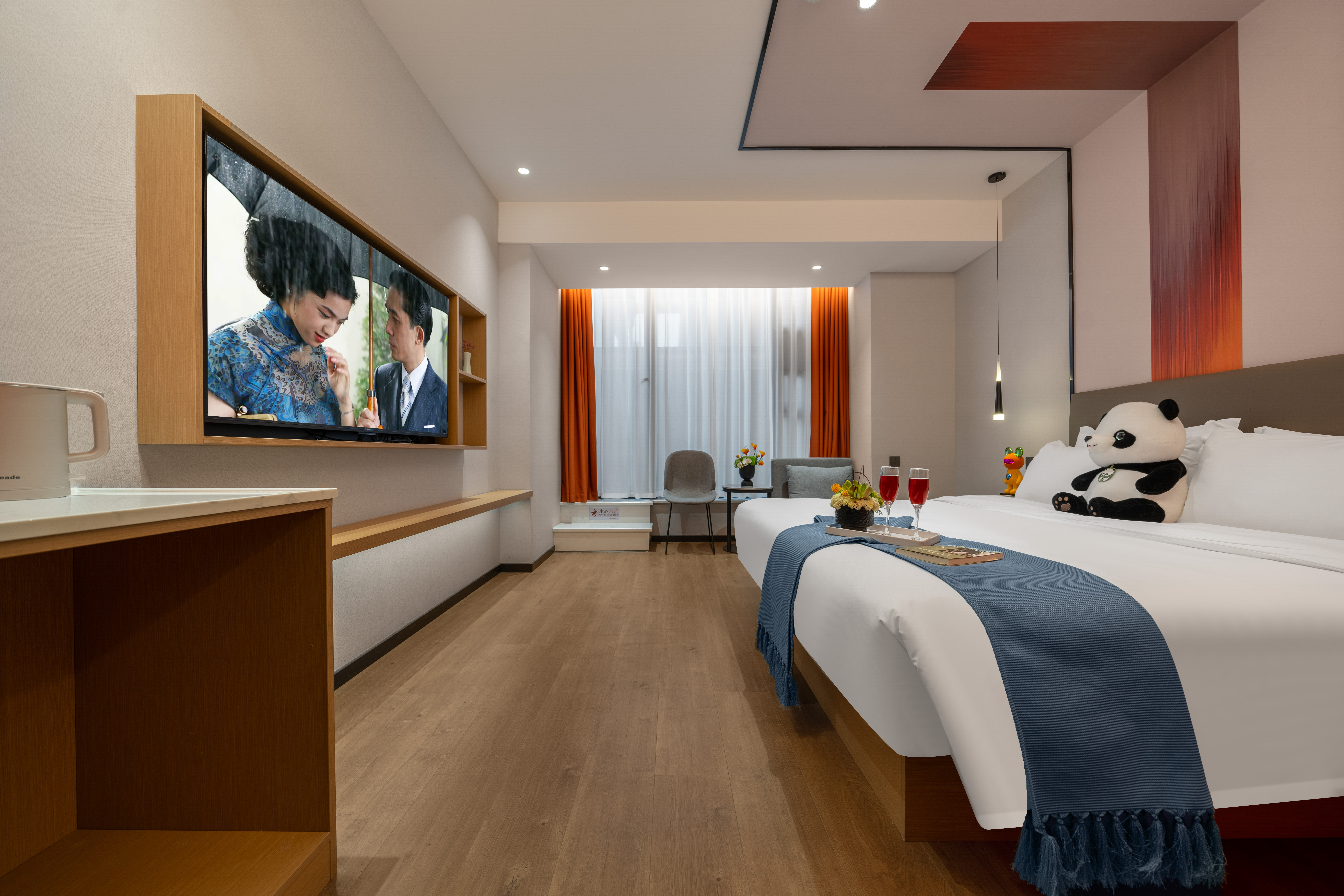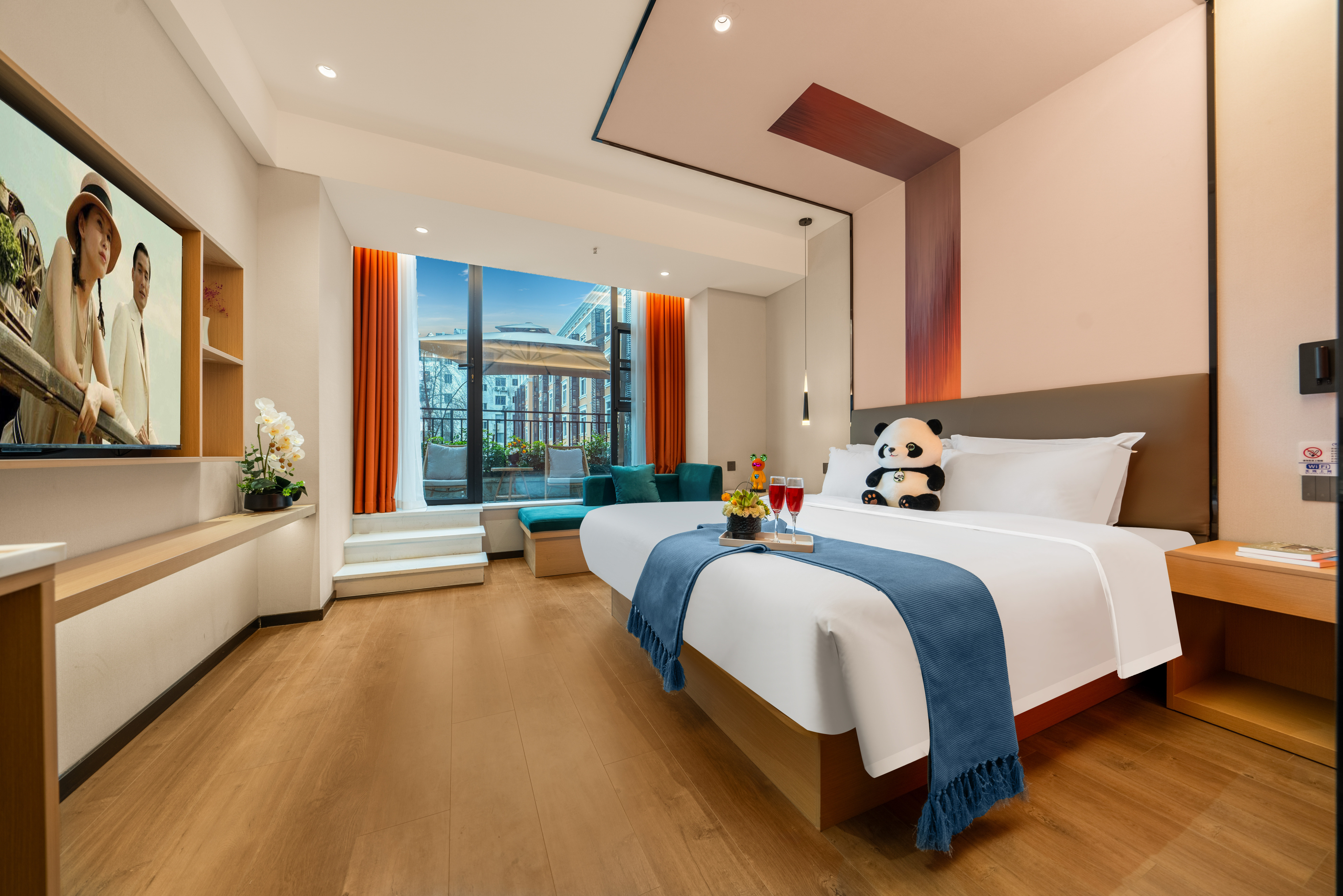 橙意满满阳光大床房+影视畅看+零压床垫枕头+雨淋顶喷