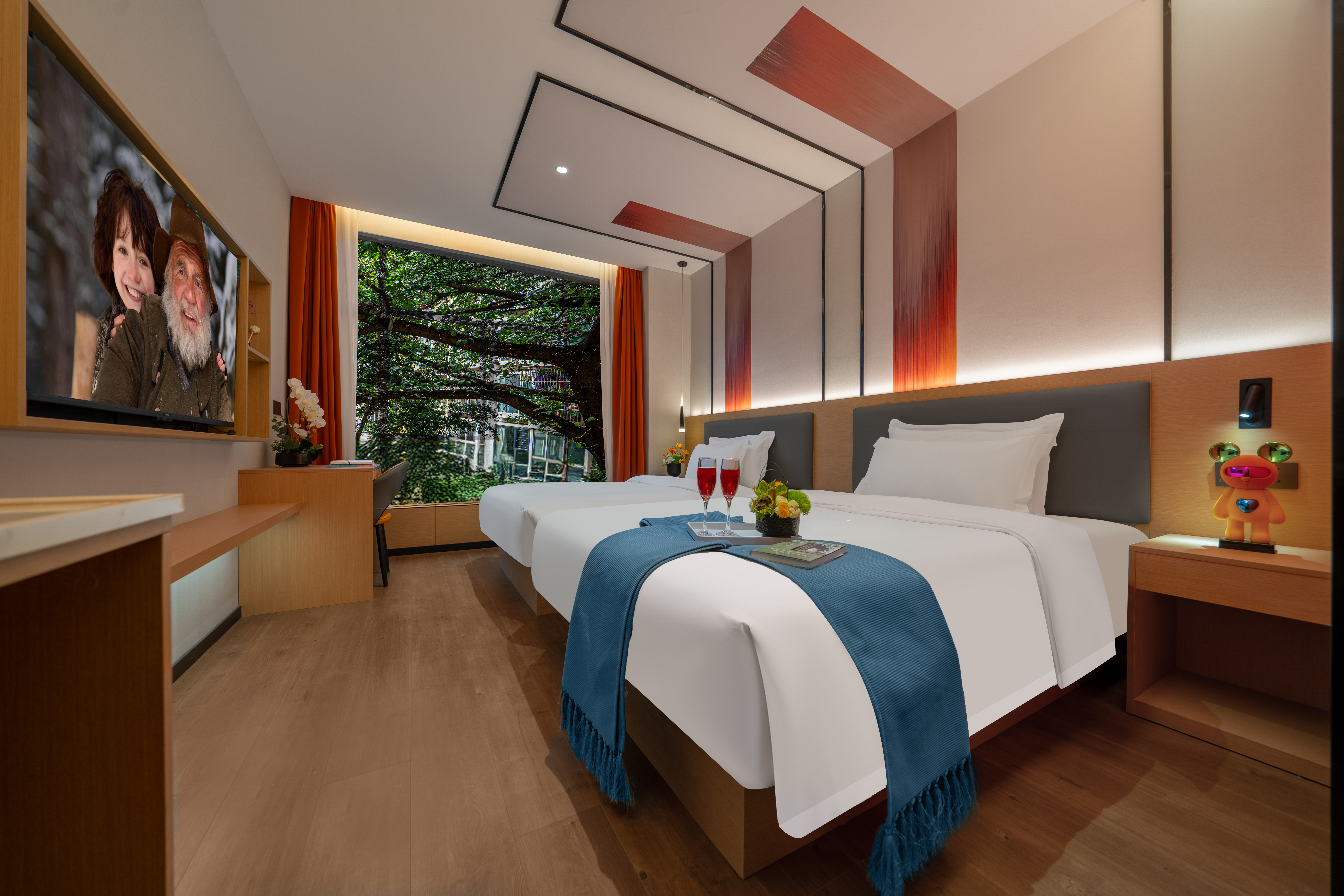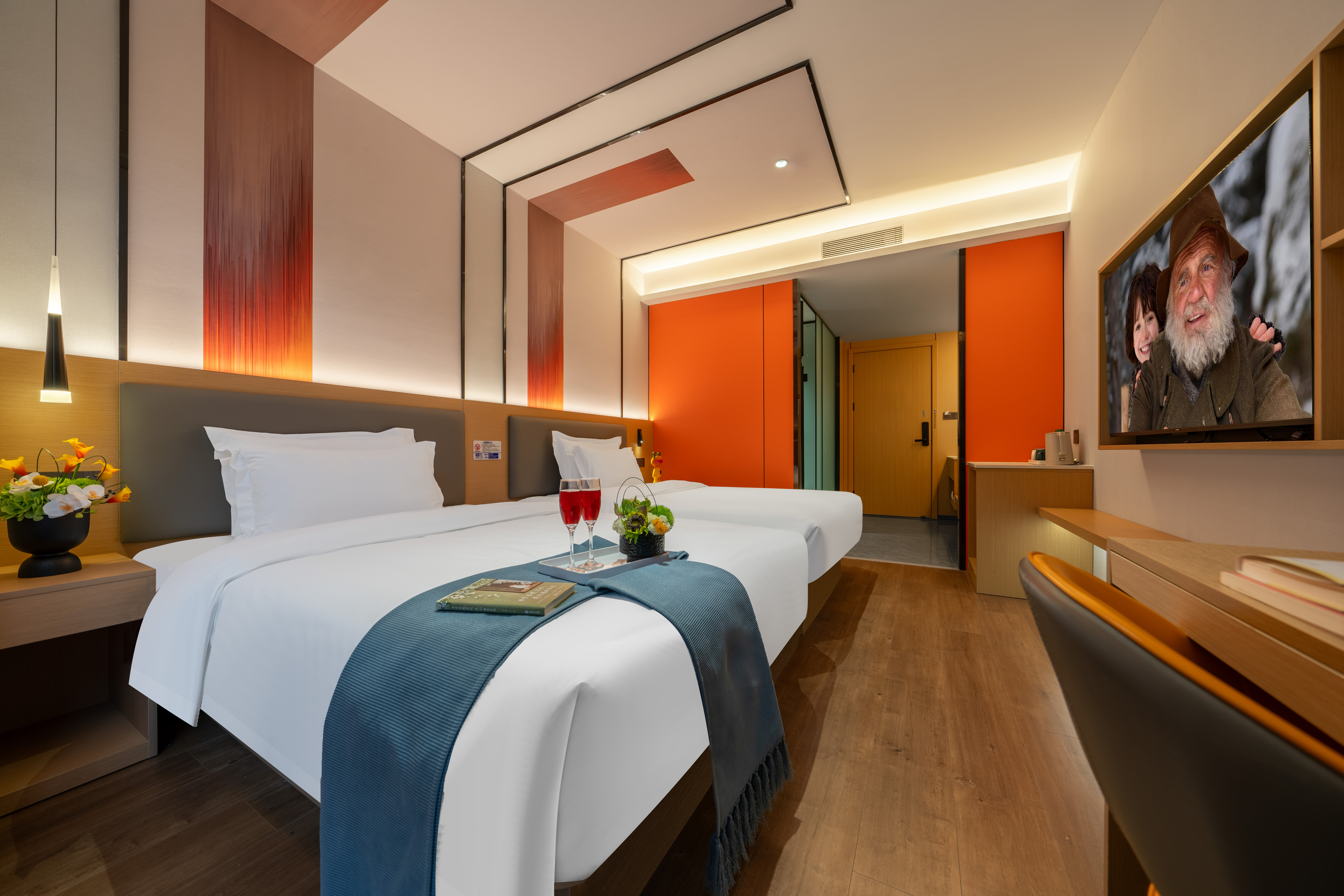 庭院安眠双床房.影视畅看+零压品牌床垫枕头+雨淋顶喷