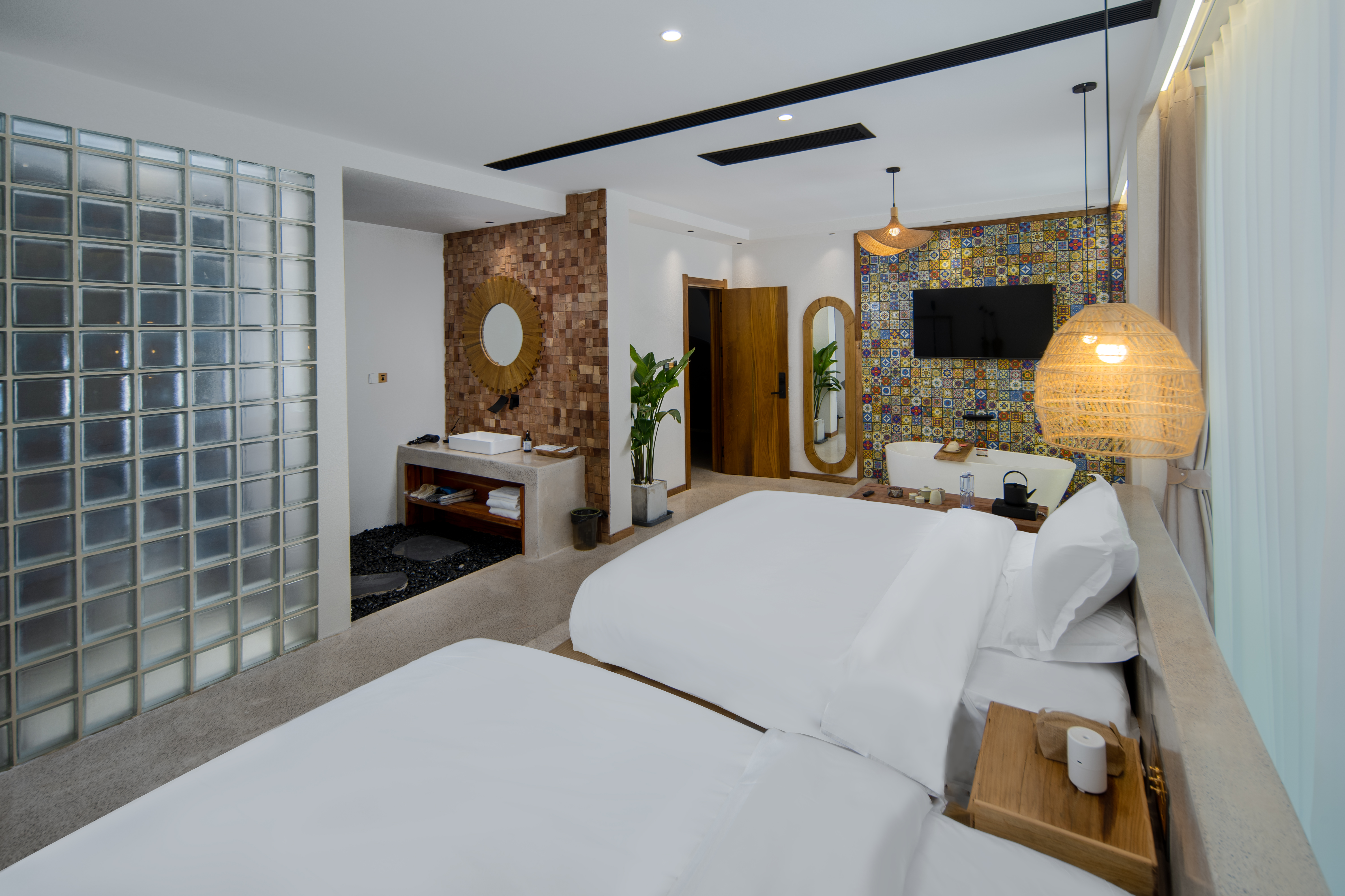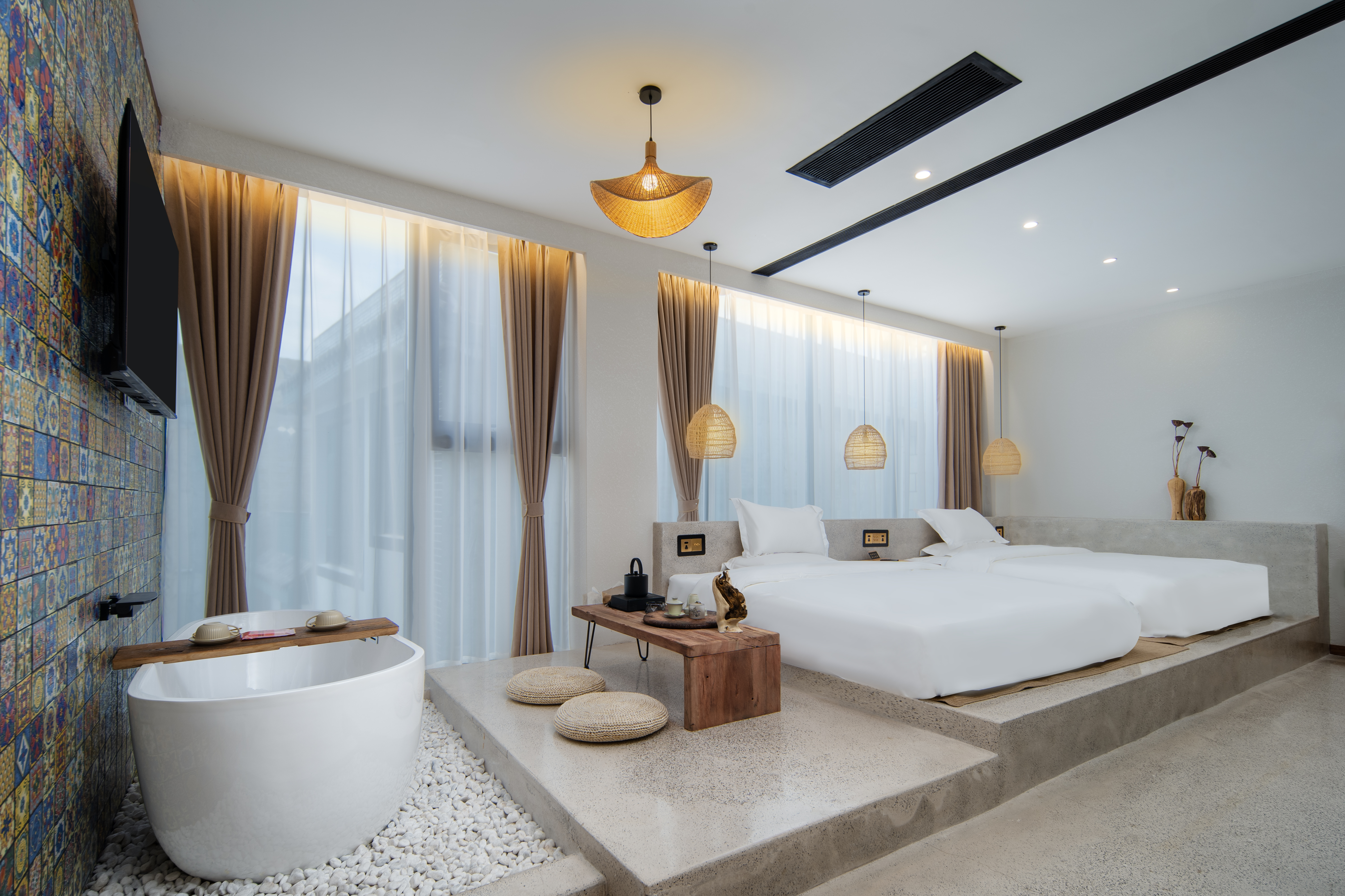 落霞。泡池亲子双床房