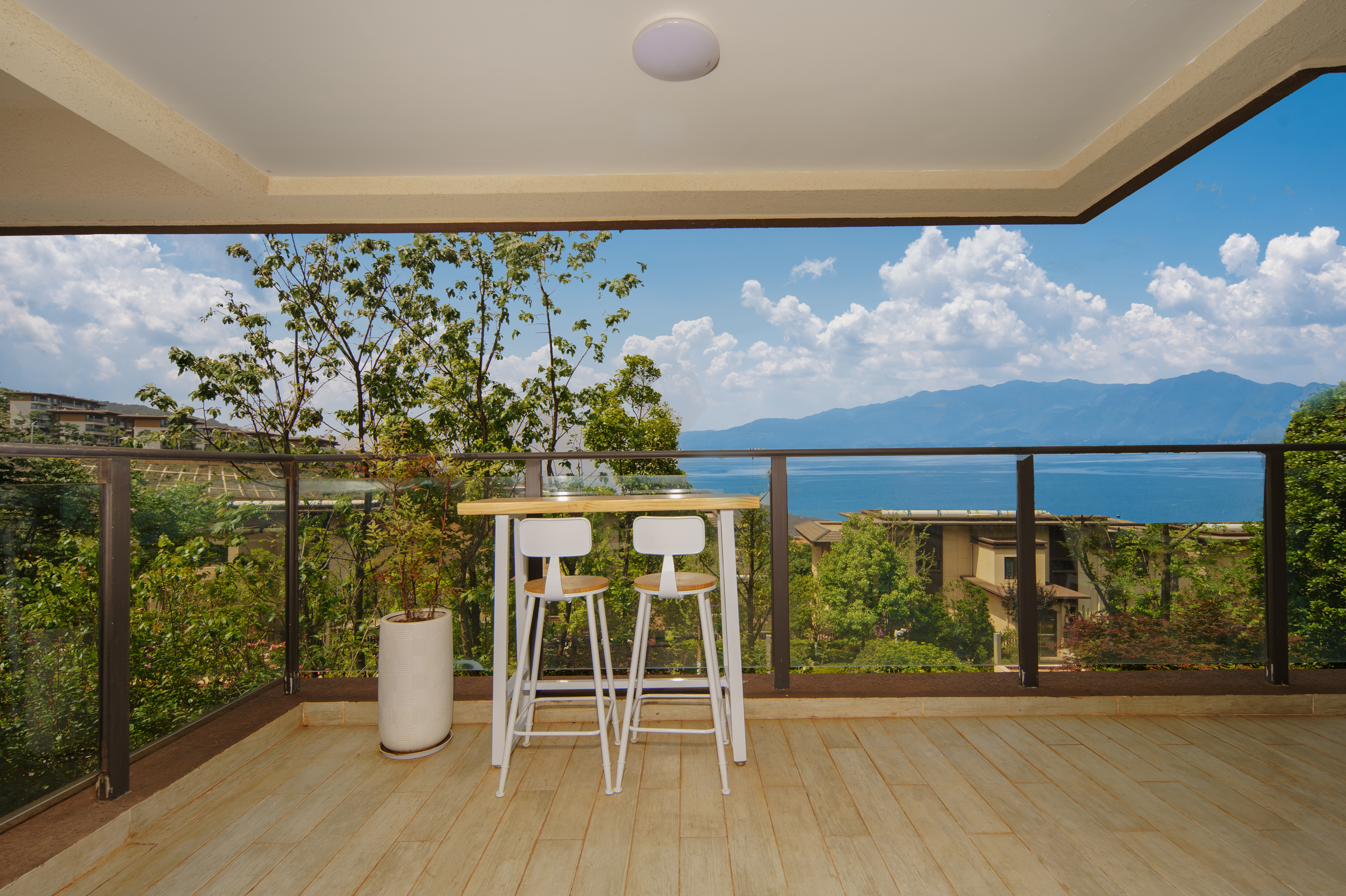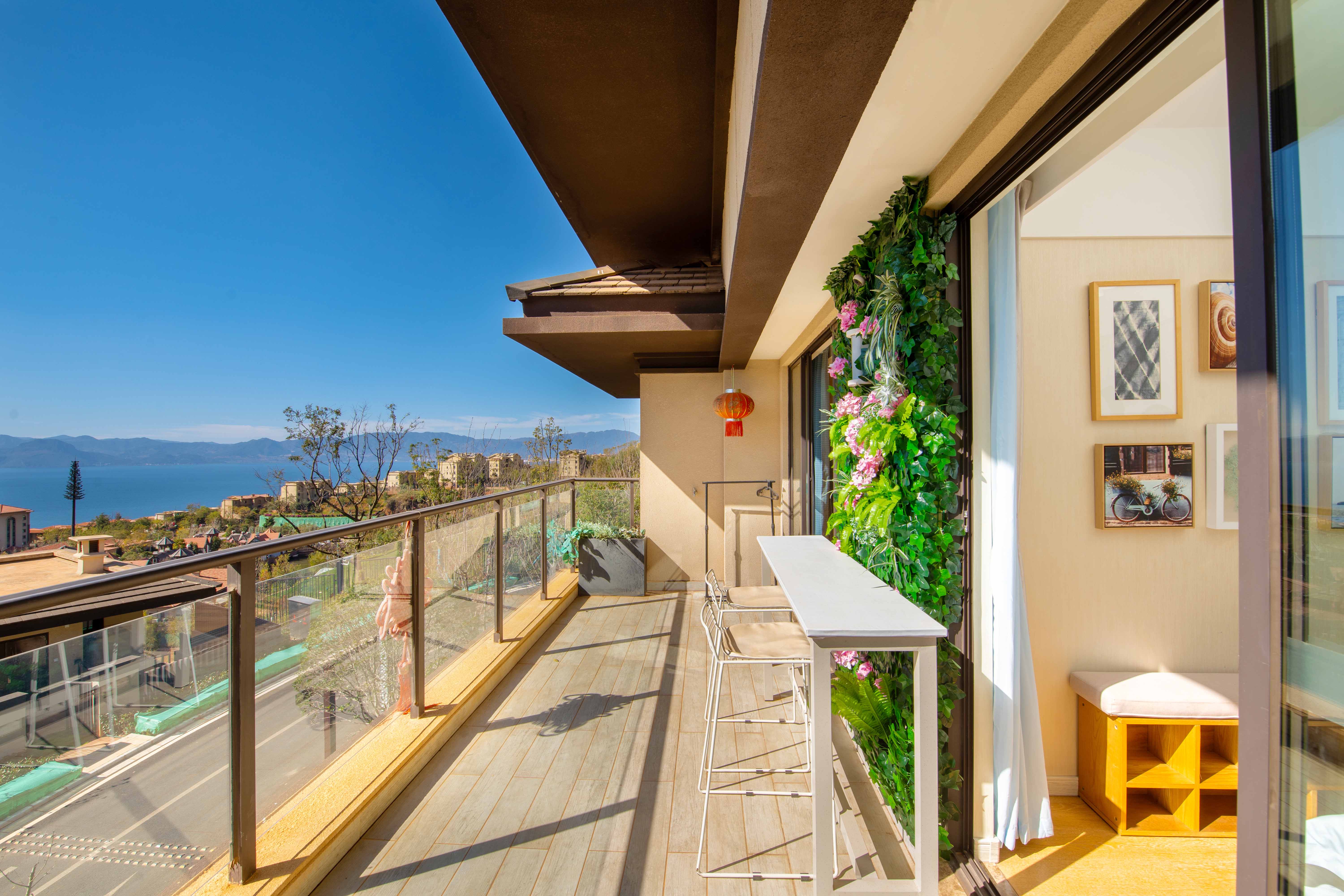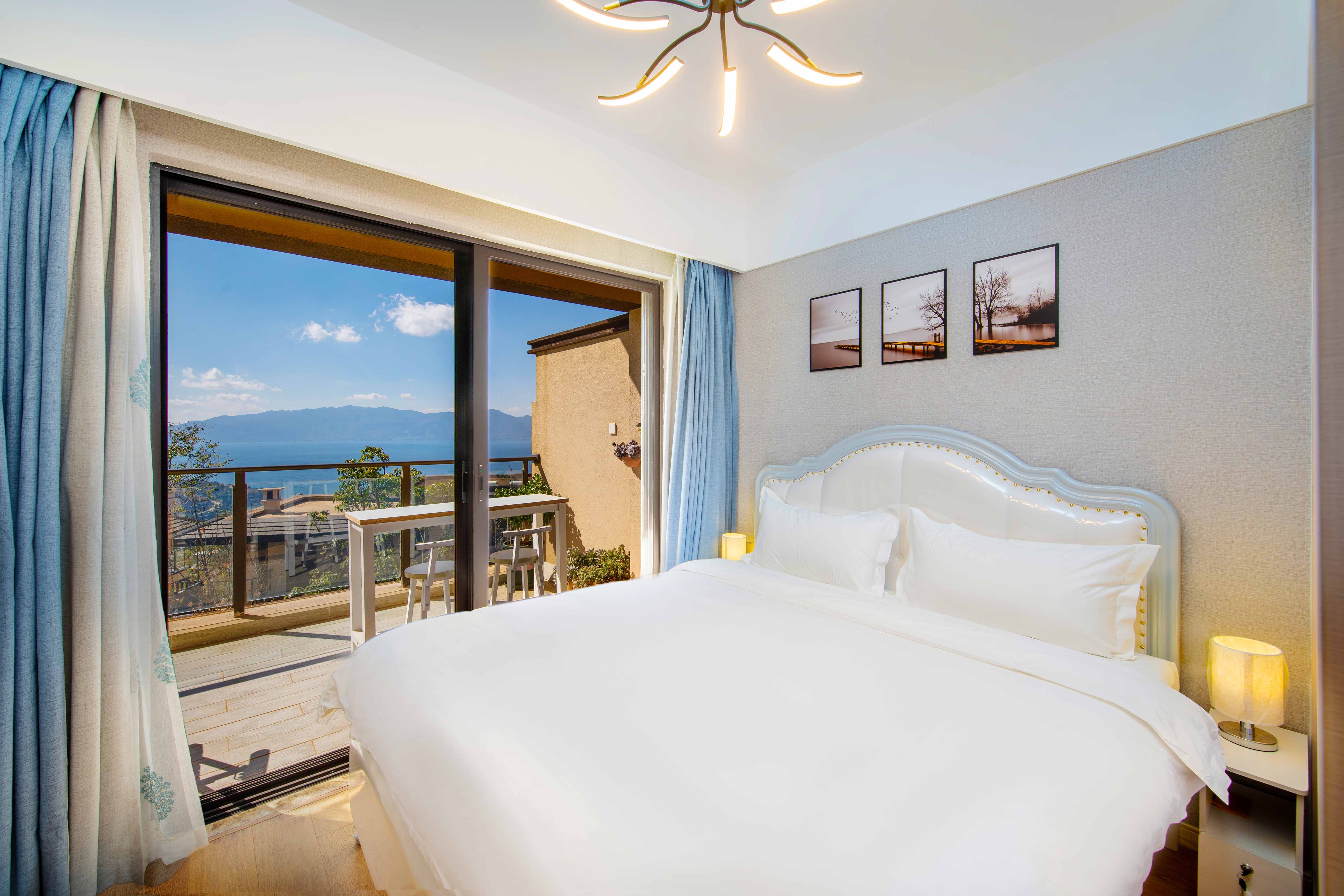 豪华落日湖景两居叠墅(观湖景大露台)