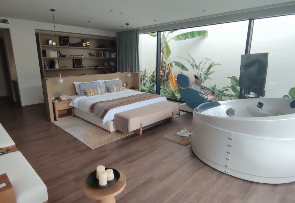 白房子特色浴缸大床房(智能全景落地窗+观湖露台+田野美景+金可儿床垫+戴森吹风机)