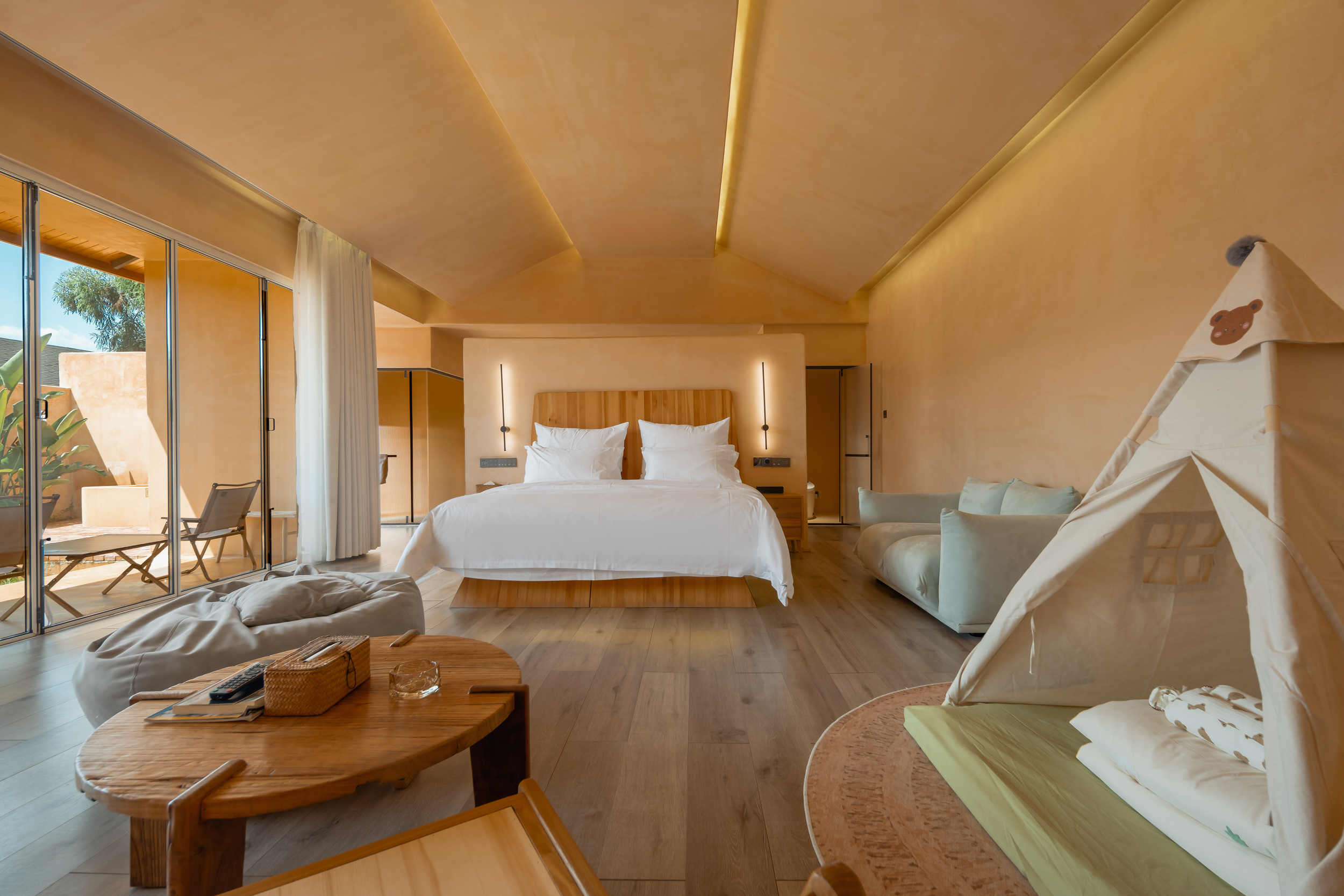 乡奢·亲子庭院大床房|童趣空间庭院私密泡池180°全景