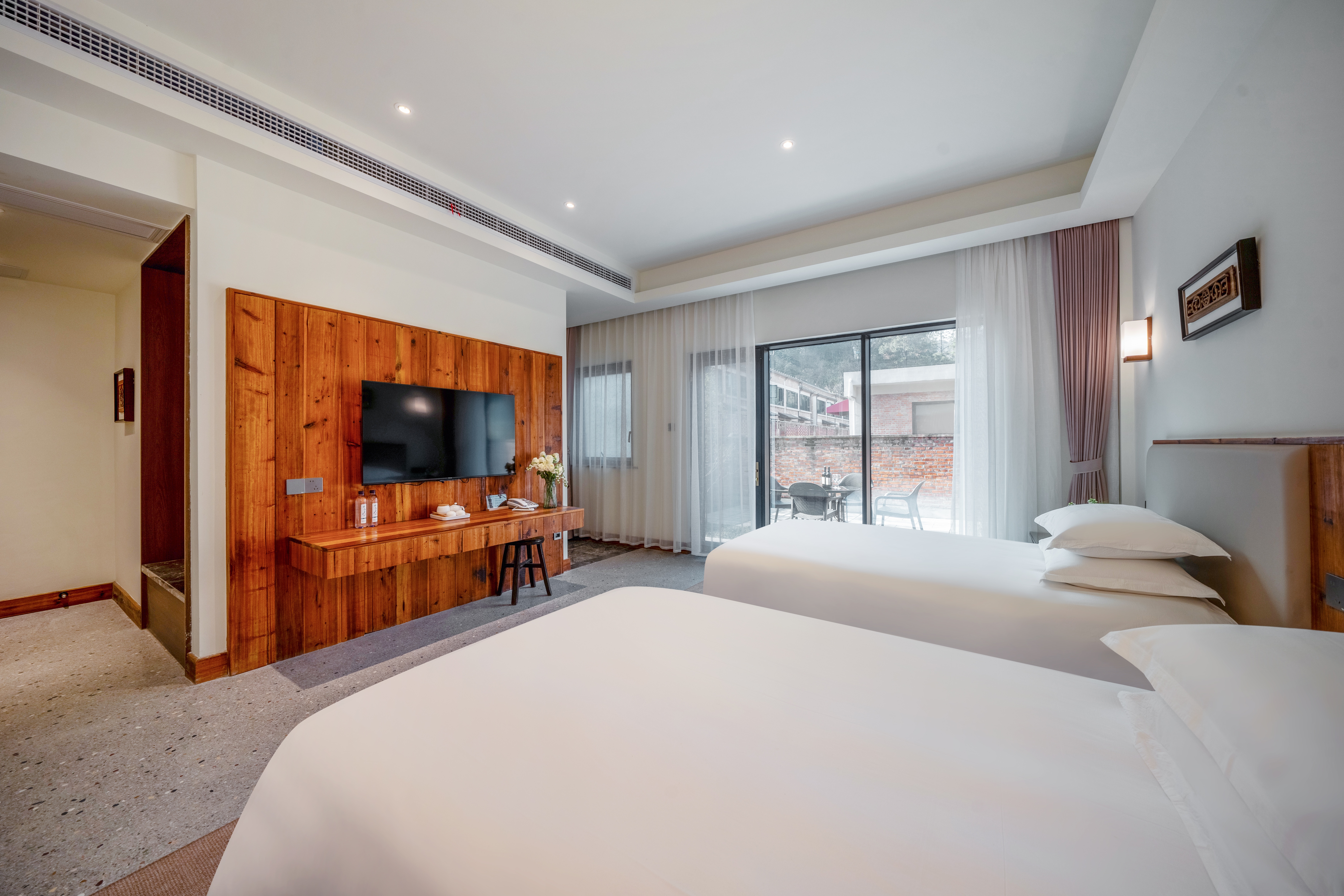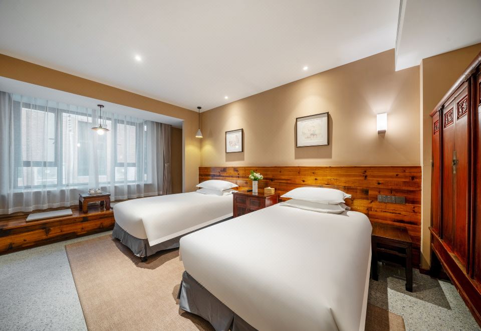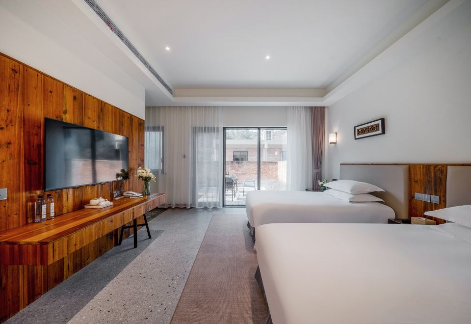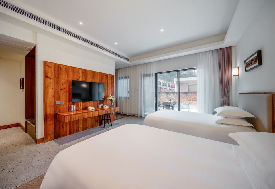 陽光庭院雙床房【液晶電視+親膚床品+休閑桌椅】