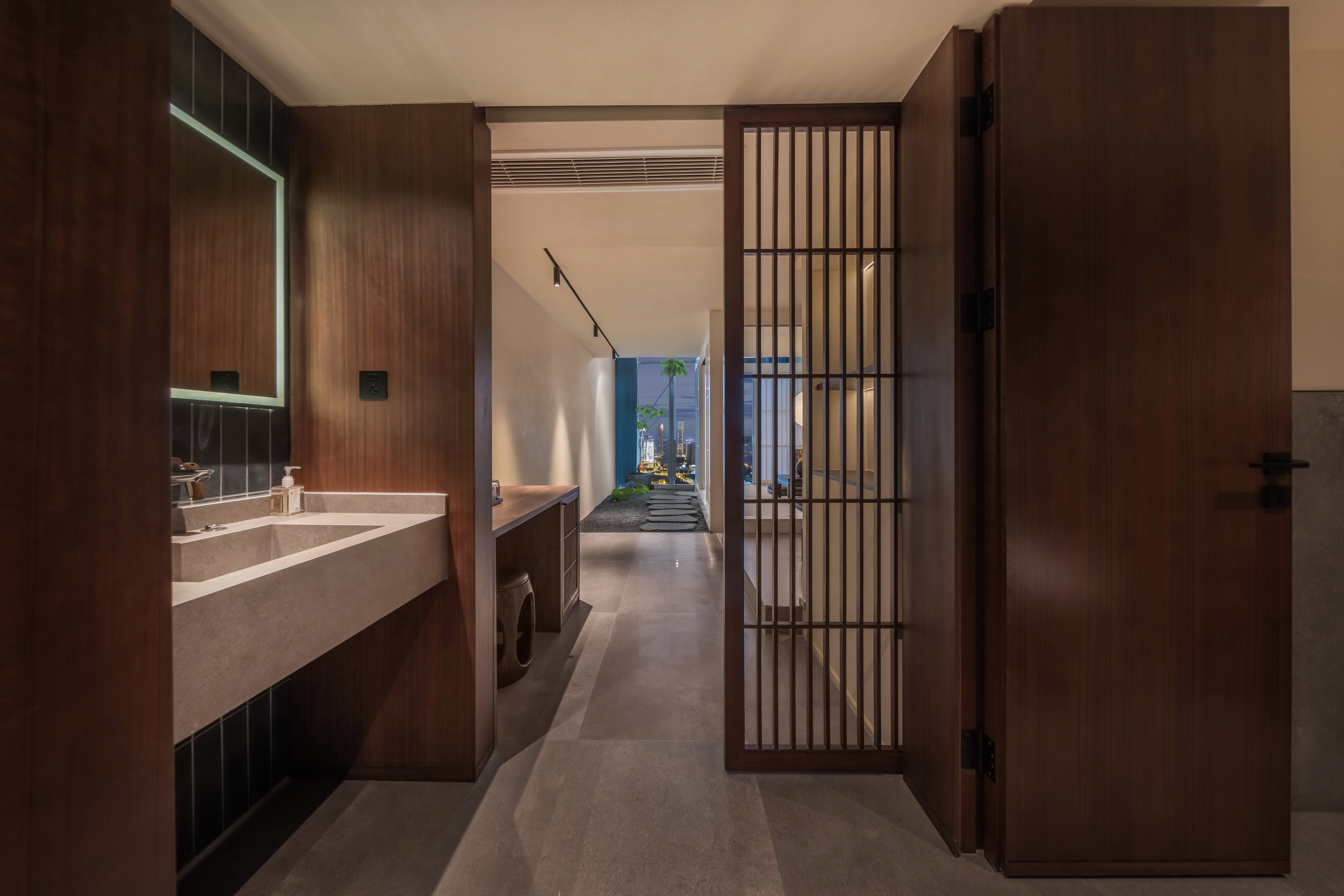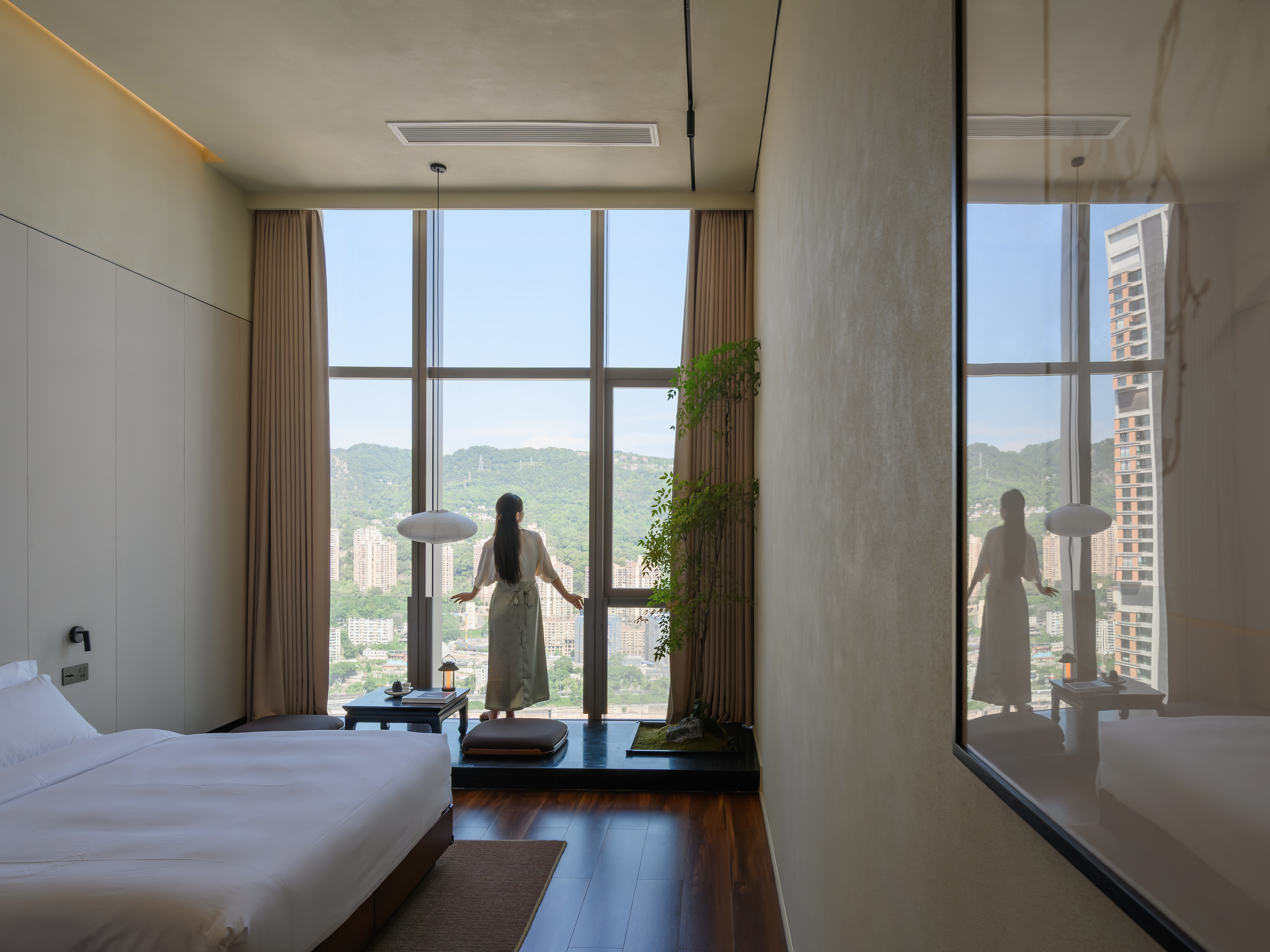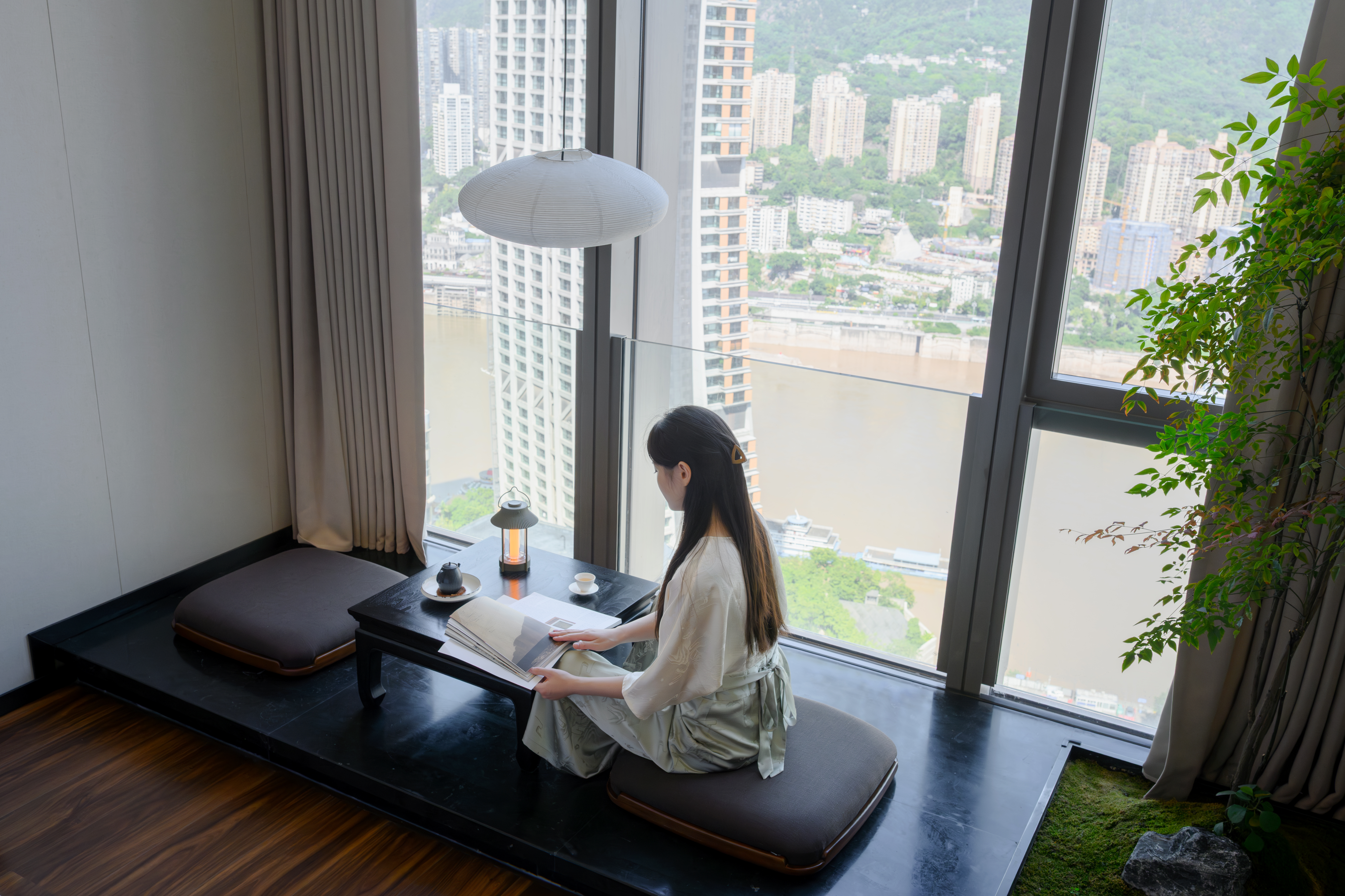 冥想江景复式大床套房(室内庭院+冥想空间+城市夜景)