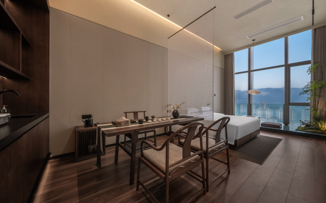 茶书房江景浴缸大床房(超大平层+榫卯茶台+舒适浴缸)