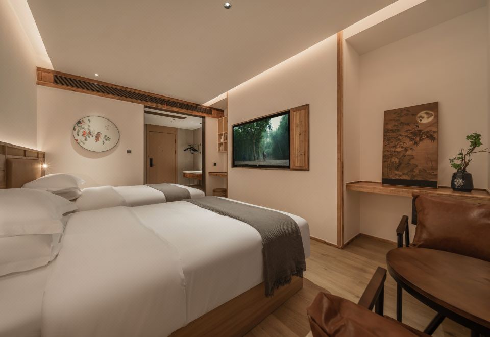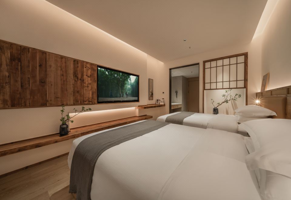 且慢.禅意宋风双床房(榻榻米茶台+智能马桶+手机投屏)