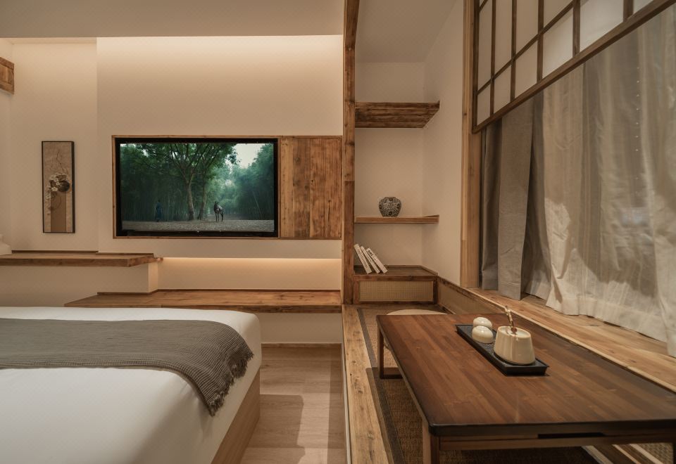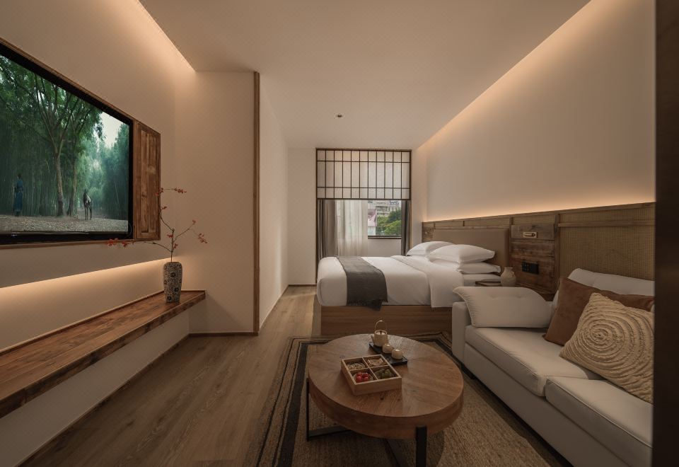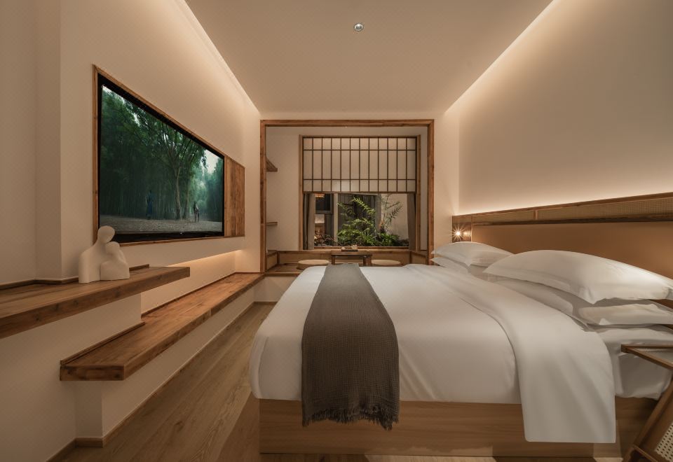 且慢.禅意宋风大床房(榻榻米茶台+智能马桶+手机投屏)