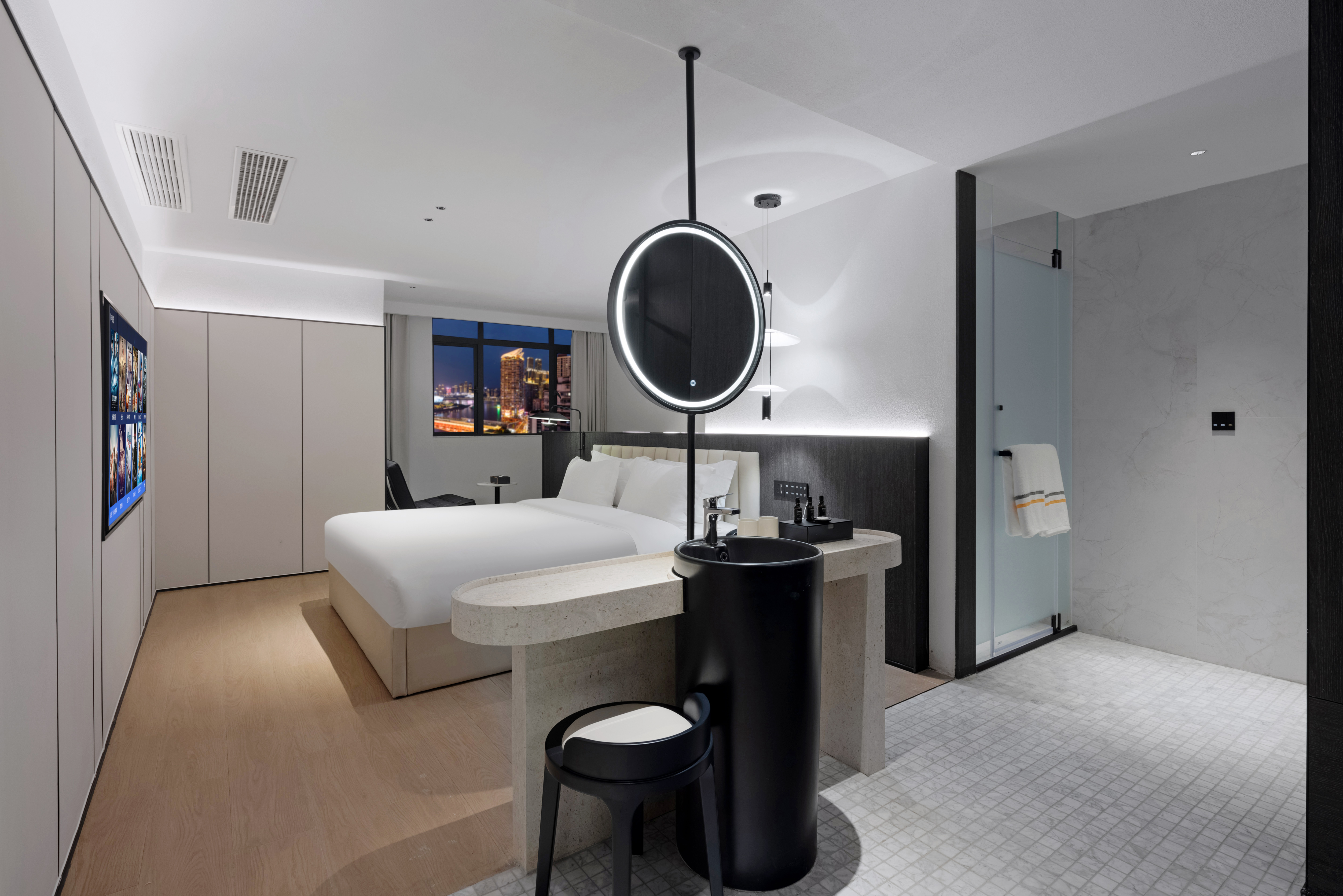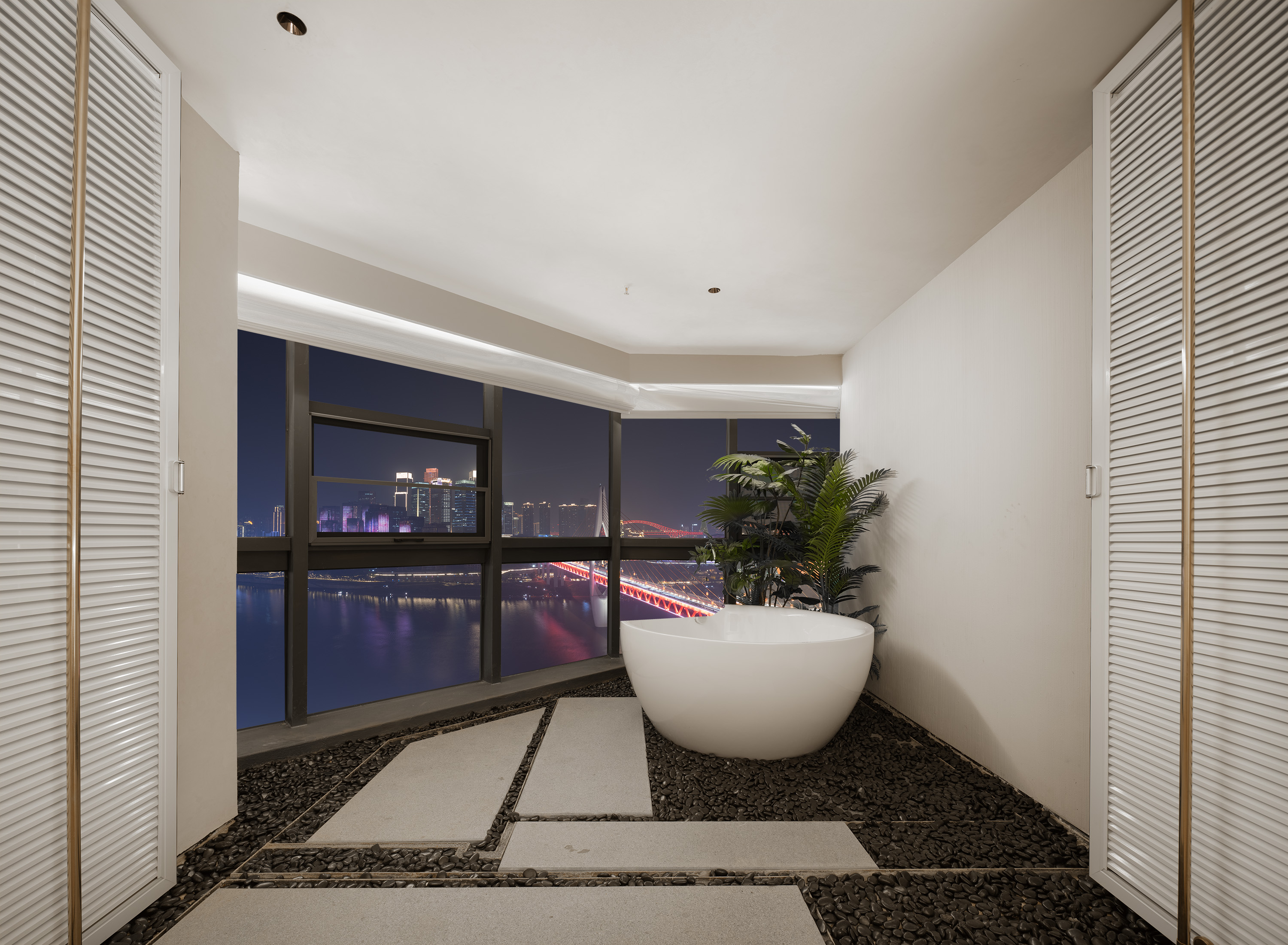 江景浮岛浴缸房「临窗观景丨城市画框」