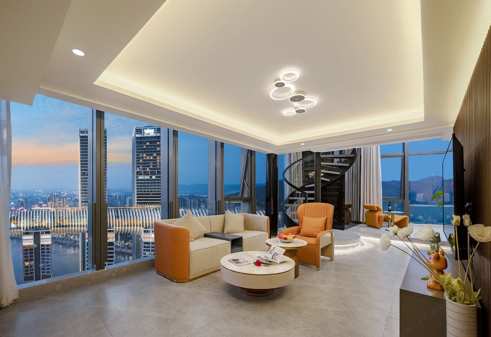 LOFT.奢享270°半岛江景双床投影套房(绝美夜景+巨幕投影+大浴缸+柜藏式冰箱)