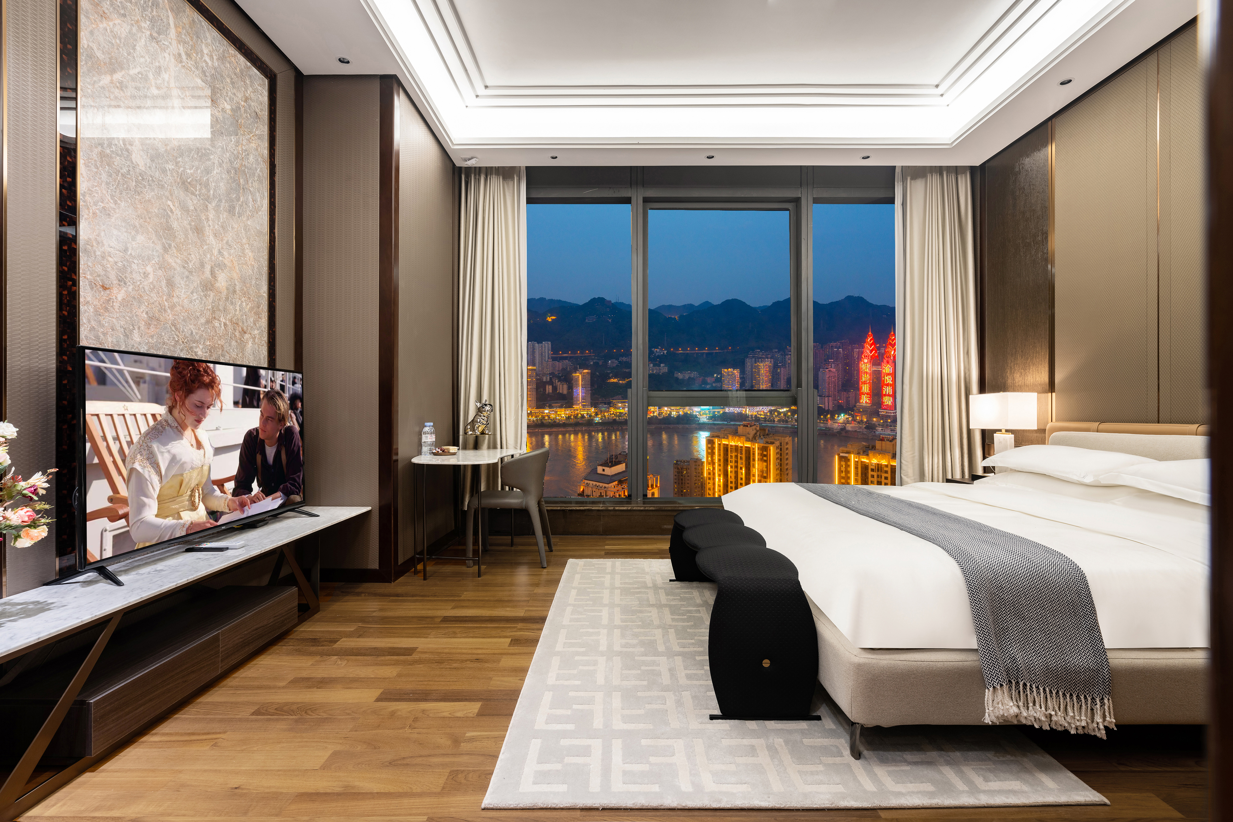 山水全景·超高层大床房(上帝视角鸟瞰重庆+眺望长江)