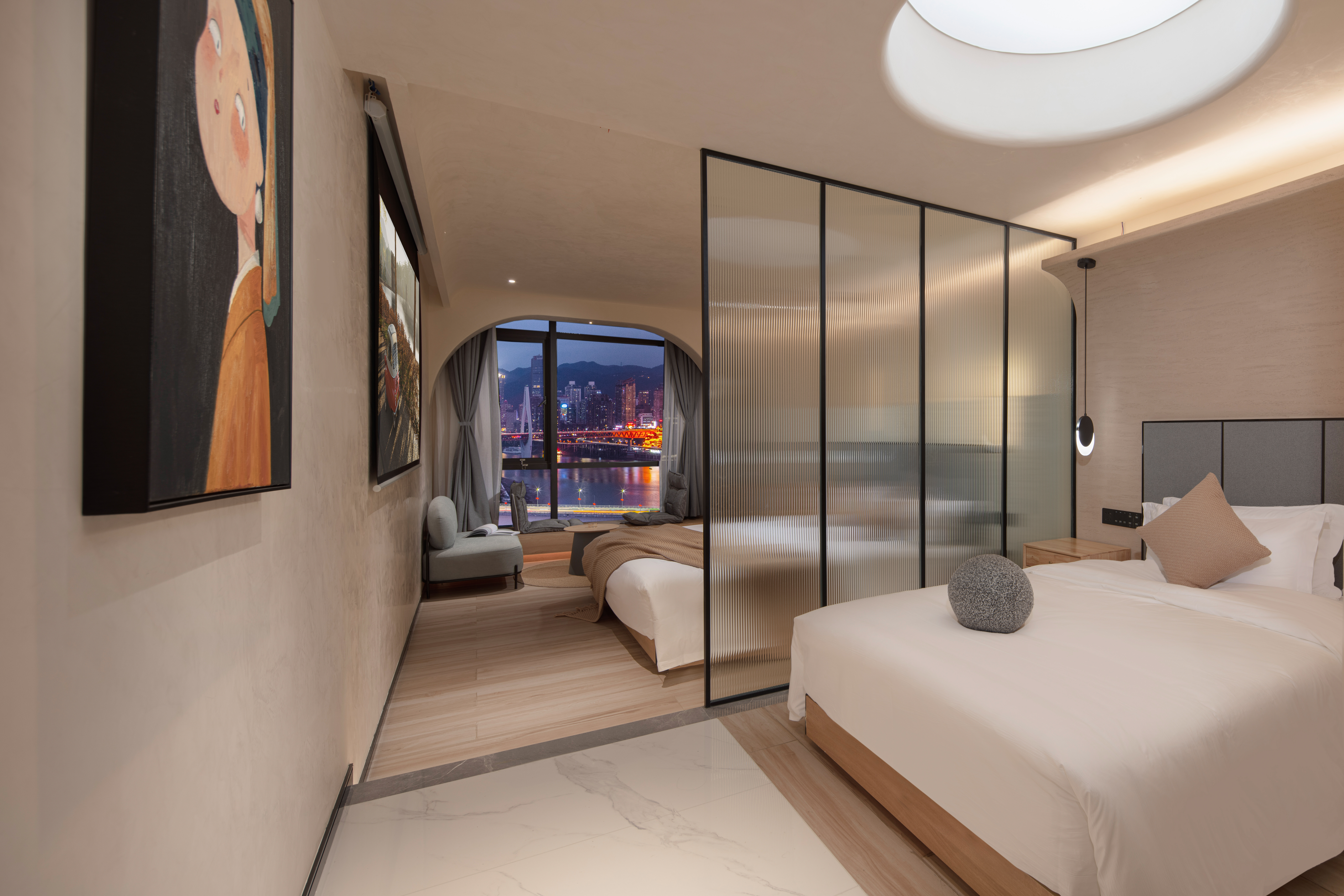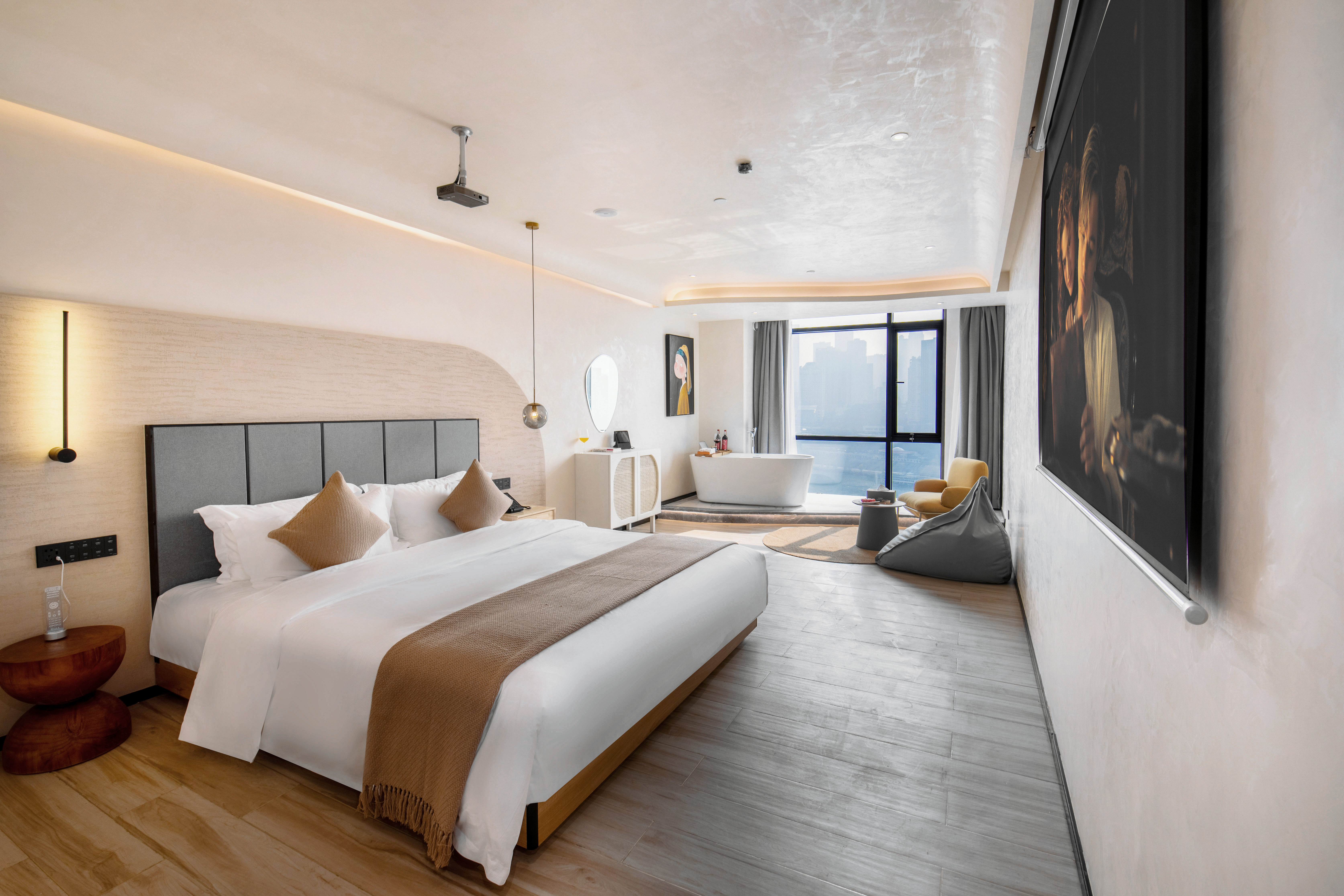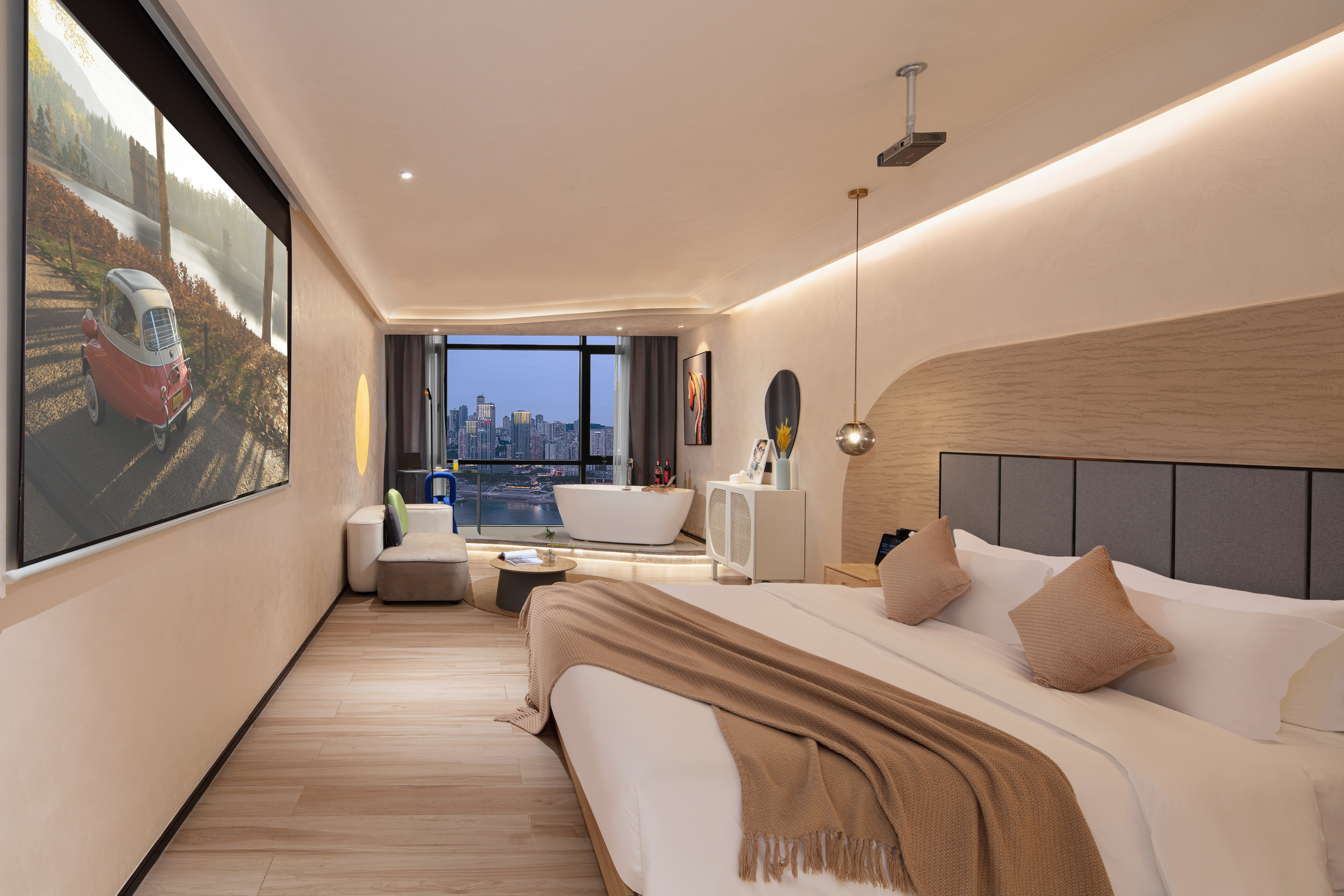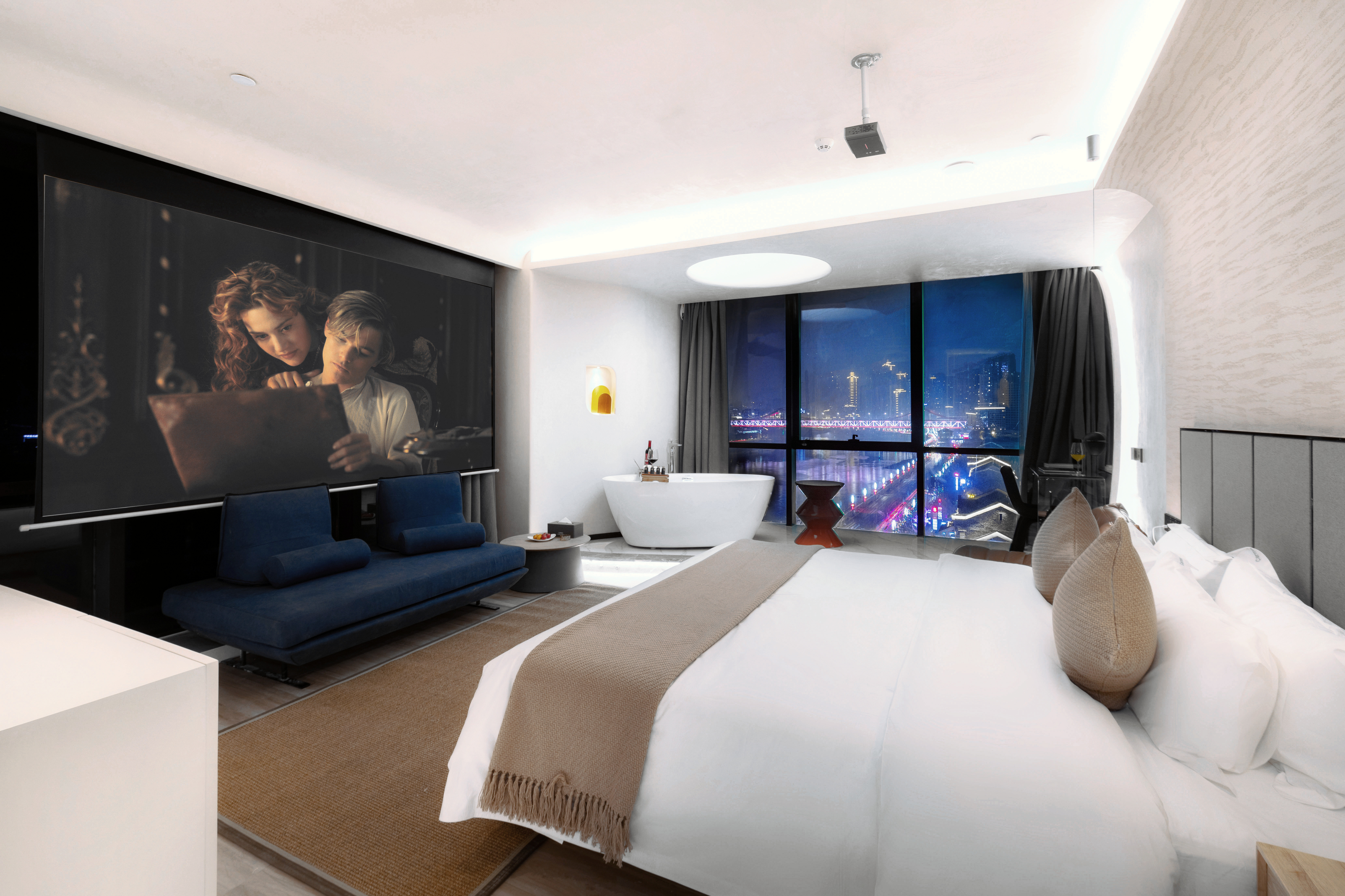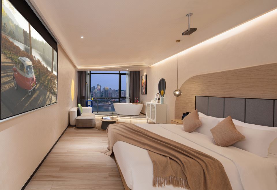 270 ° River Bend View Cinema Double Bed Room
