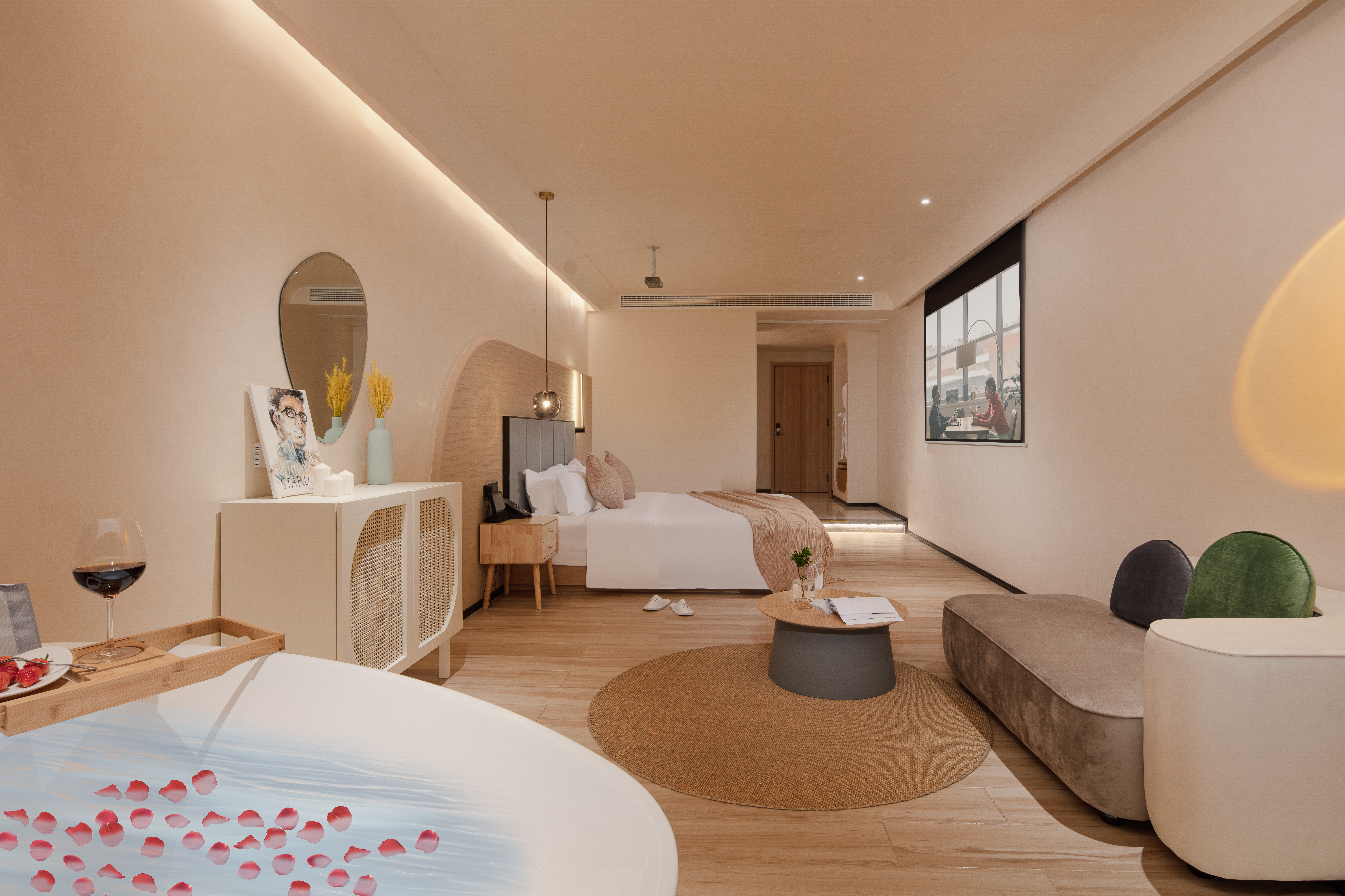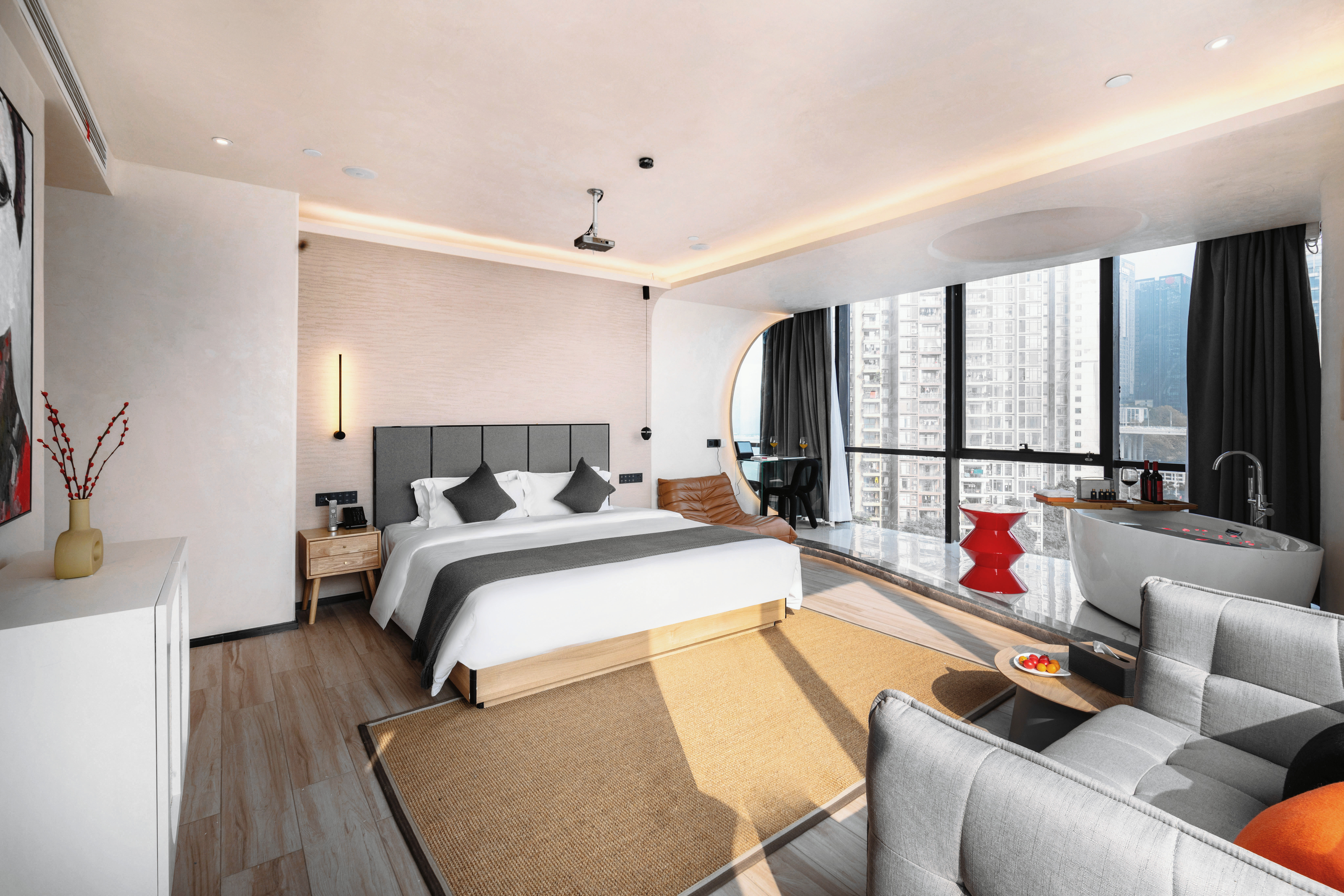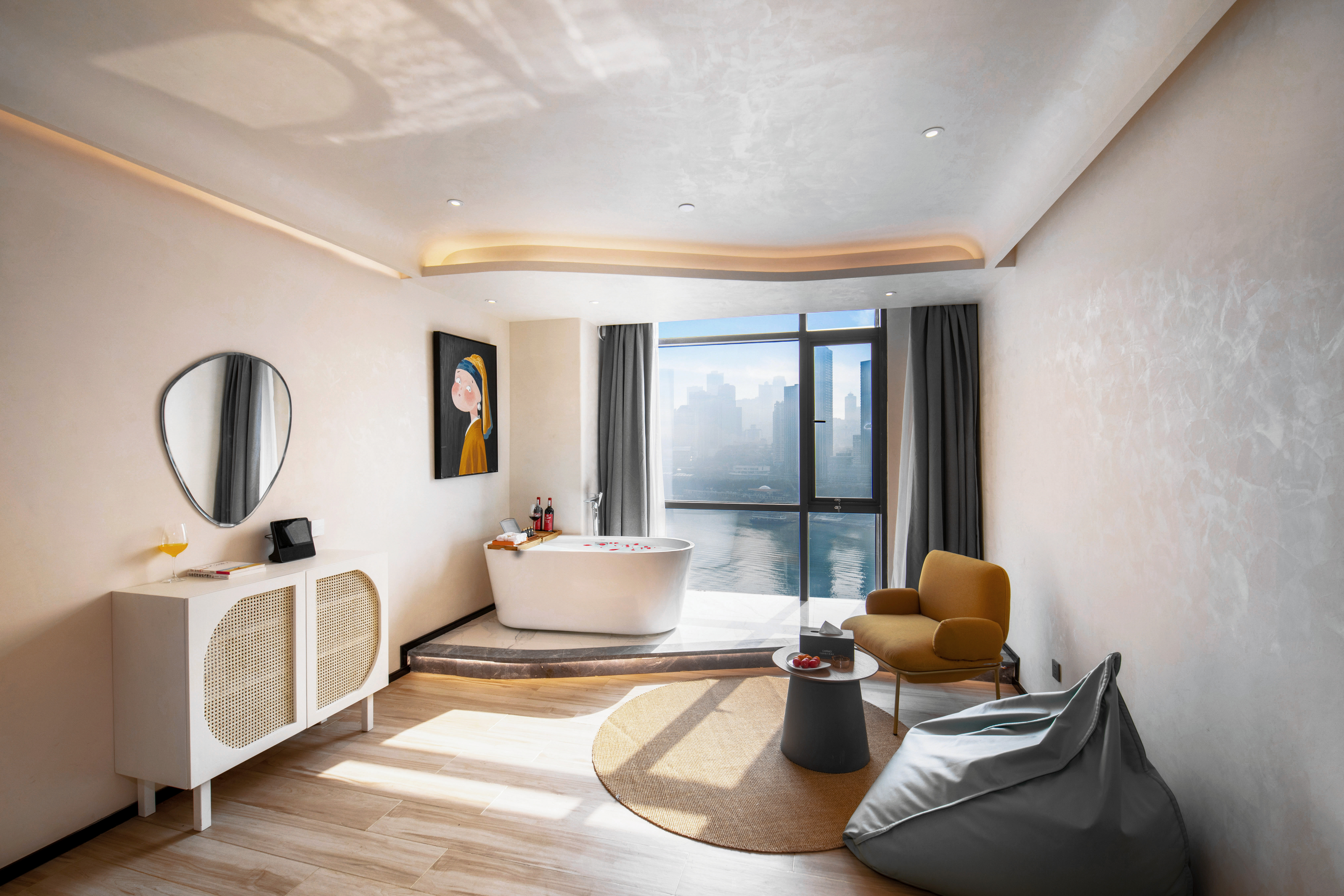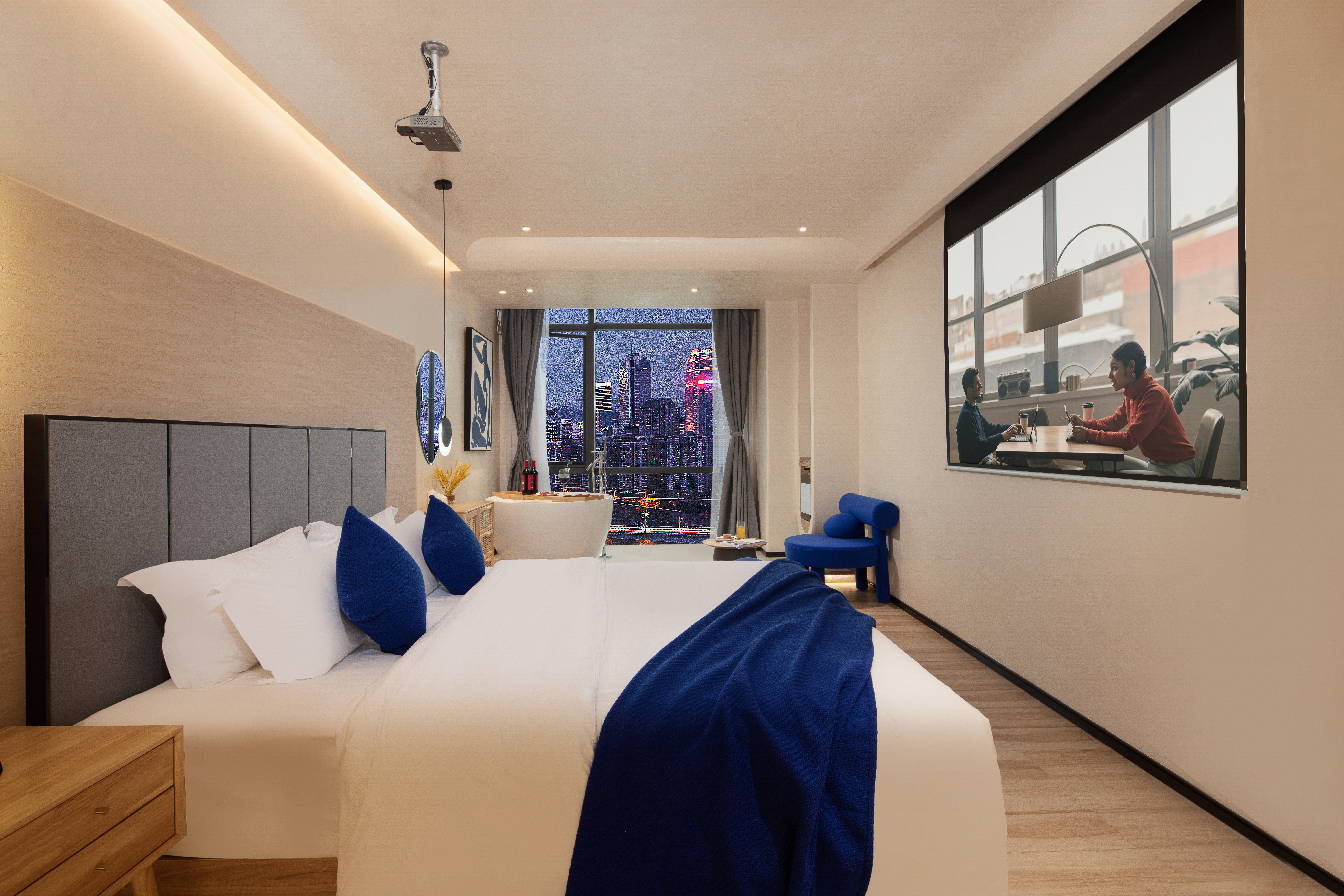 270 ° River Bend View Cinema Double Bed Room