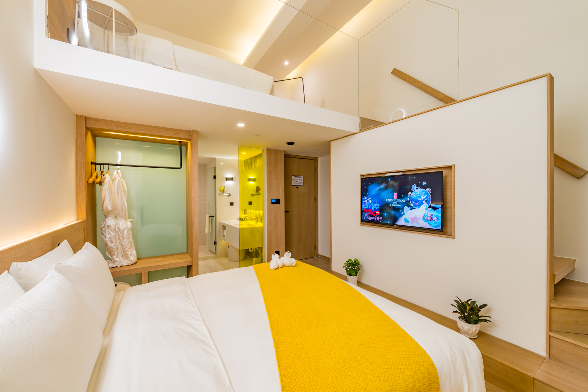 Artistic Duplex Twin Room-Goose Down Duvet + Two Double Beds