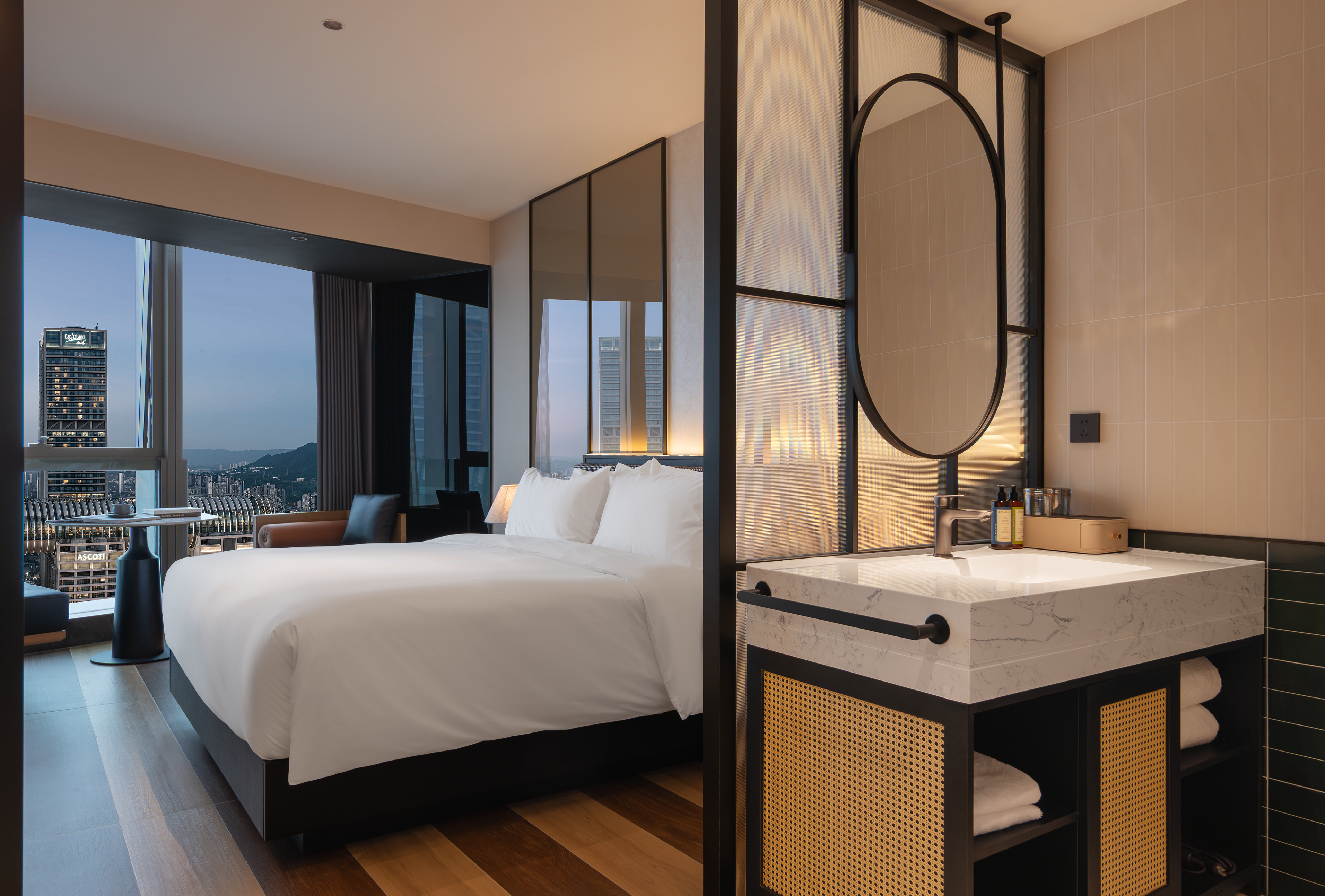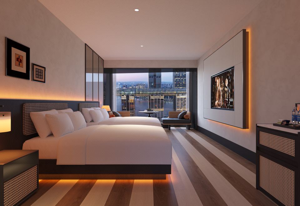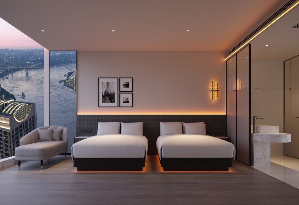 高空180°江景双床房【顶层视野+临窗茶台+金可儿床垫】