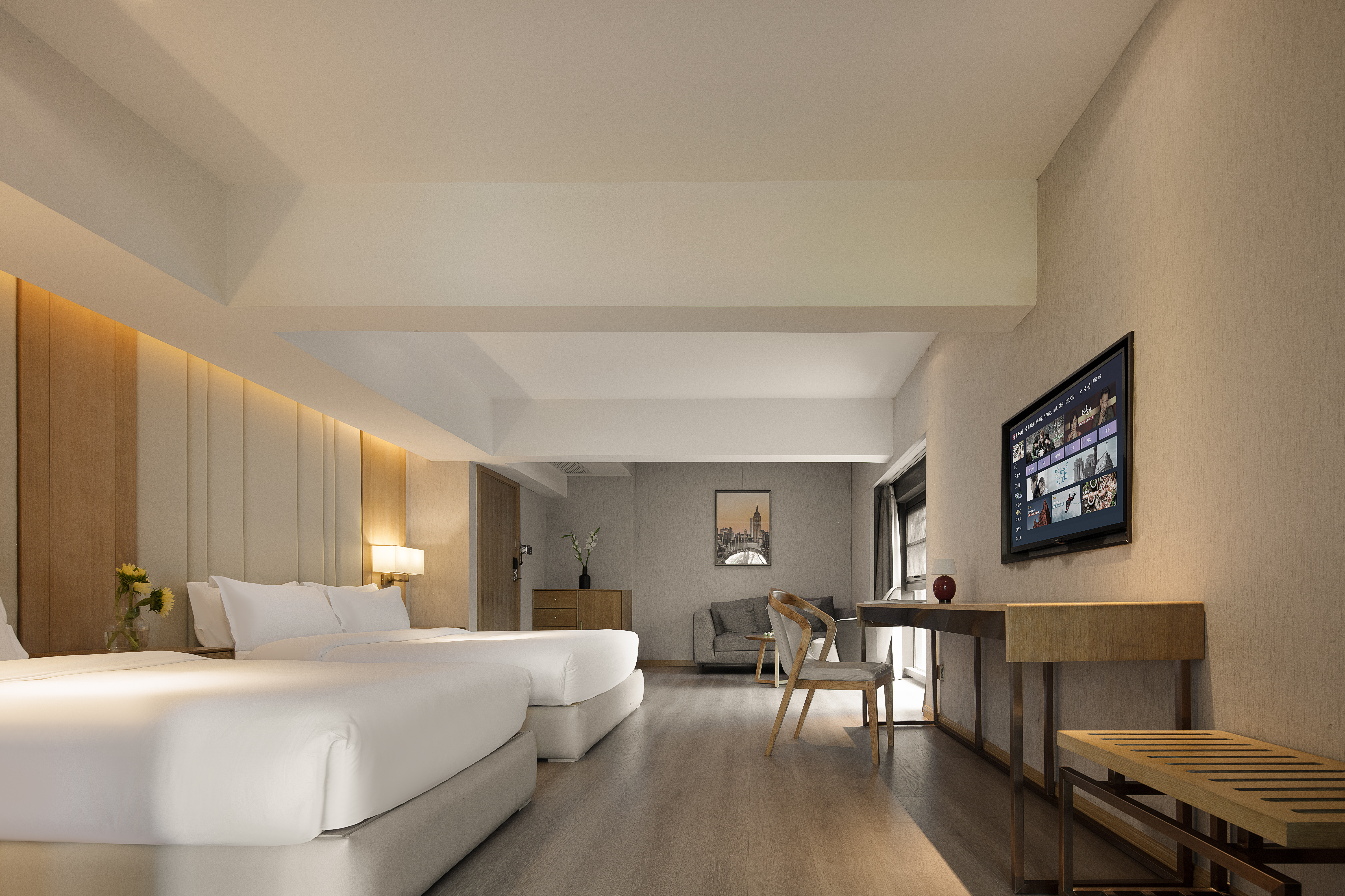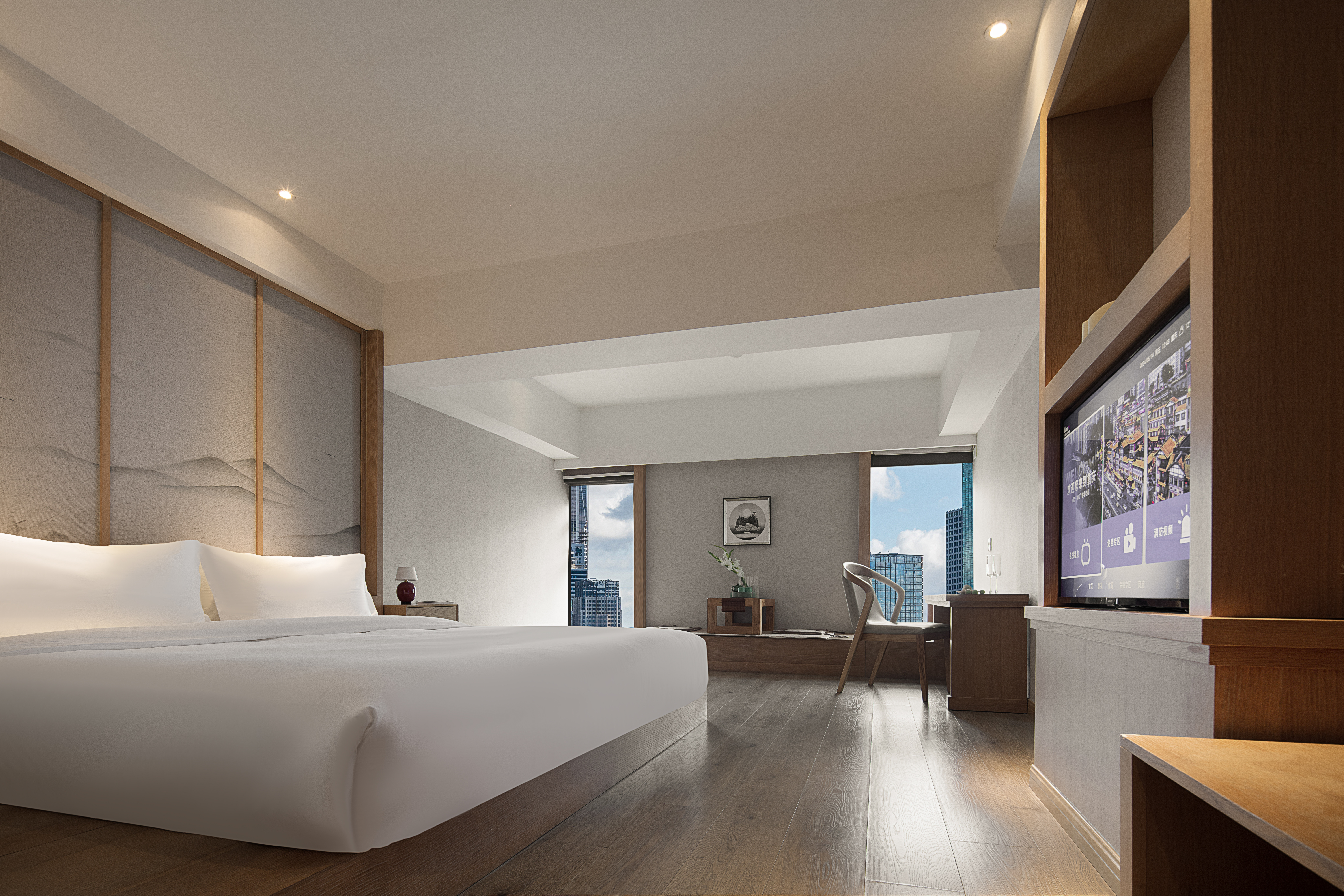 璞悦大床套房【城景落地窗+康乃馨床品+阿道夫洗护】