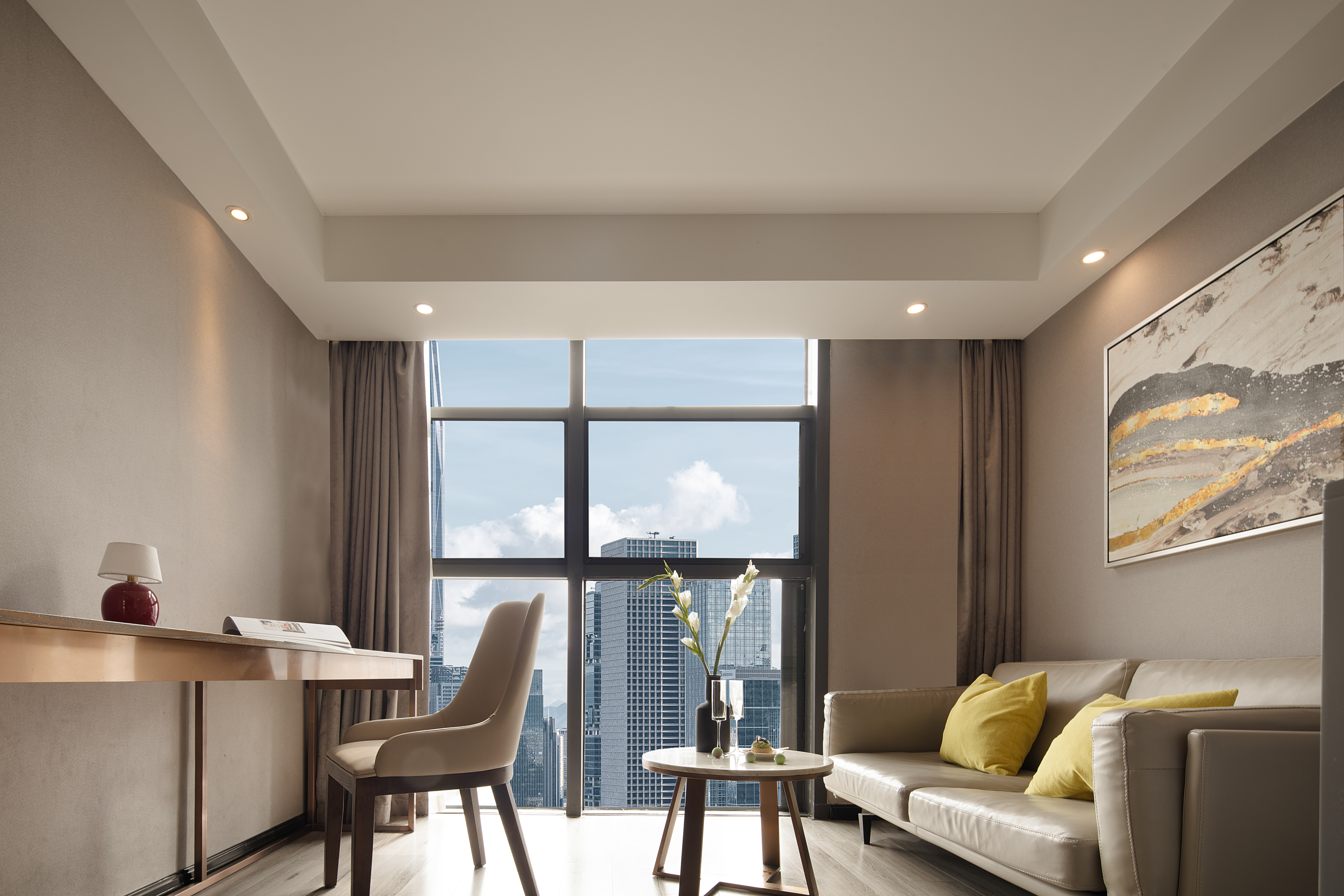 璞悦大床套房【城景落地窗+康乃馨床品+阿道夫洗护】