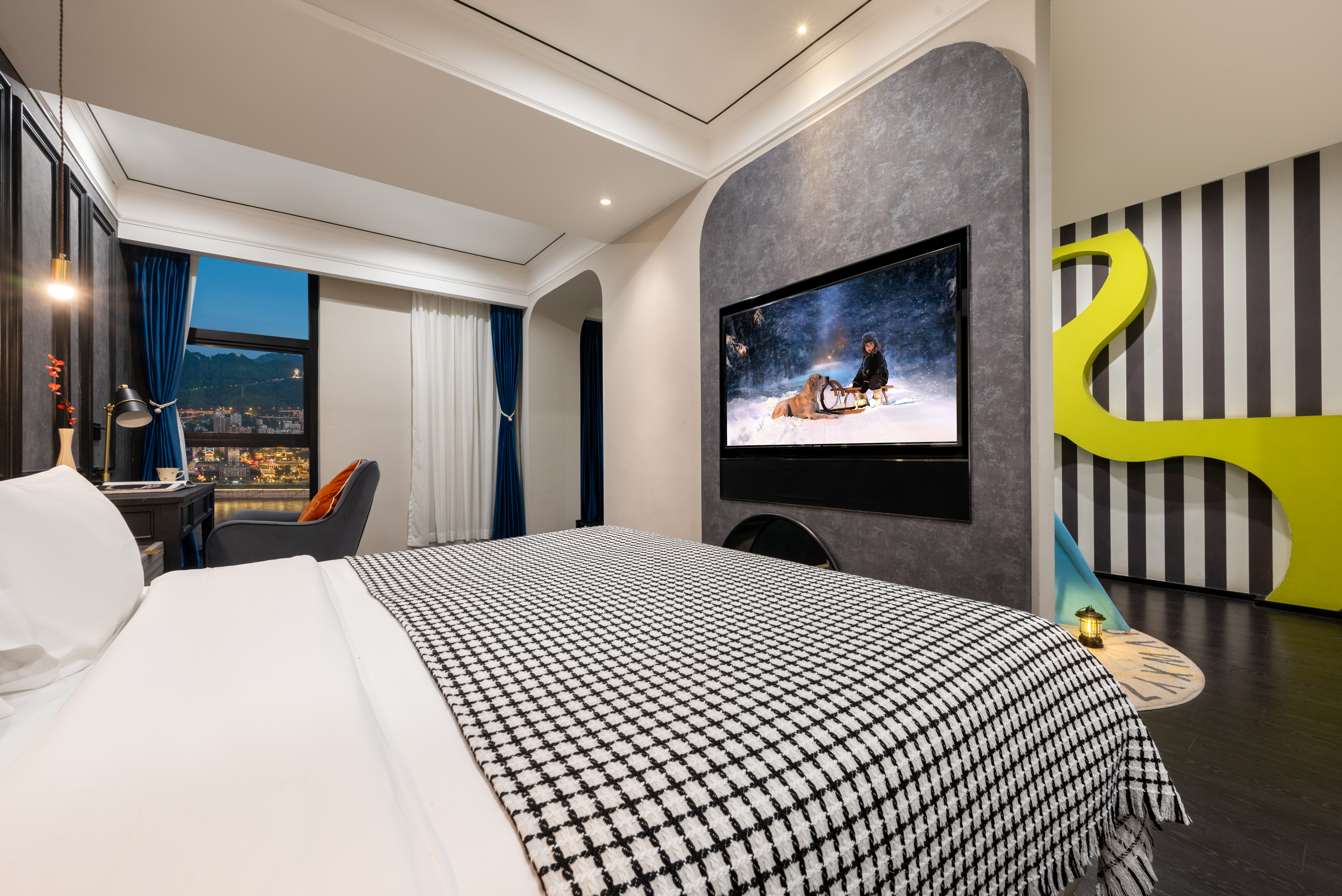 云卷·艺术景观房【山城夜景+通透外窗+高清大屏电视】