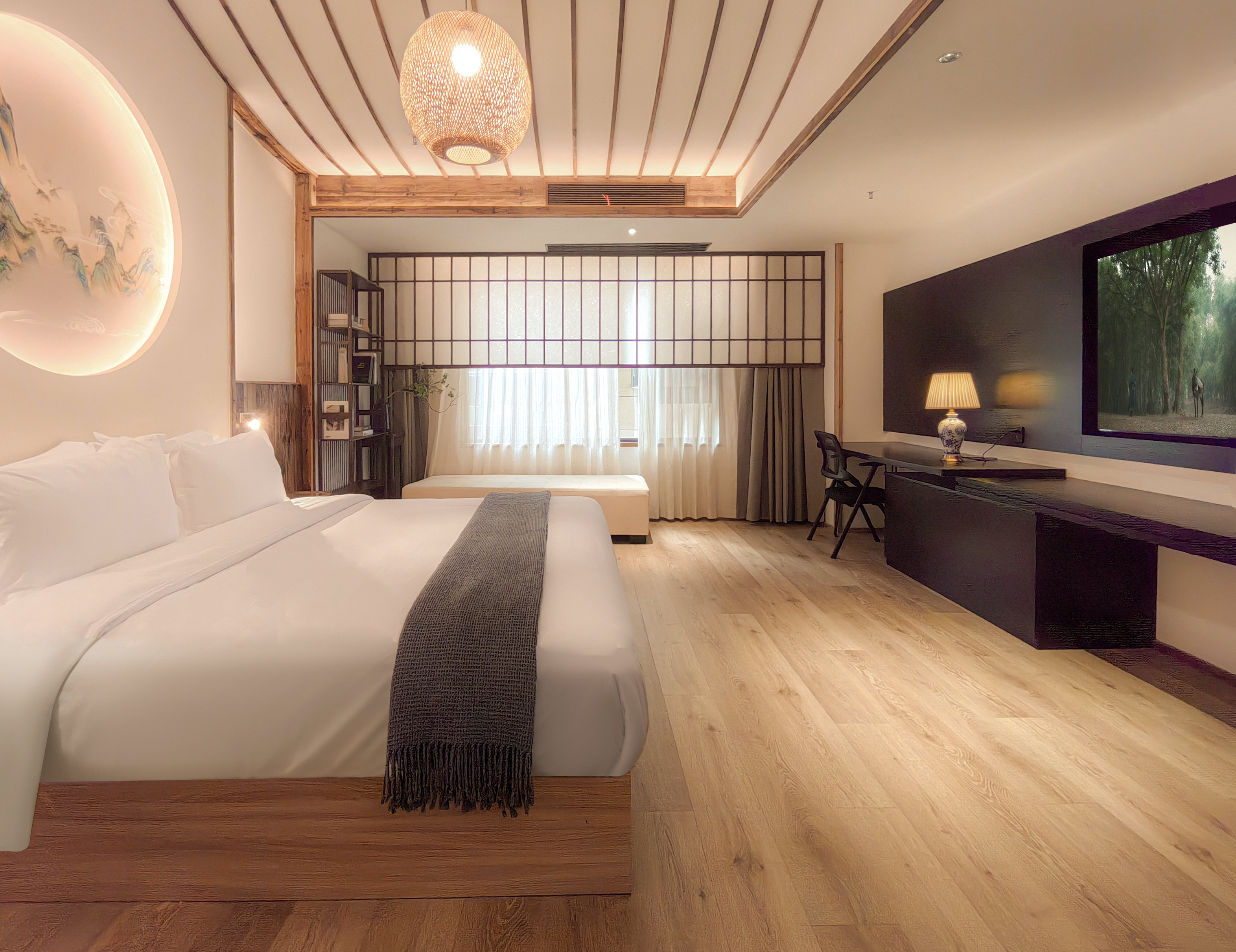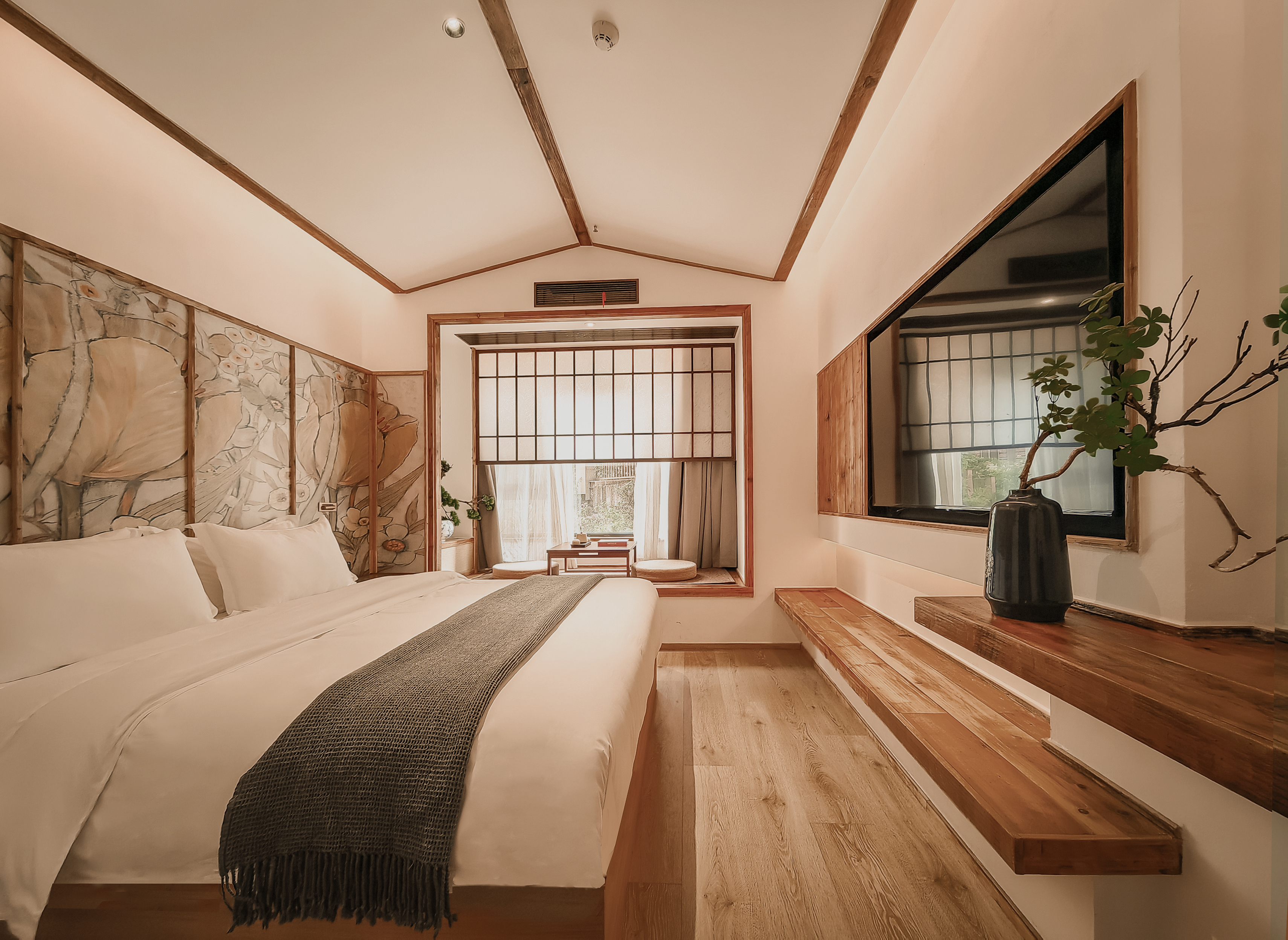 覓知.聽雨大床房A(乳膠床墊+電動遮光窗簾)