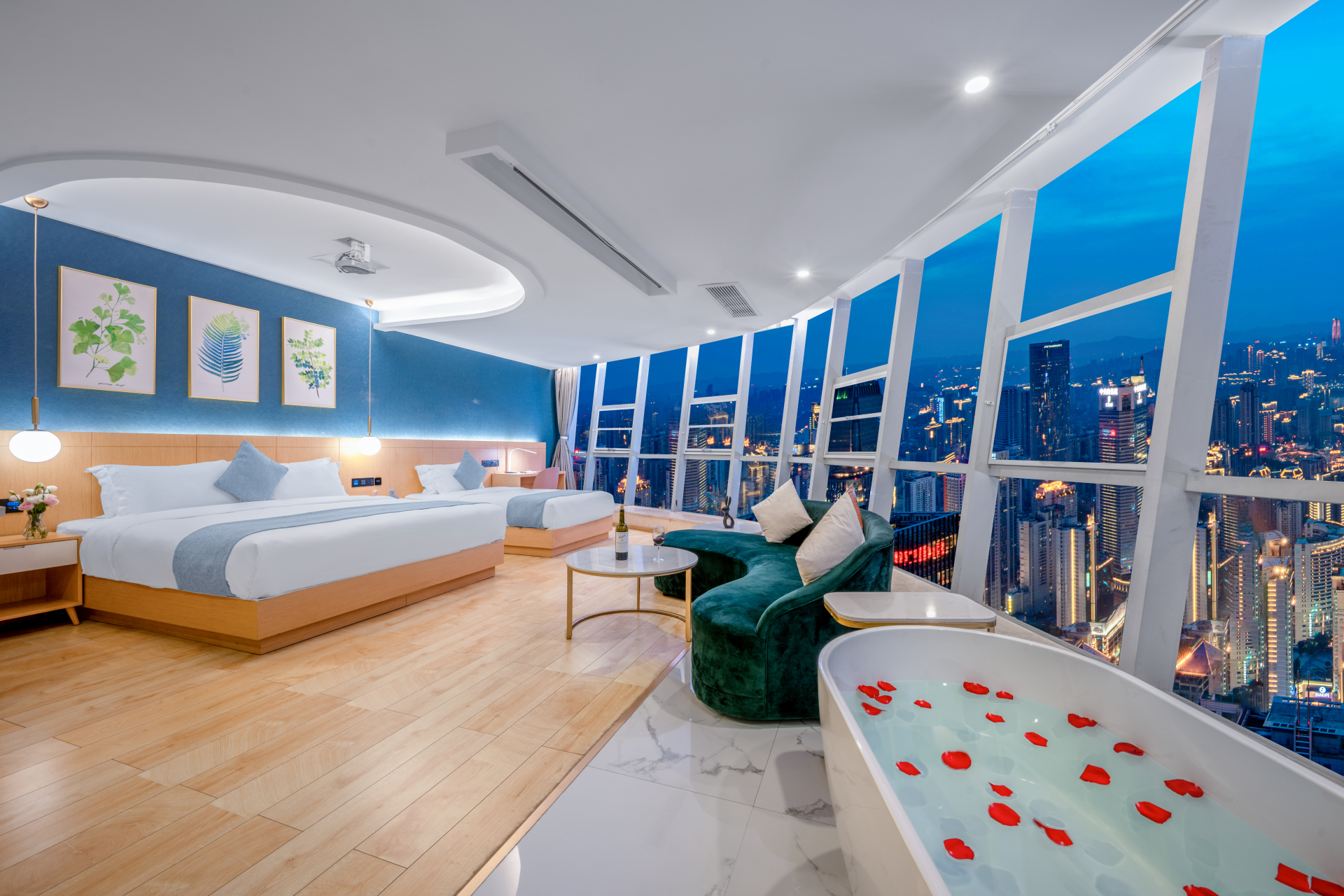 Tourist拾光·影院浴缸大床房(影院級巨幕投影+浪漫浴缸+藍牙音箱+弧形超大落地窗)