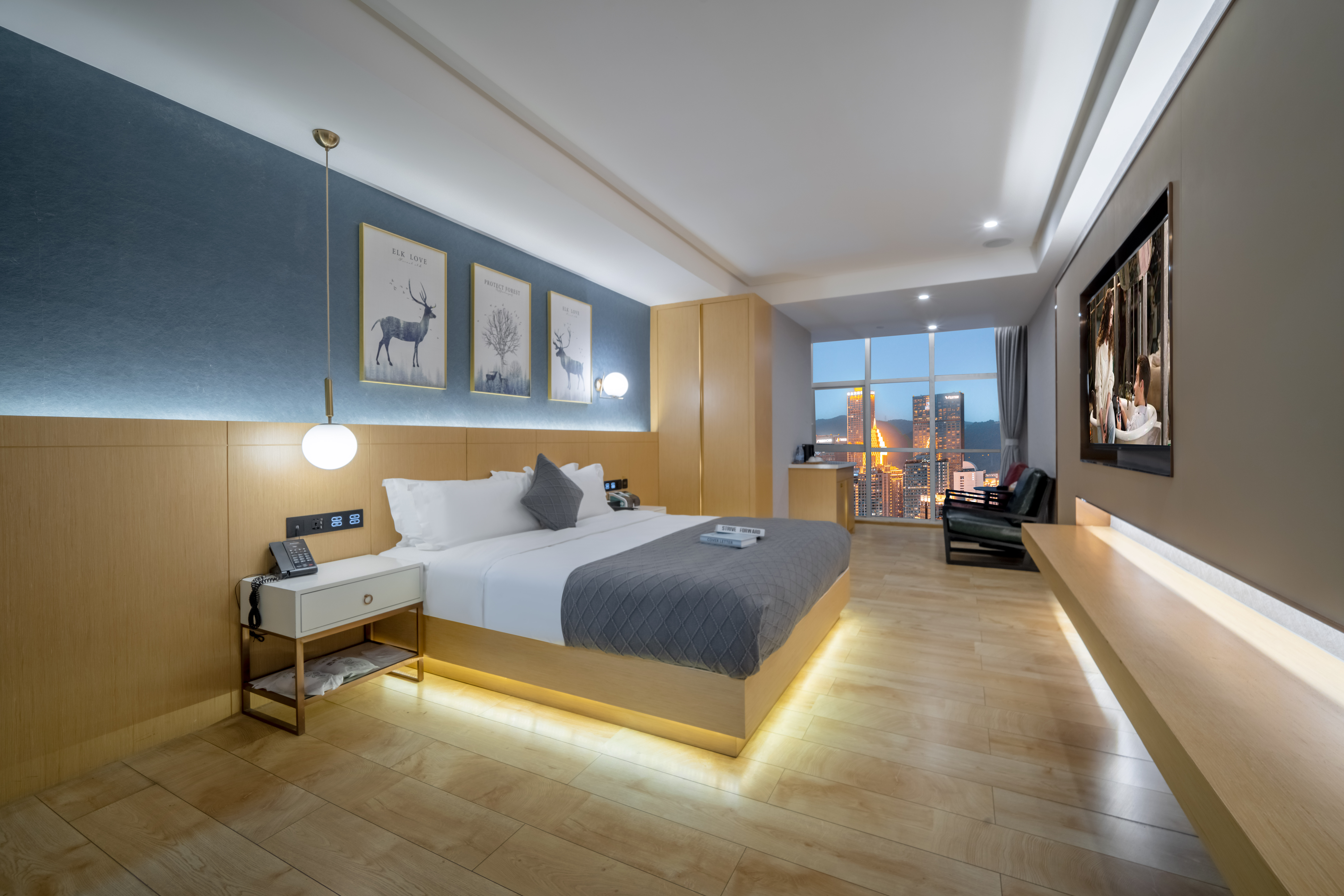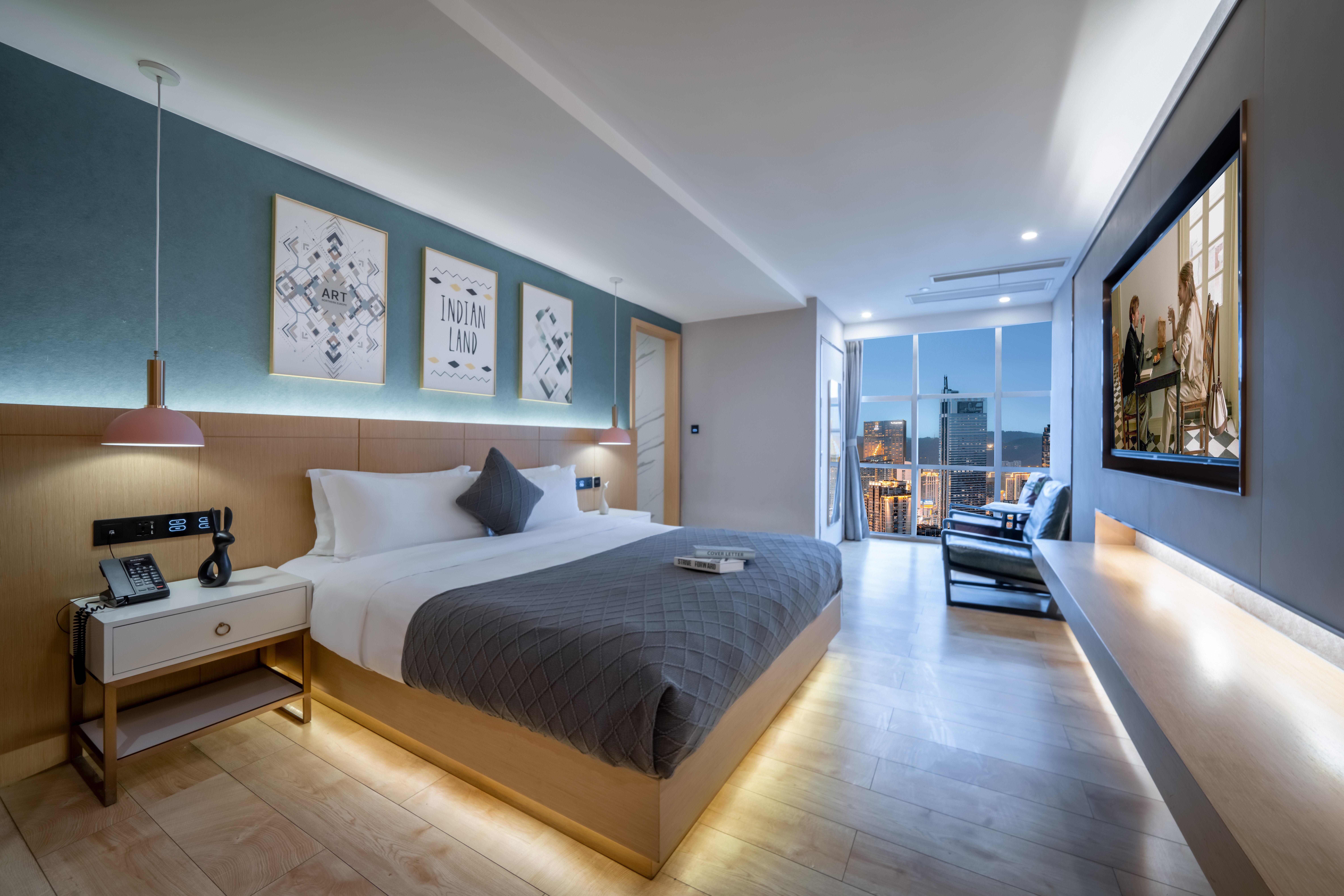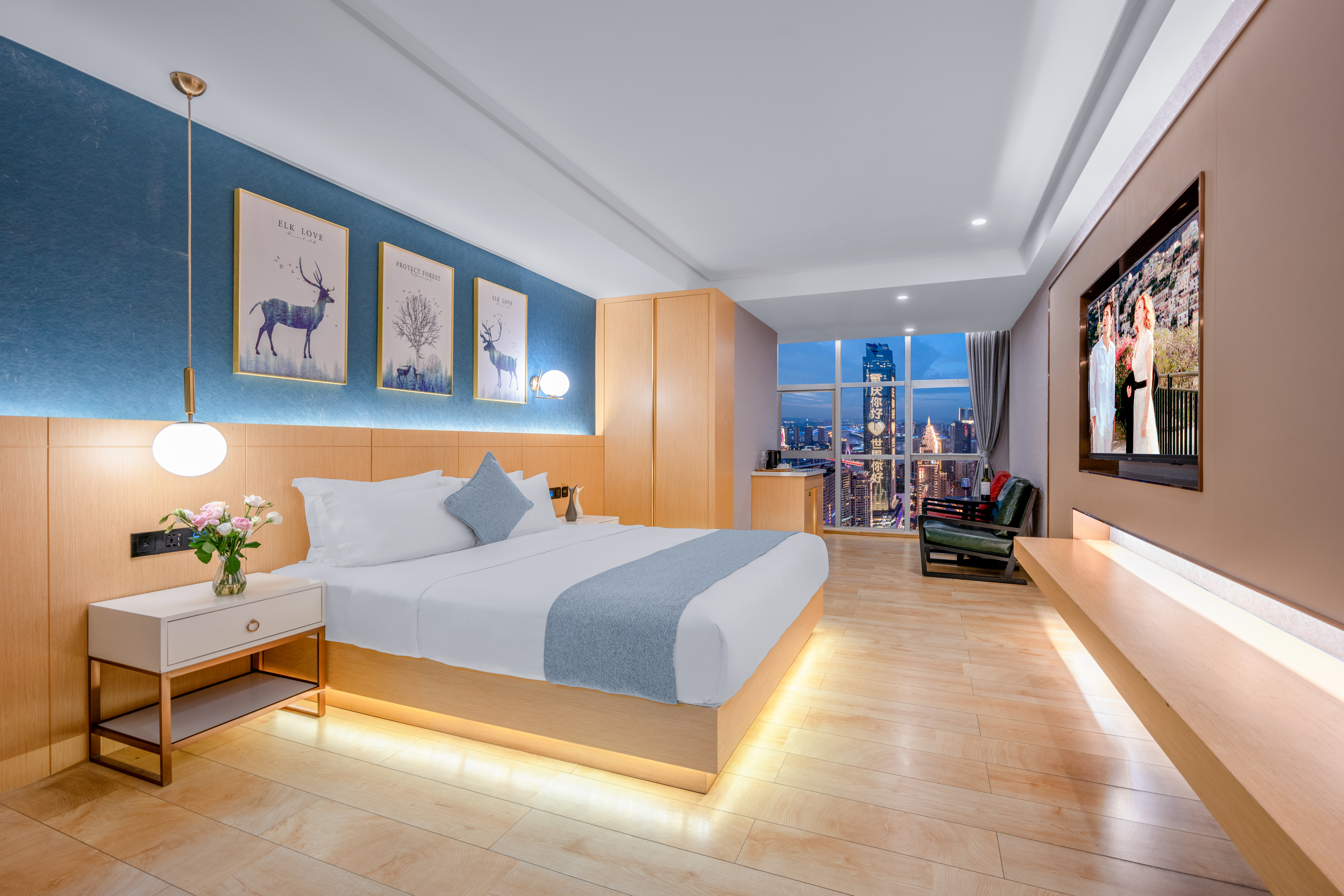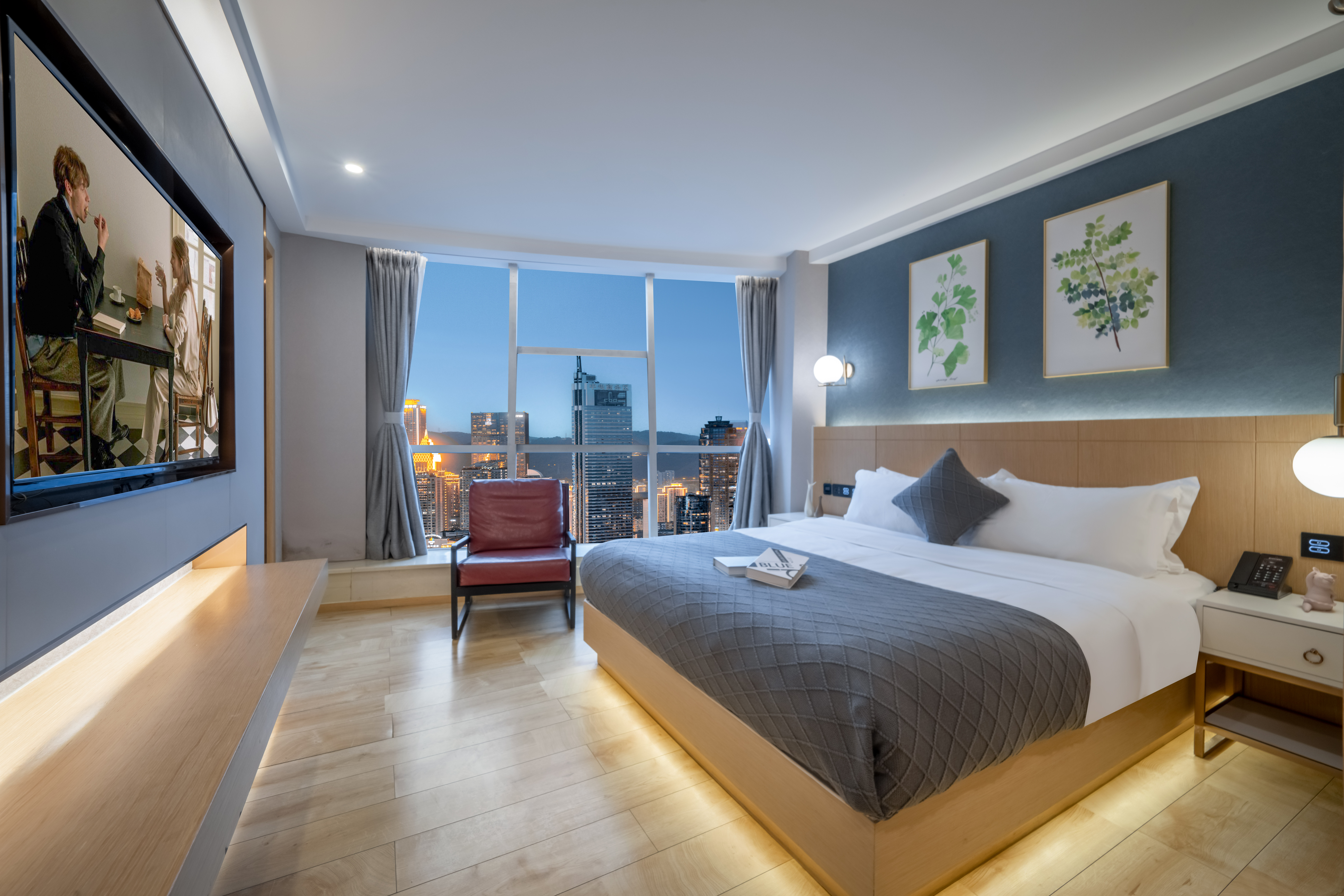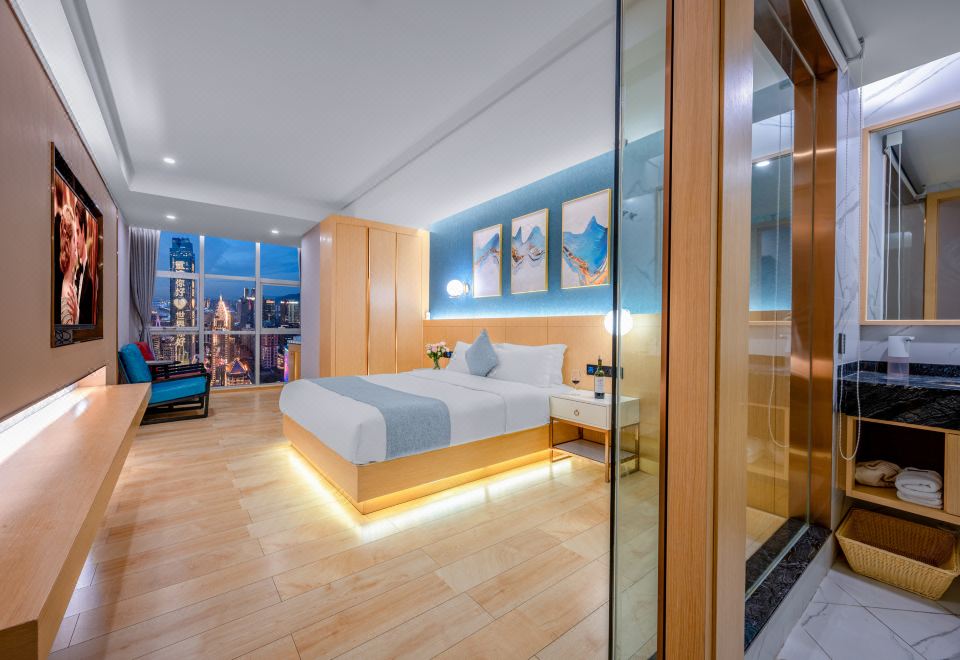 Modern摩登·地標大床房(山城景觀+藍牙音箱+冰箱)