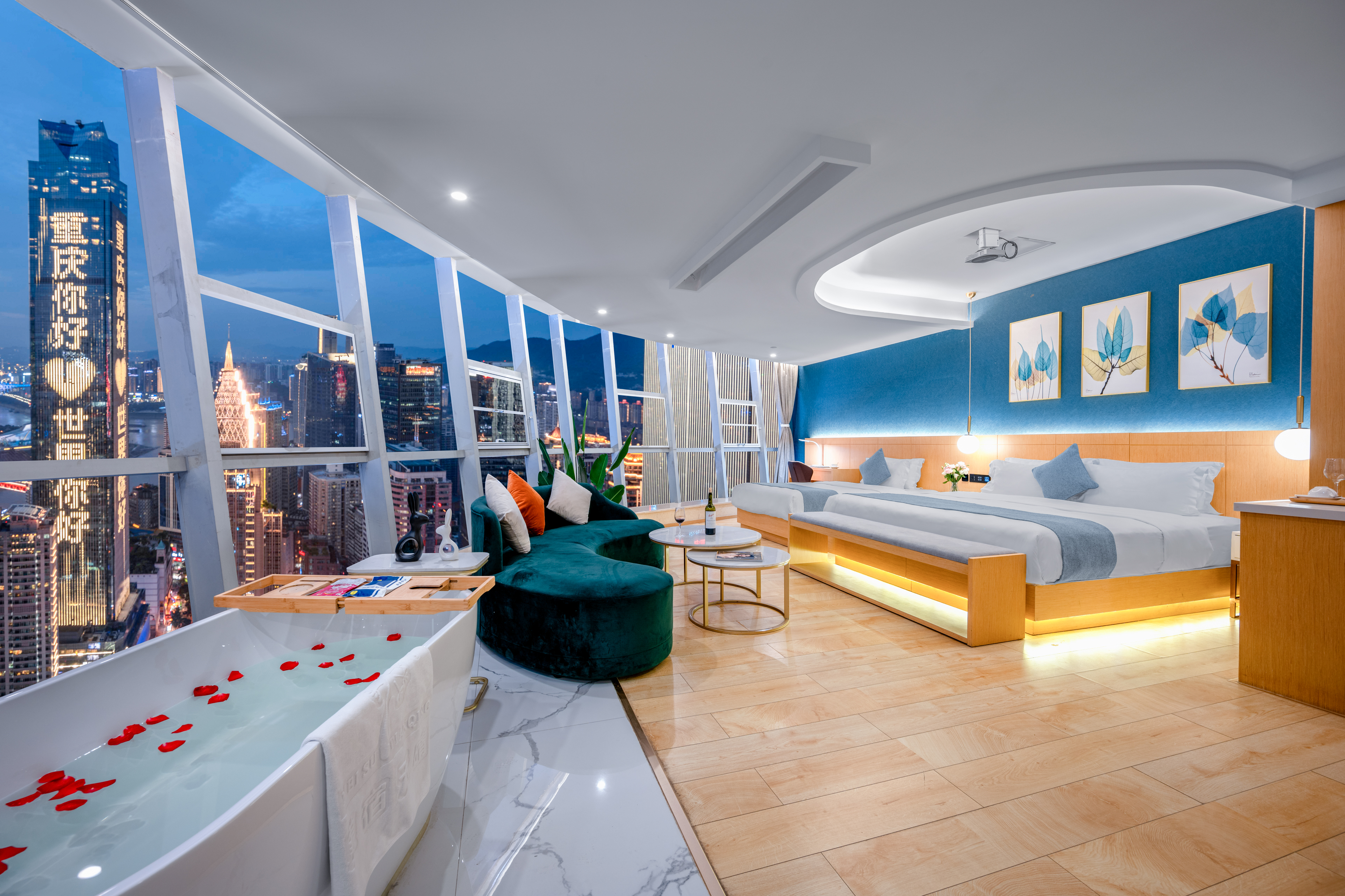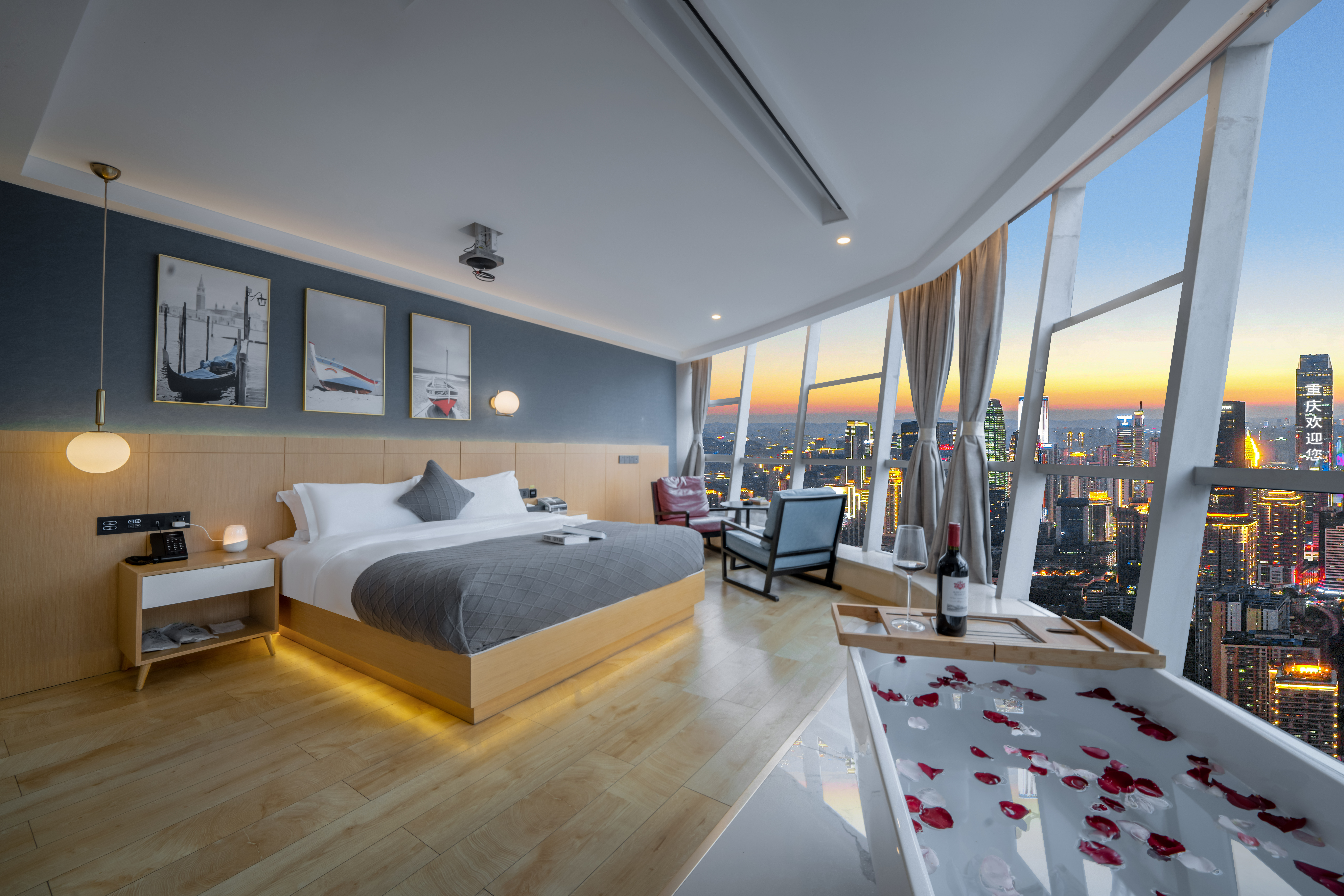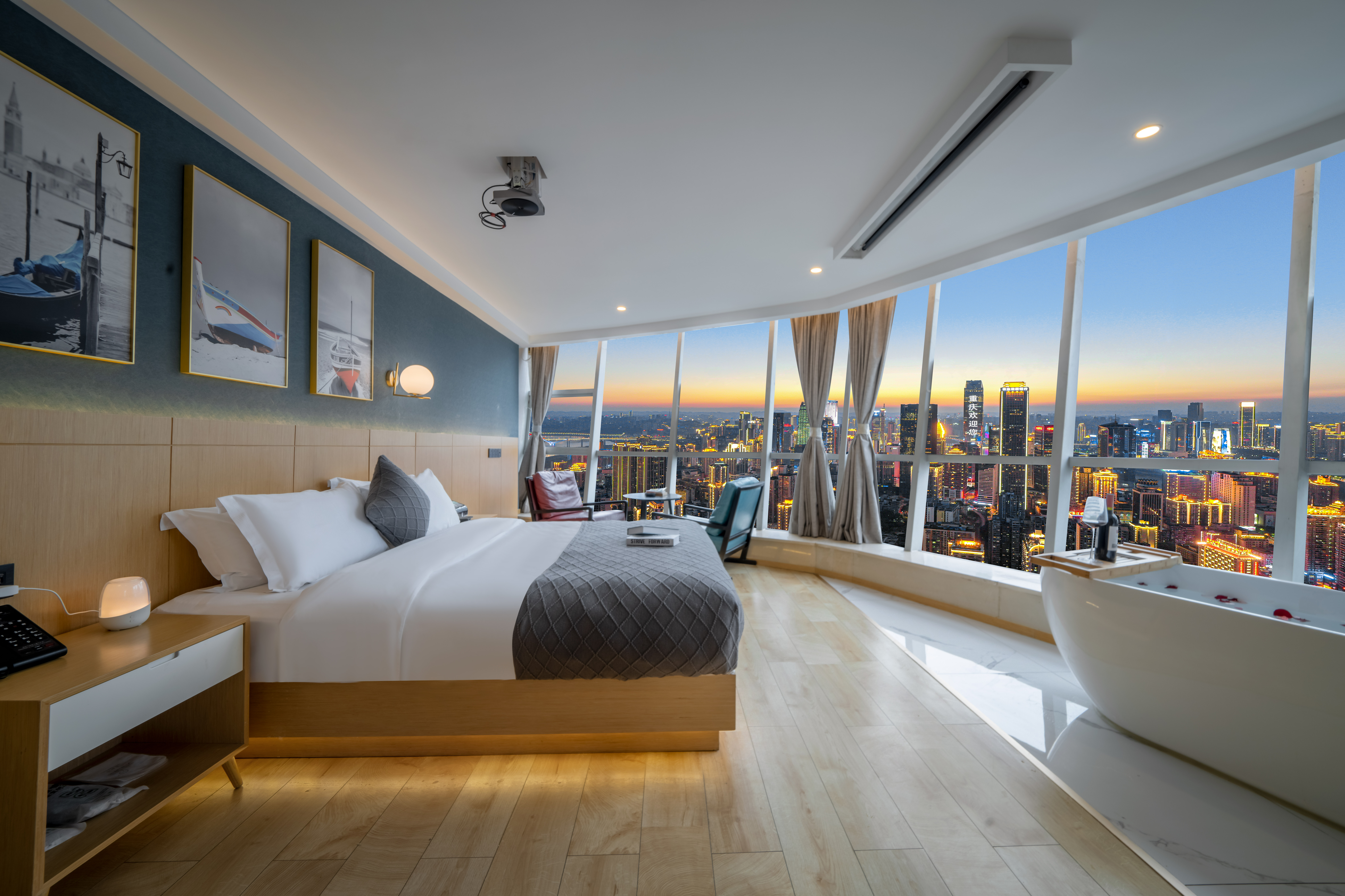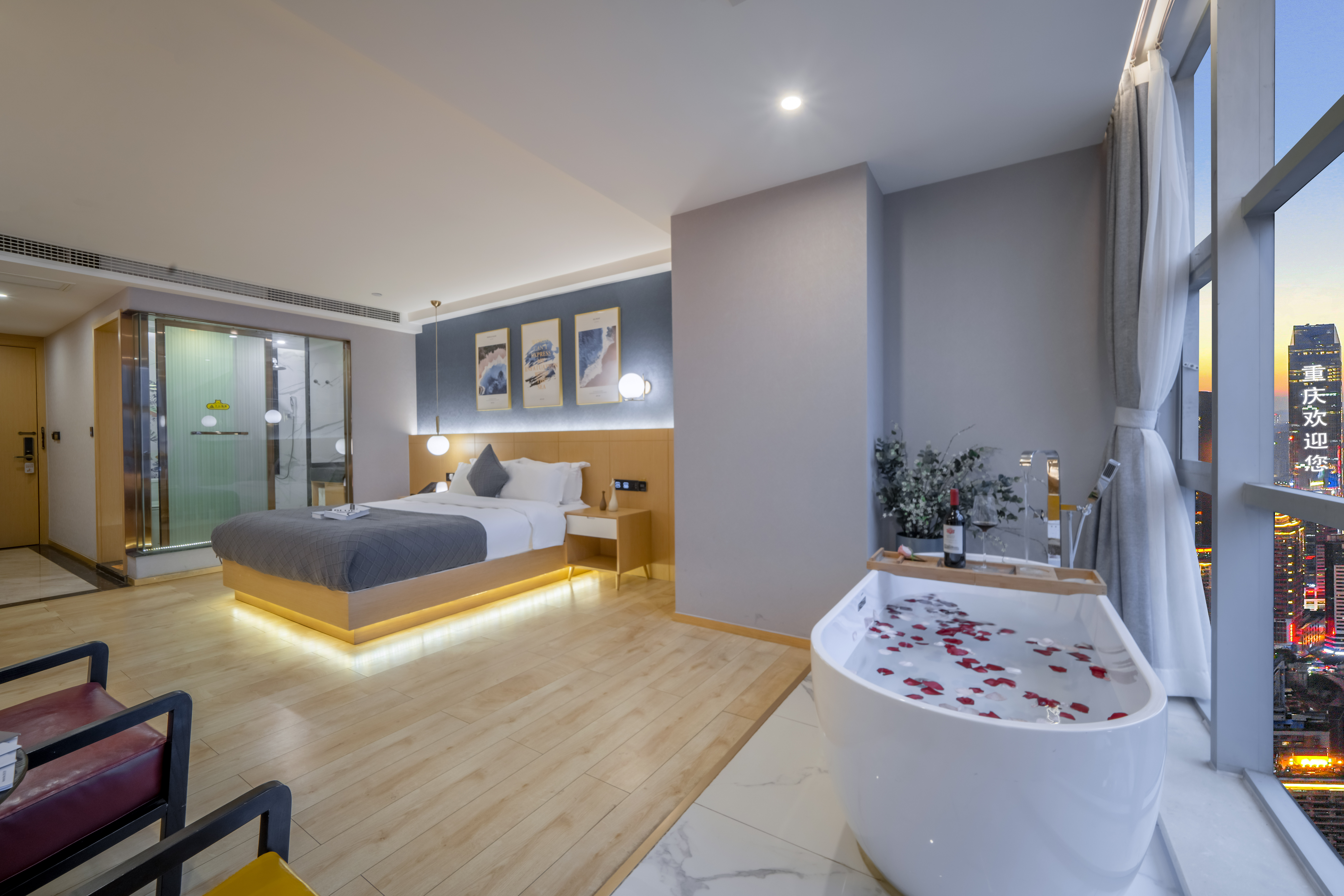 Desire即遇·解放碑私湯觀景大床房(地標夜景+舒適浴缸+藍牙音箱+冰箱)