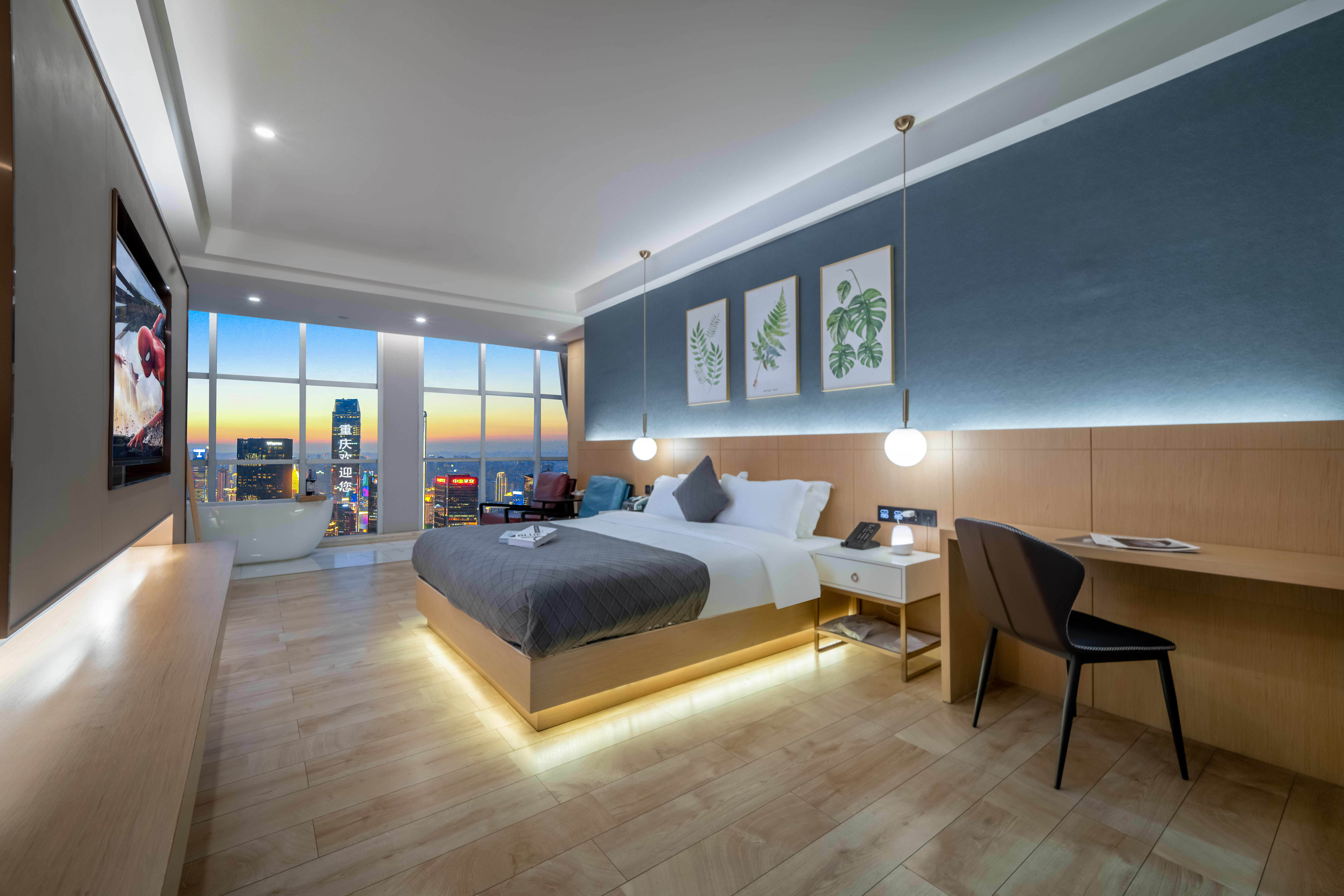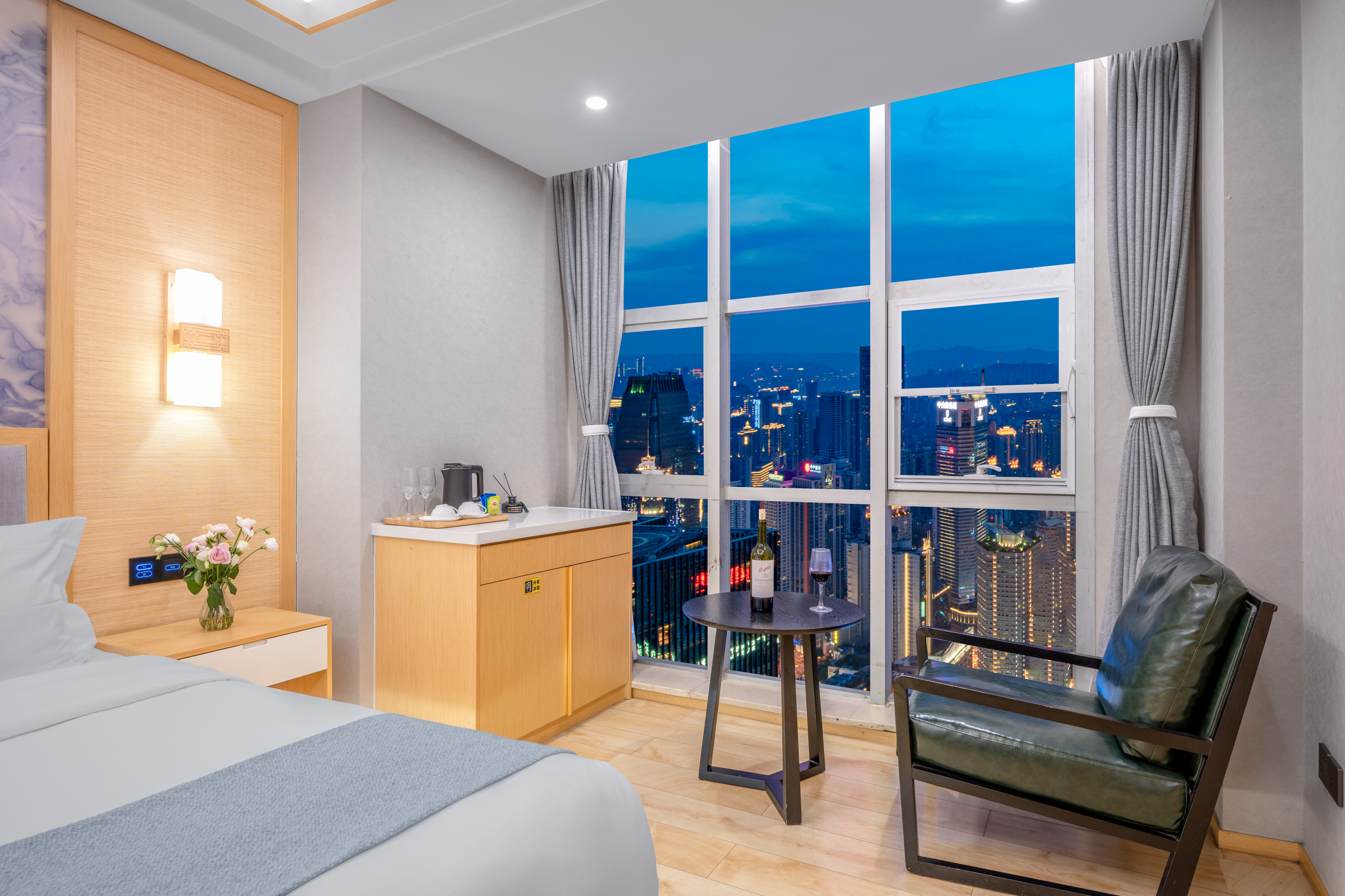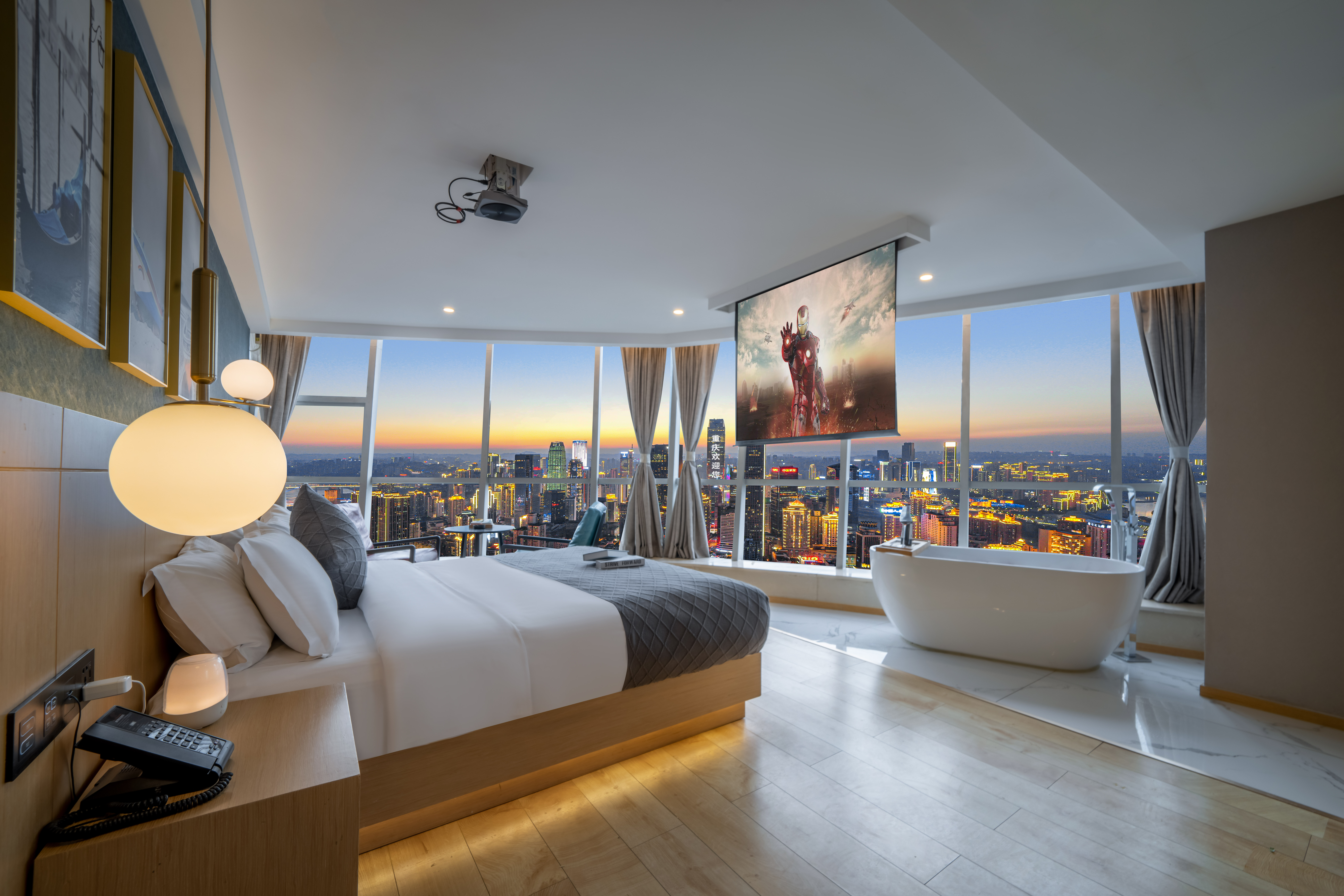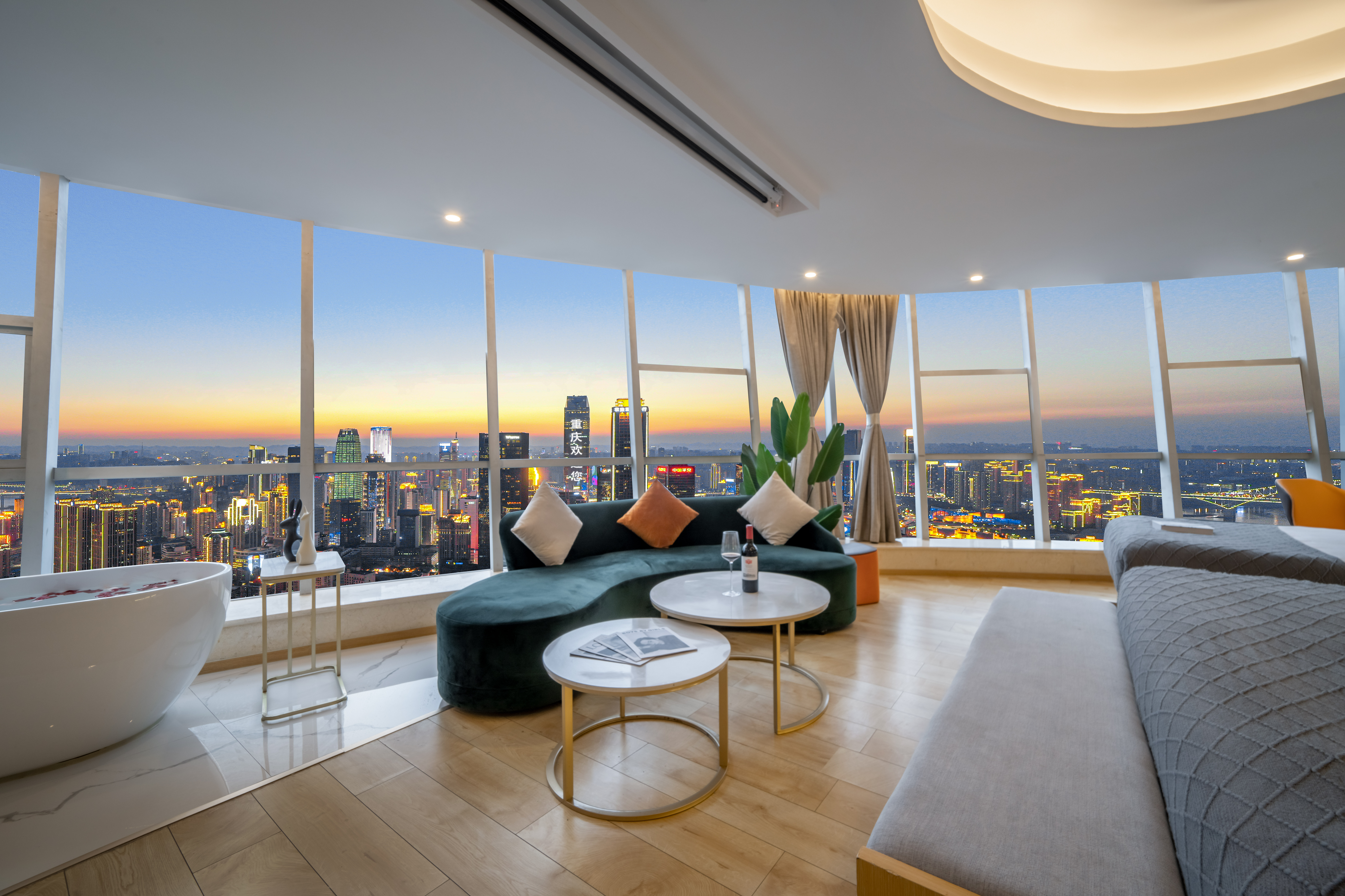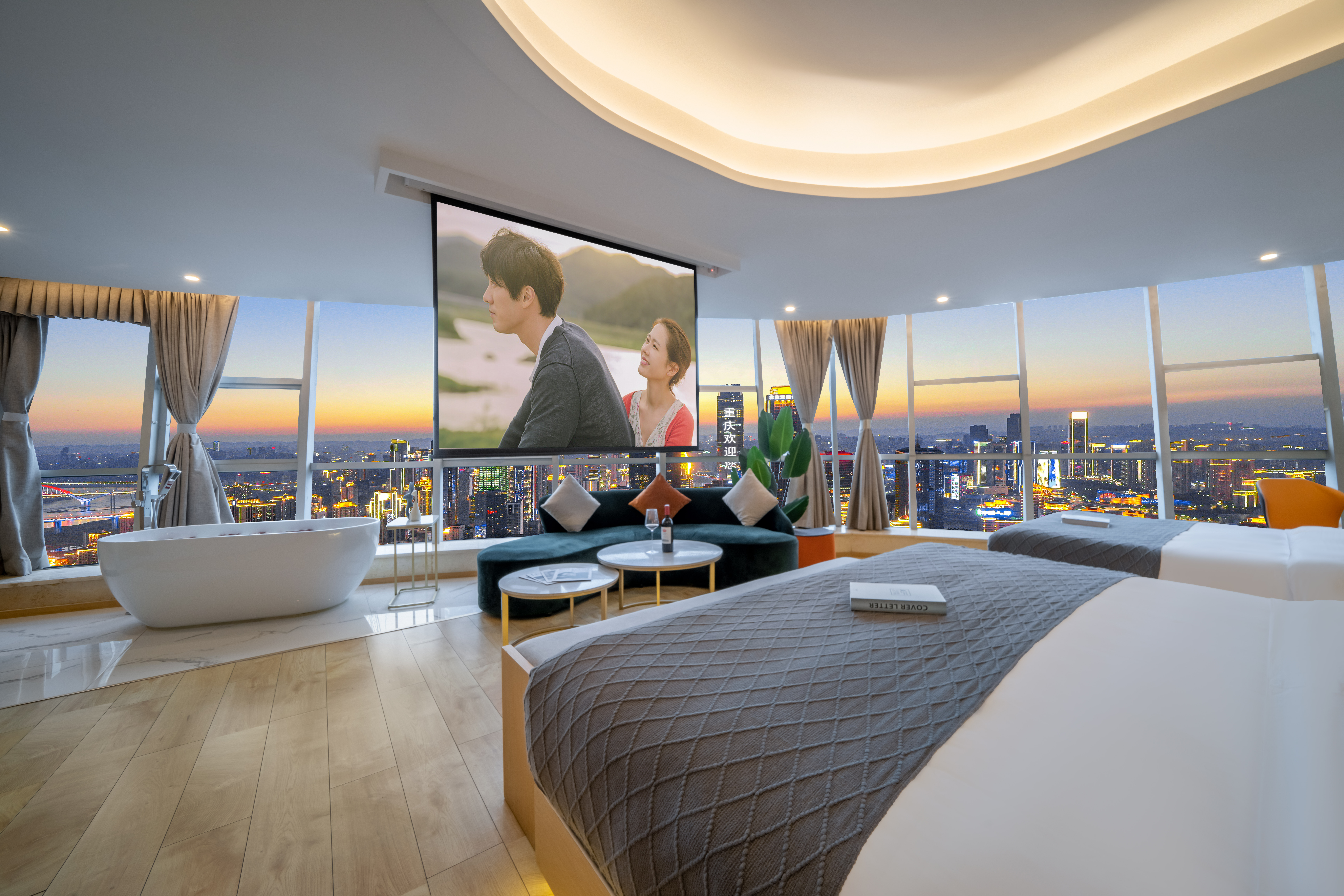 Desire即遇·解放碑私湯觀景大床房(地標夜景+舒適浴缸+藍牙音箱+冰箱)