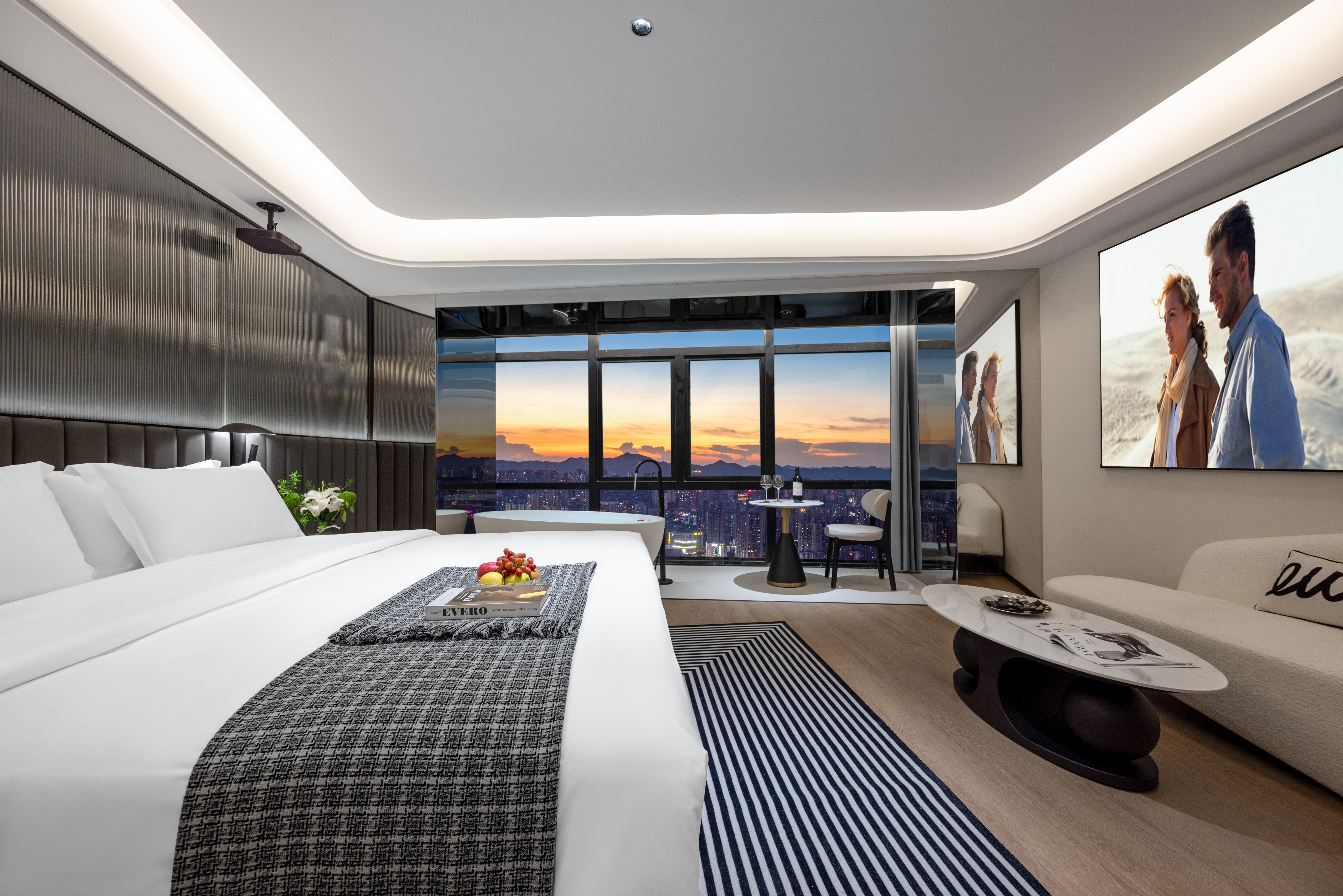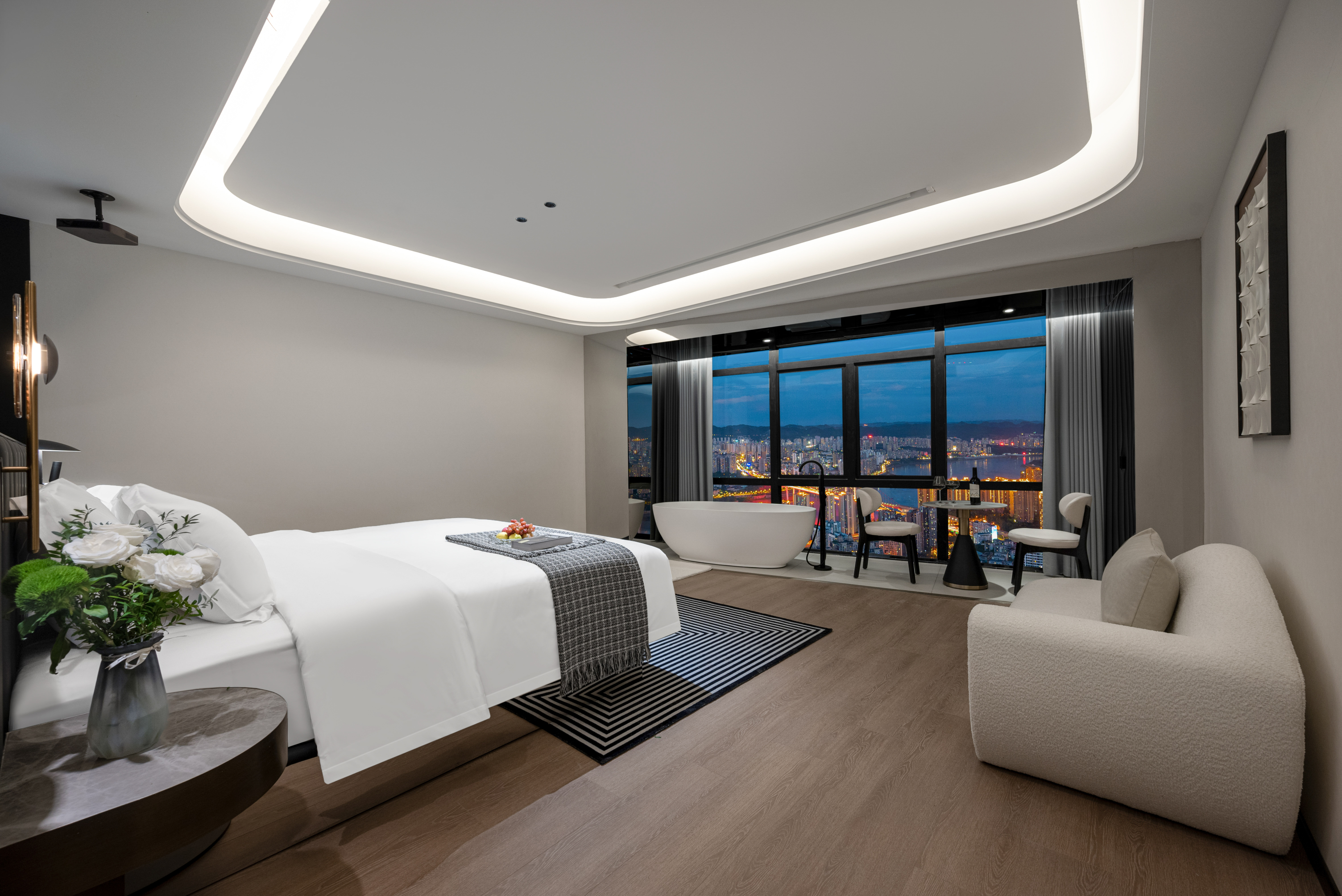 雾都山城浴缸观景大床房(全屋智能语音客控+智能马桶+浴缸+小冰箱)