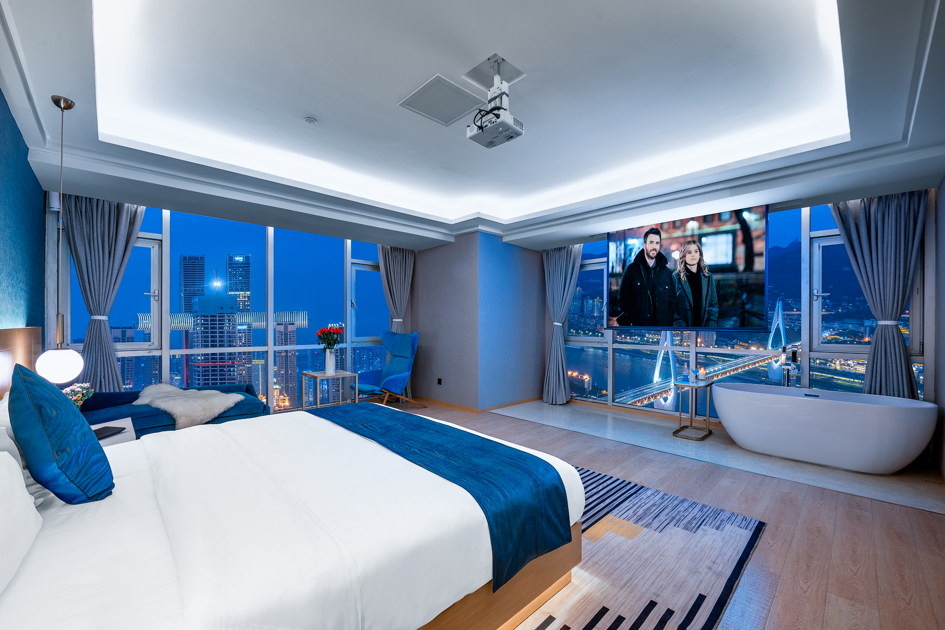 270度天际江景大床房「尊享巨幕影院浴缸+星河叠影」
