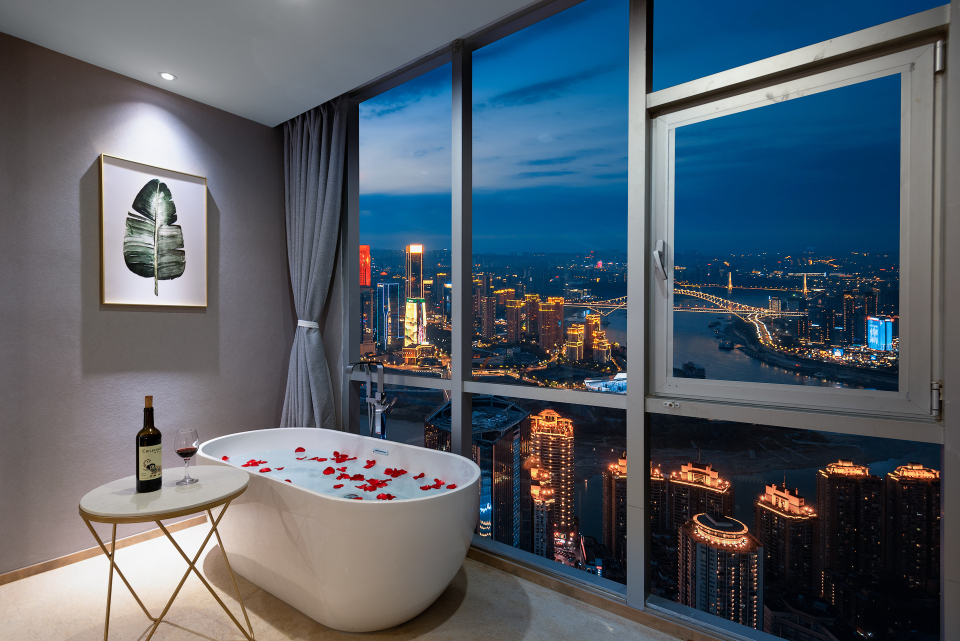 180度天际江景大床房「来福士地标江景+浪漫浴缸」