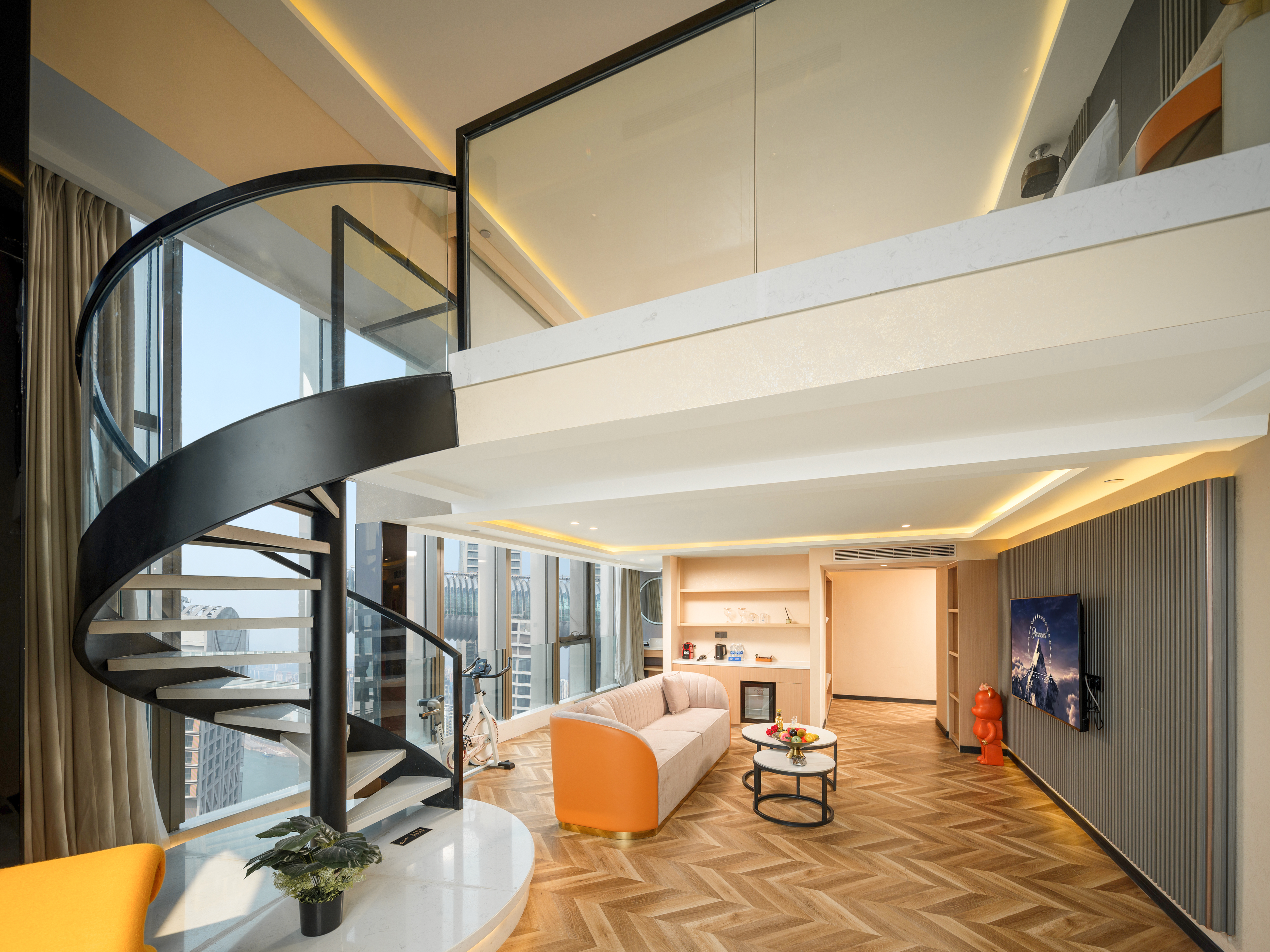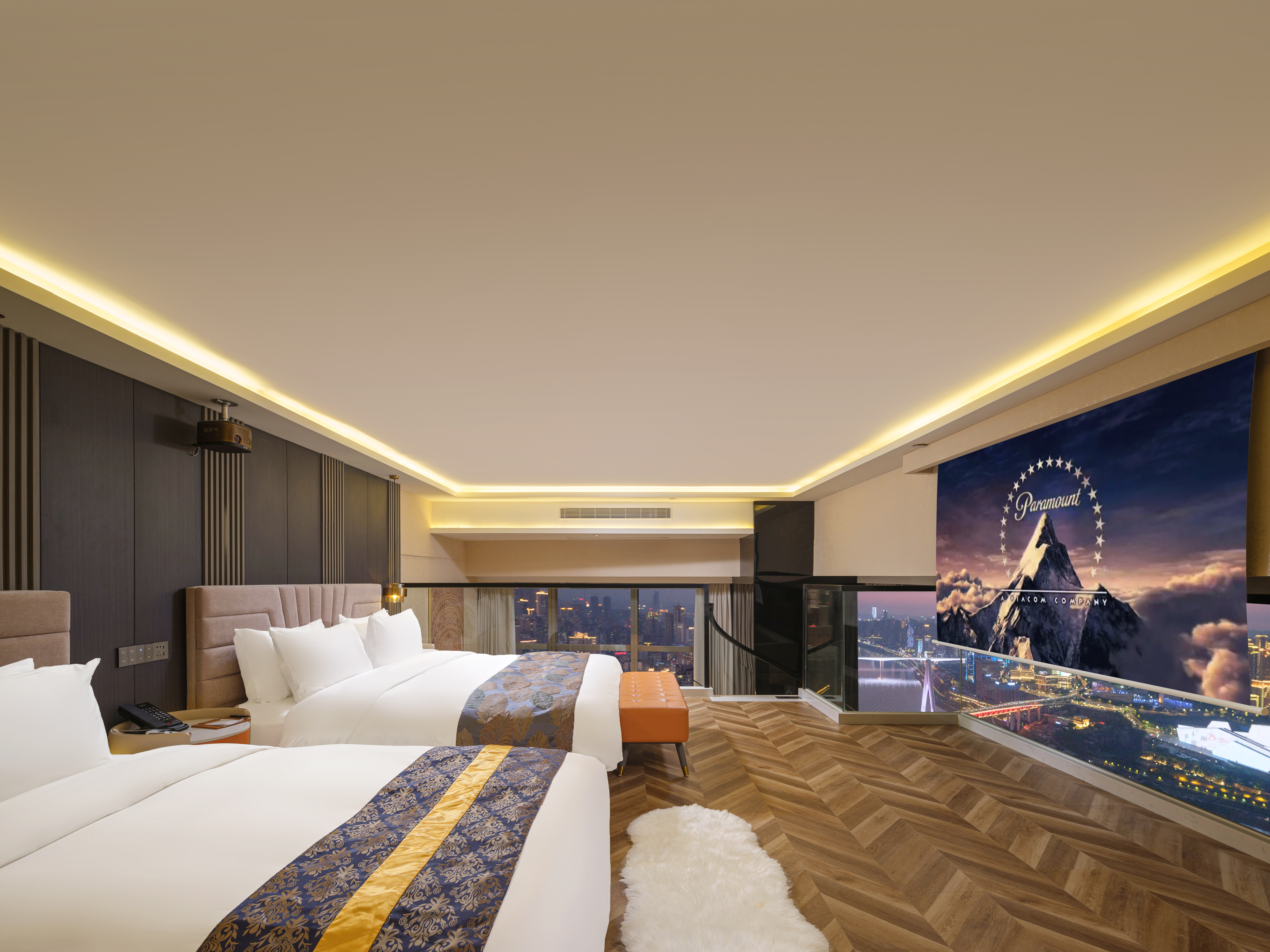 臻享LOFT.270°半岛江景双床投影套房(地标江景+浴缸+巨幕投影+柜藏式冰箱)