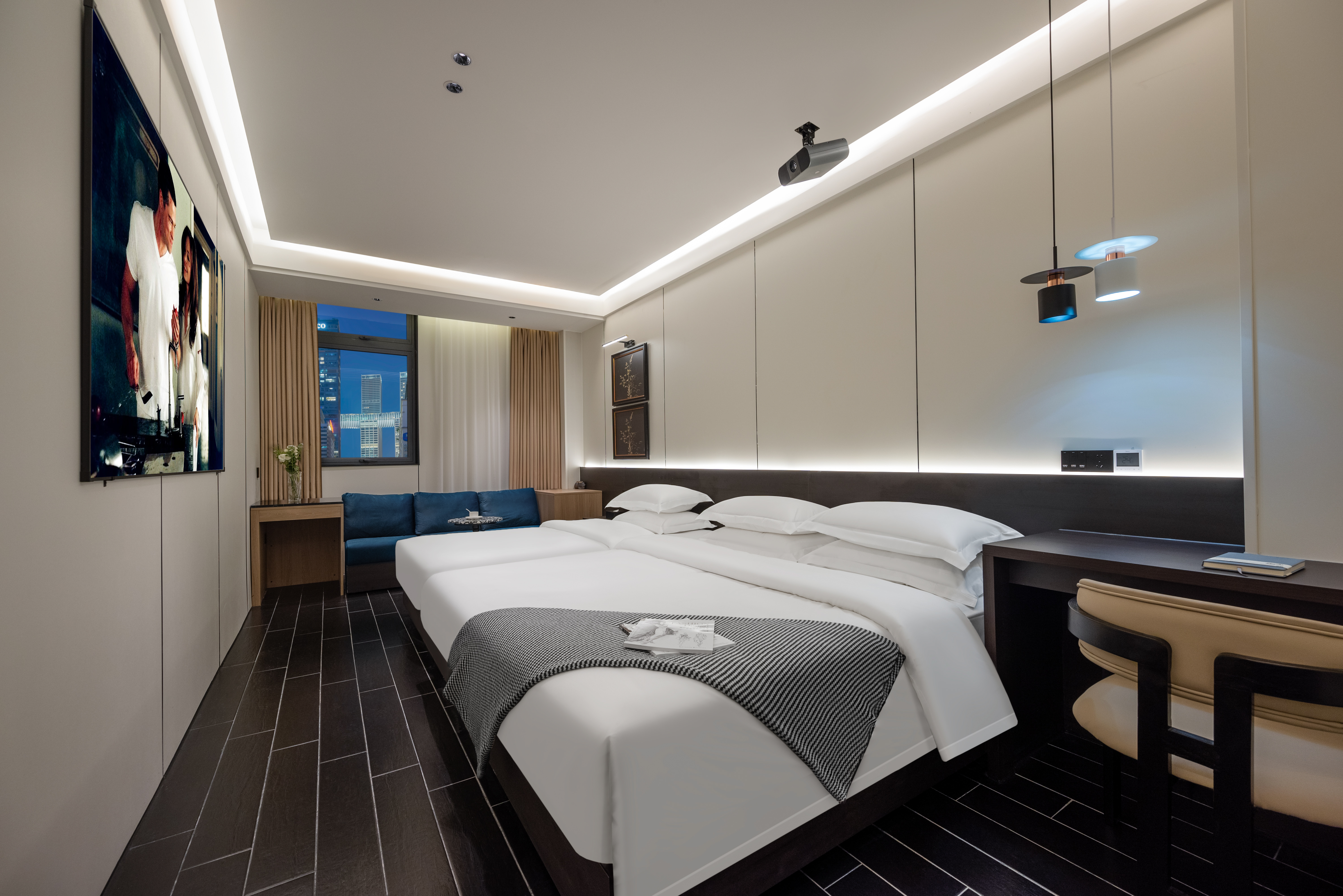 浮雲影院·雙床房【4K高清巨幕投影·智能馬桶·乳膠雙枕】