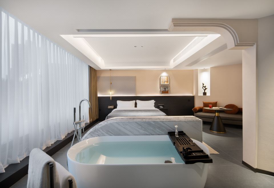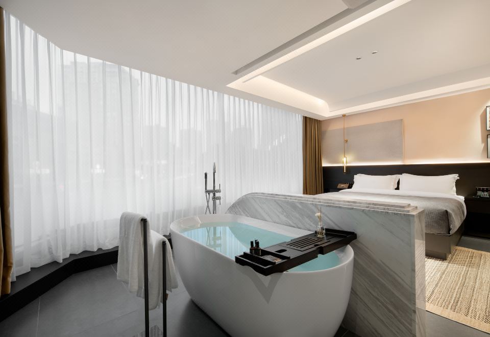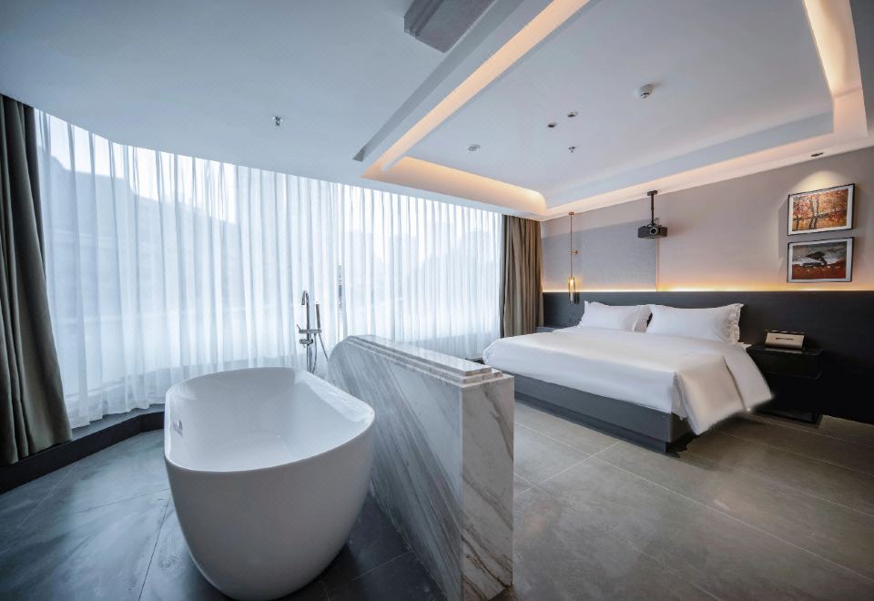 浪漫·浴缸大床房(小冰箱+180°落地窗+温馨投影)