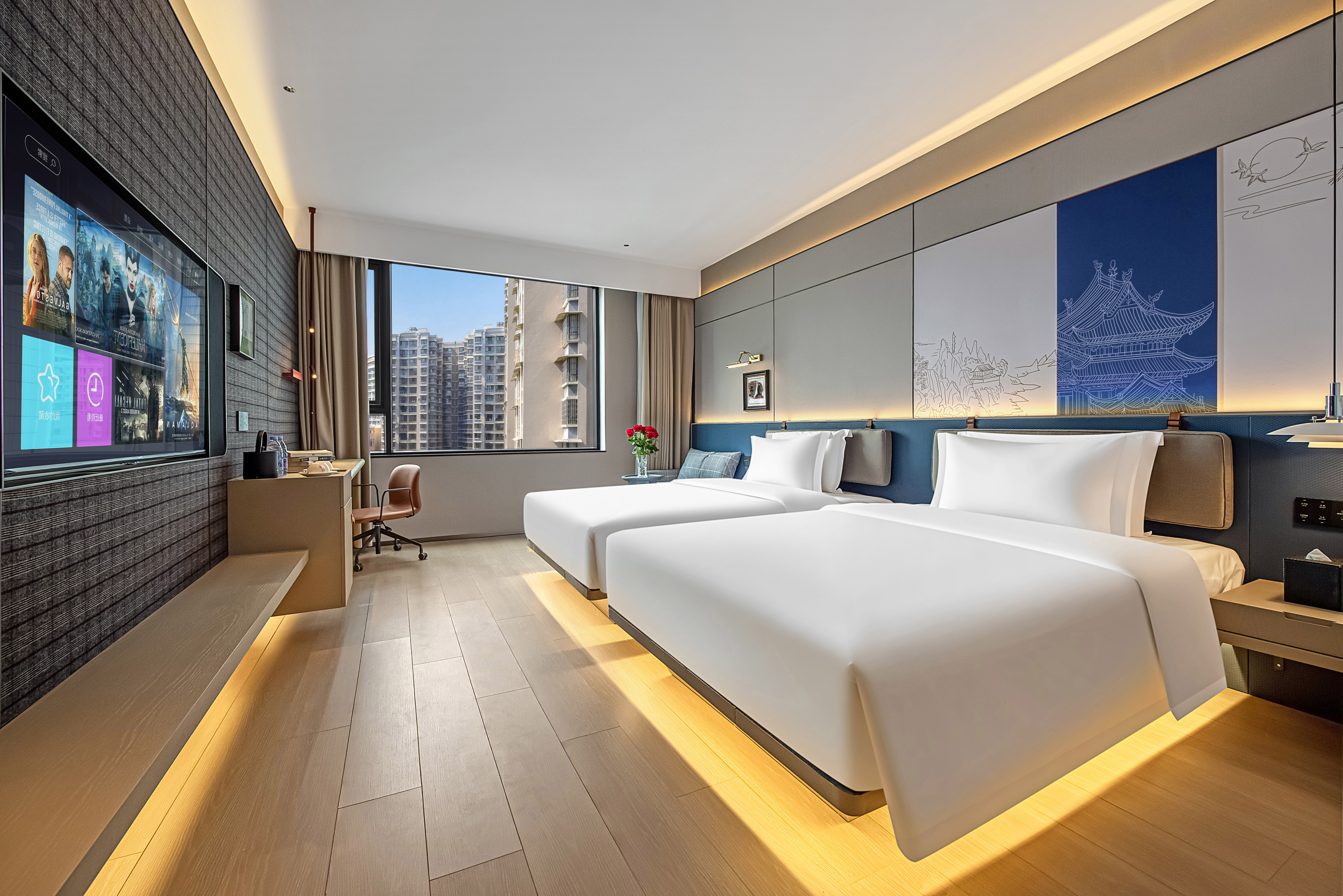 雅緻靜享雙床房【城市美景|都市氛圍|採光明亮】
