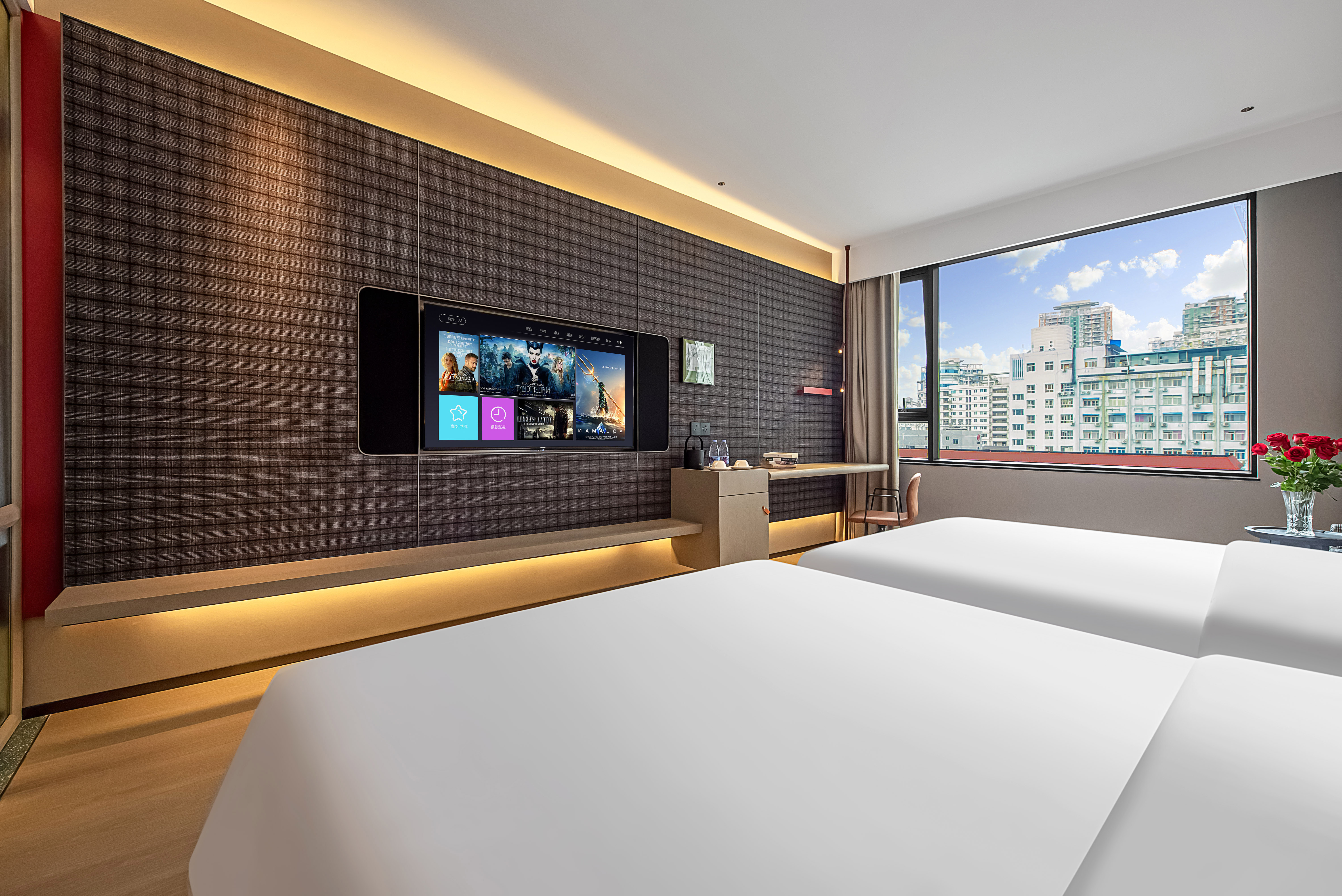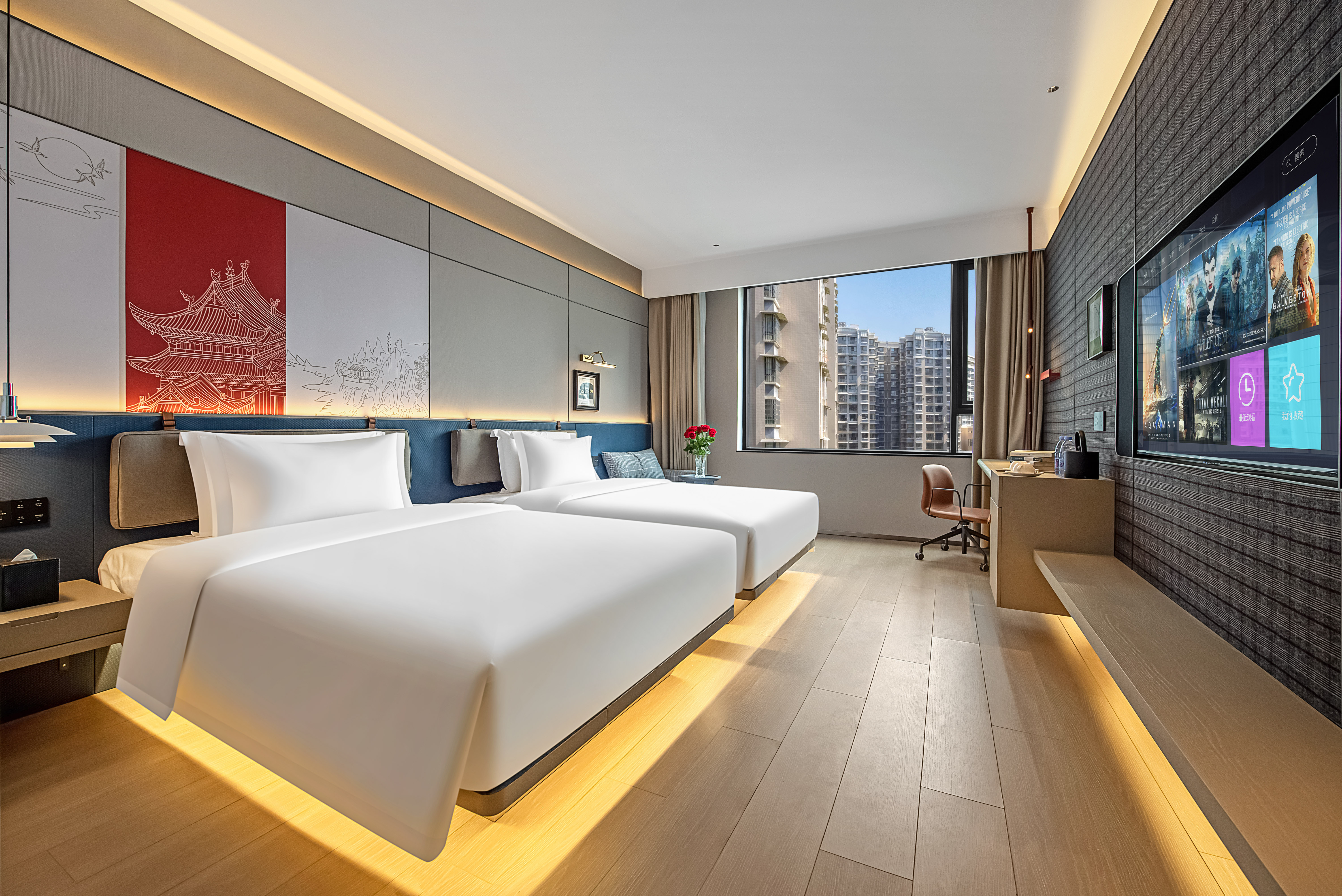 雅緻靜享雙床房【城市美景|都市氛圍|採光明亮】