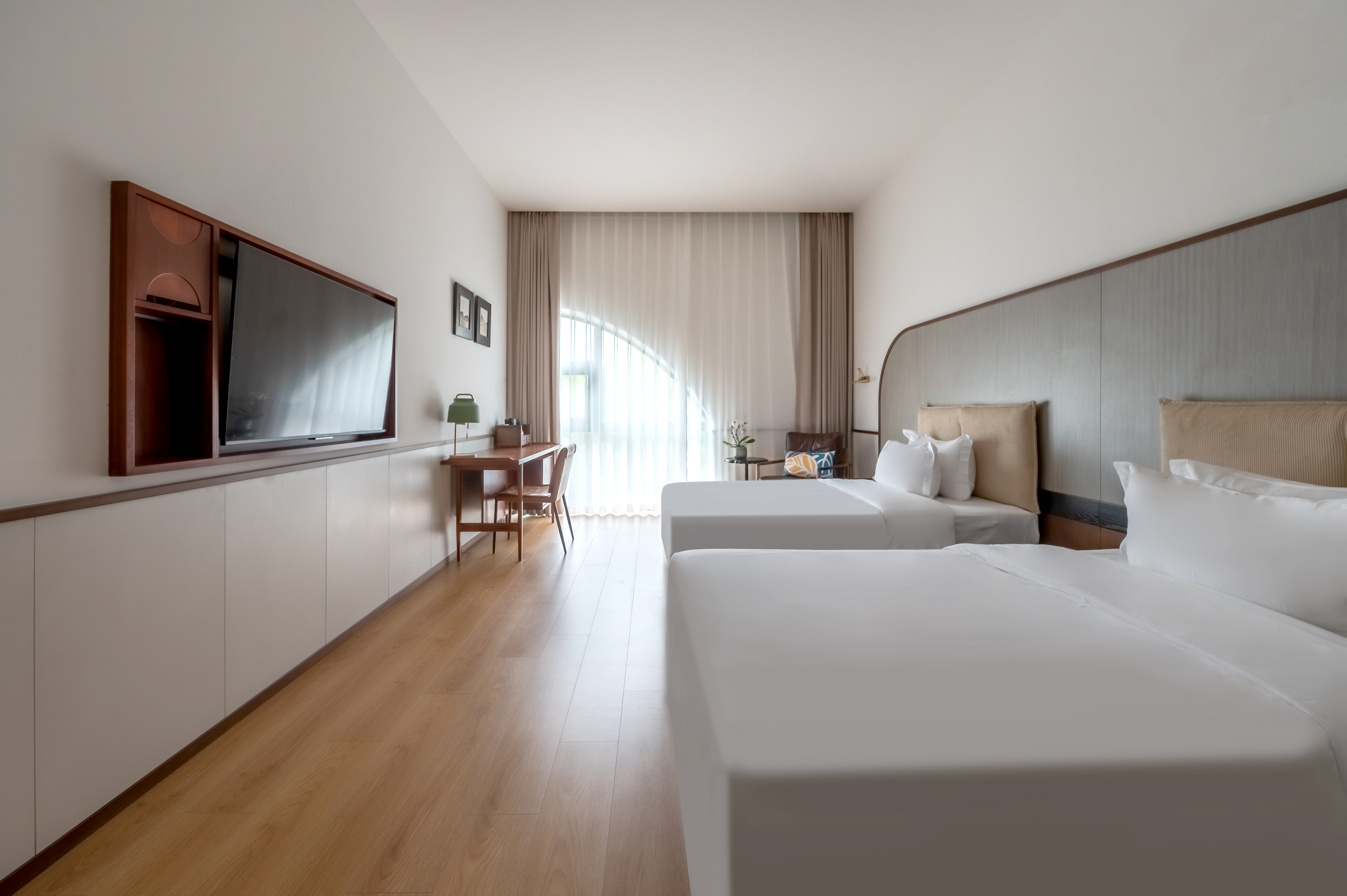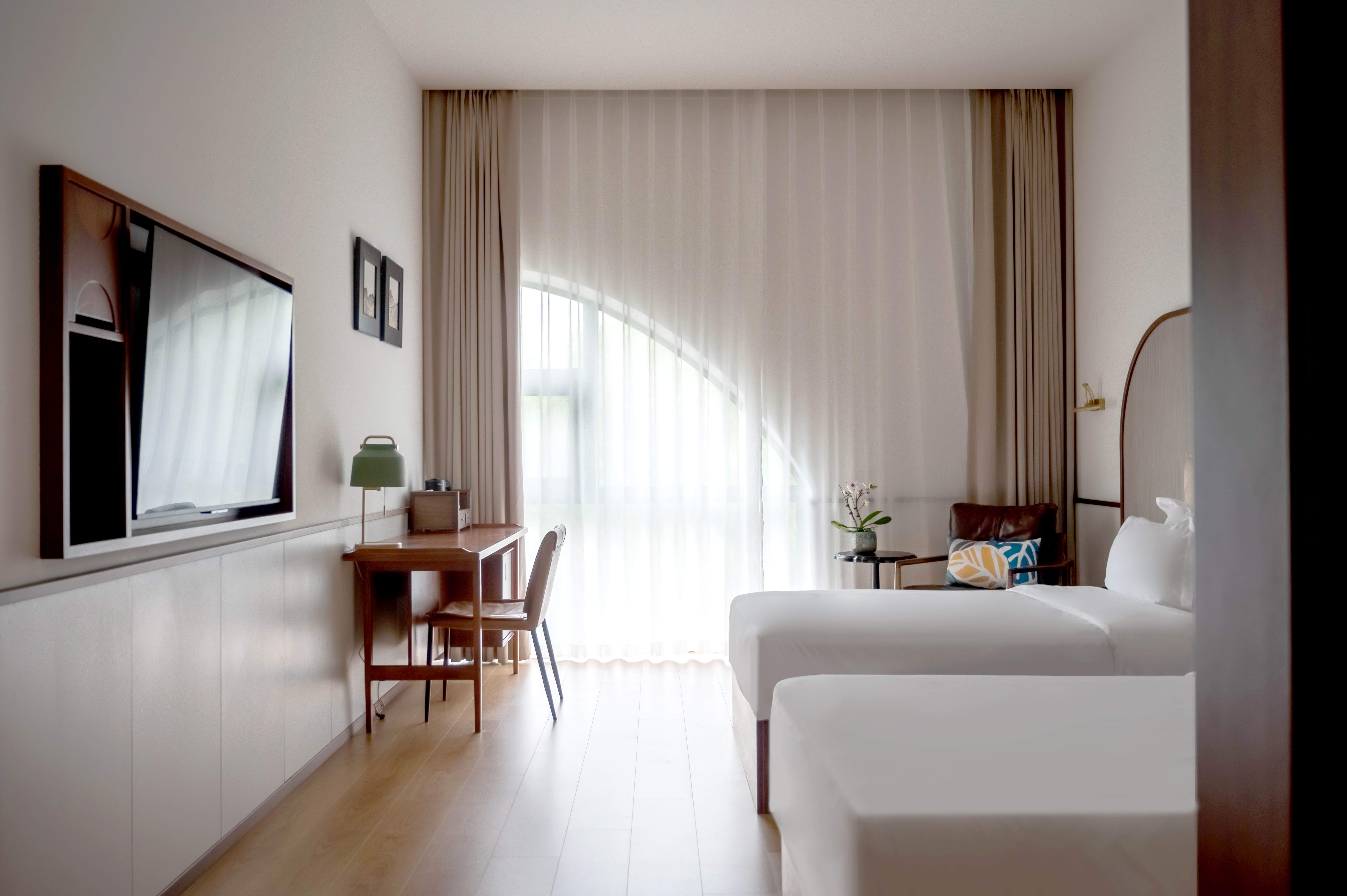 大器・尊享觀景雙床房「公園好景+定製書桌+乳膠山棕床墊+美標智能馬桶」