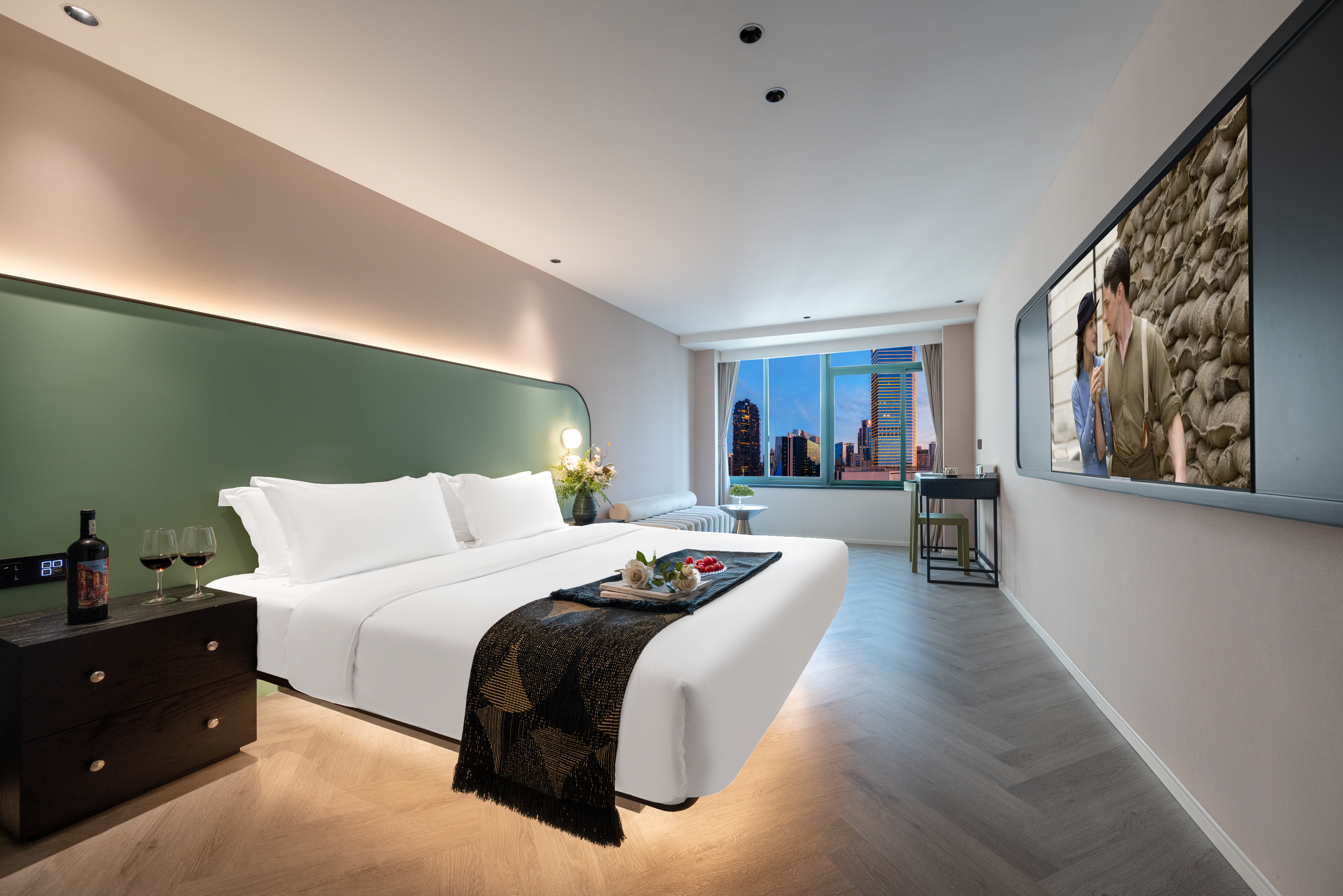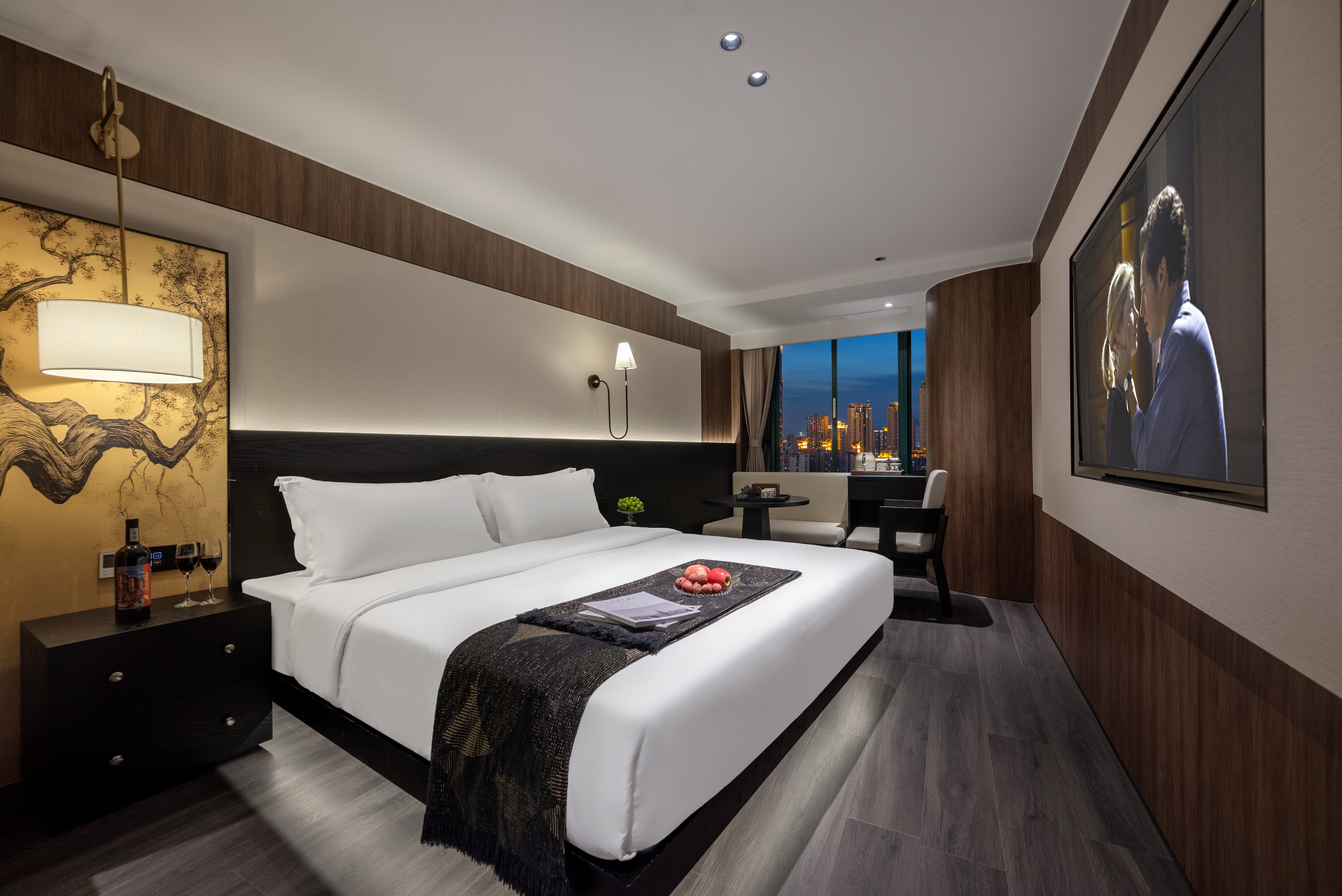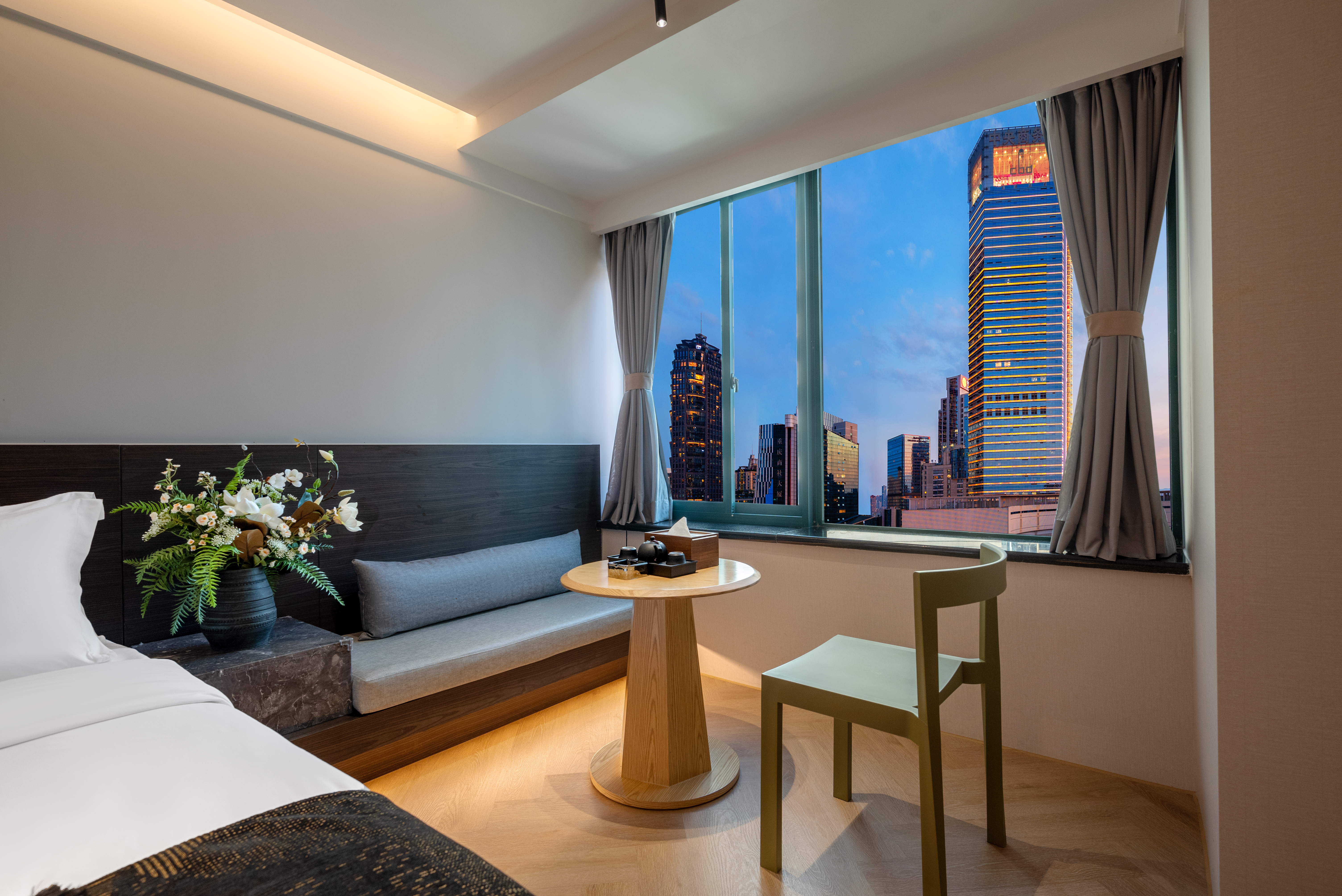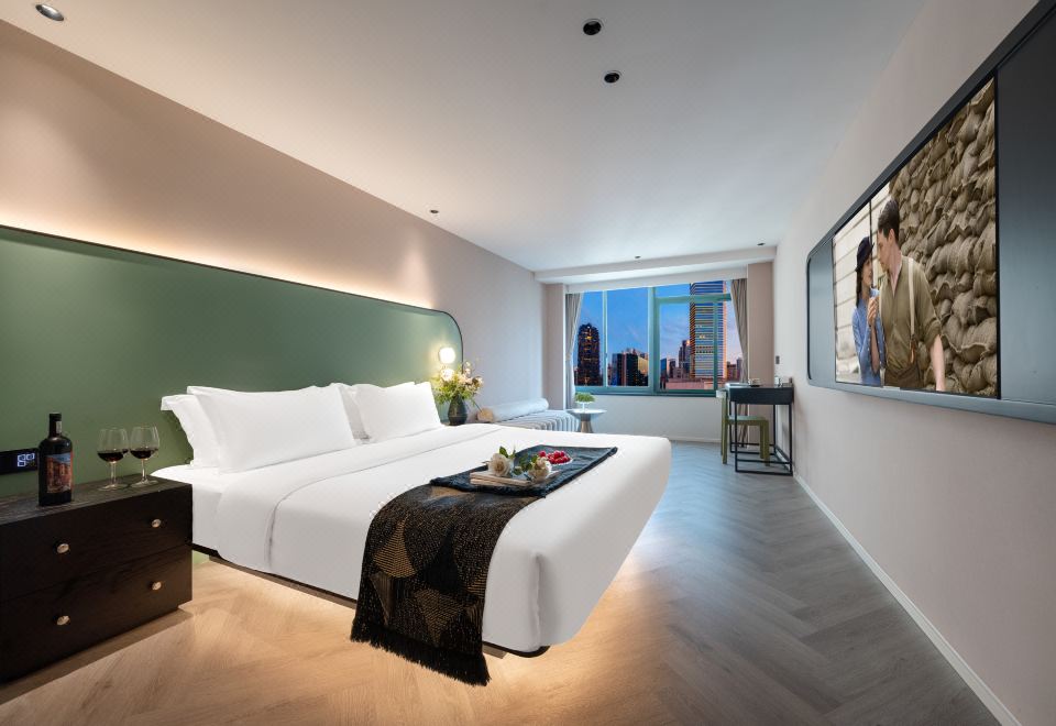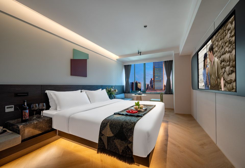 Dear·靜謐大床房 【賞城市霓虹+地標城景+智能窗簾+高速吹風機】
