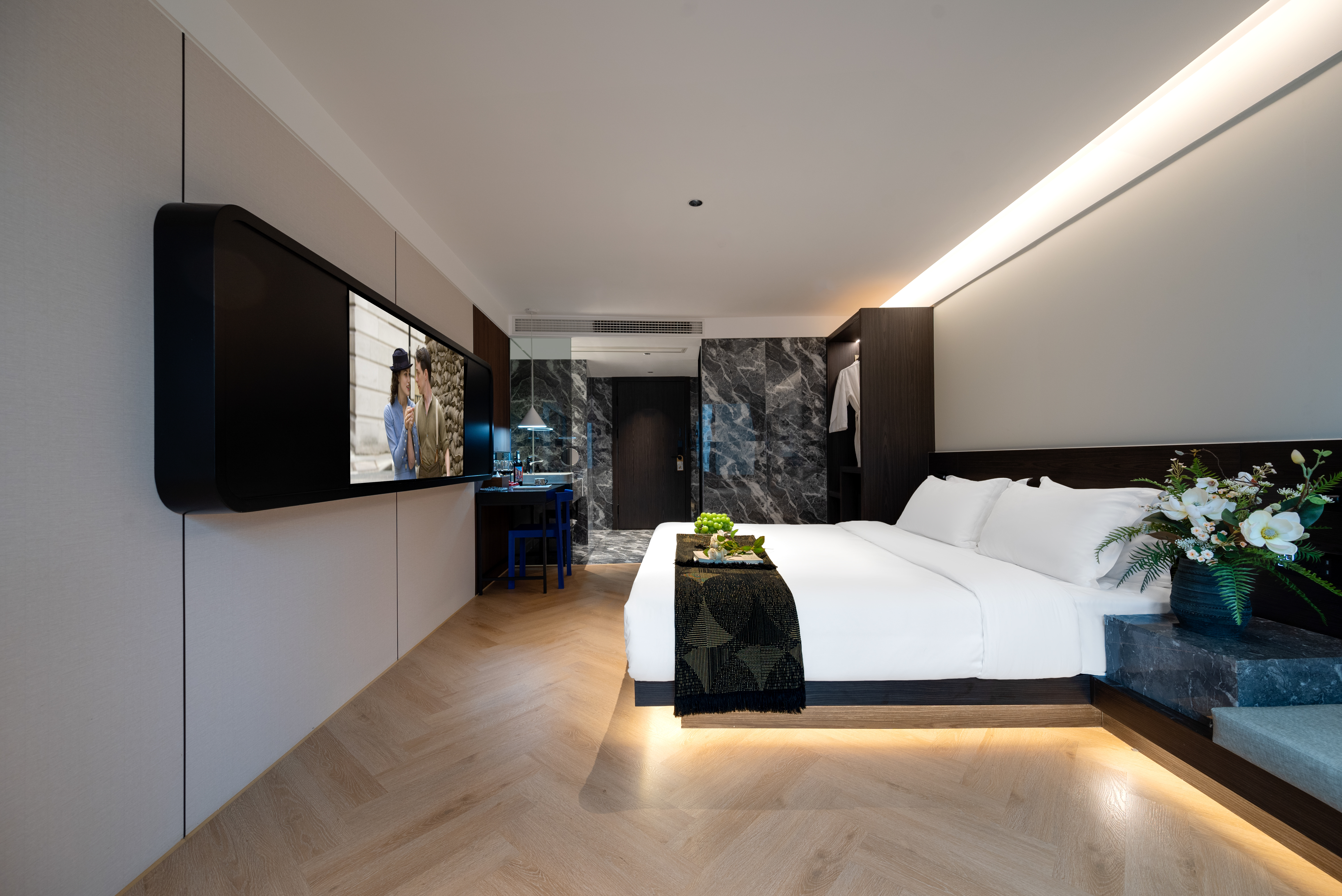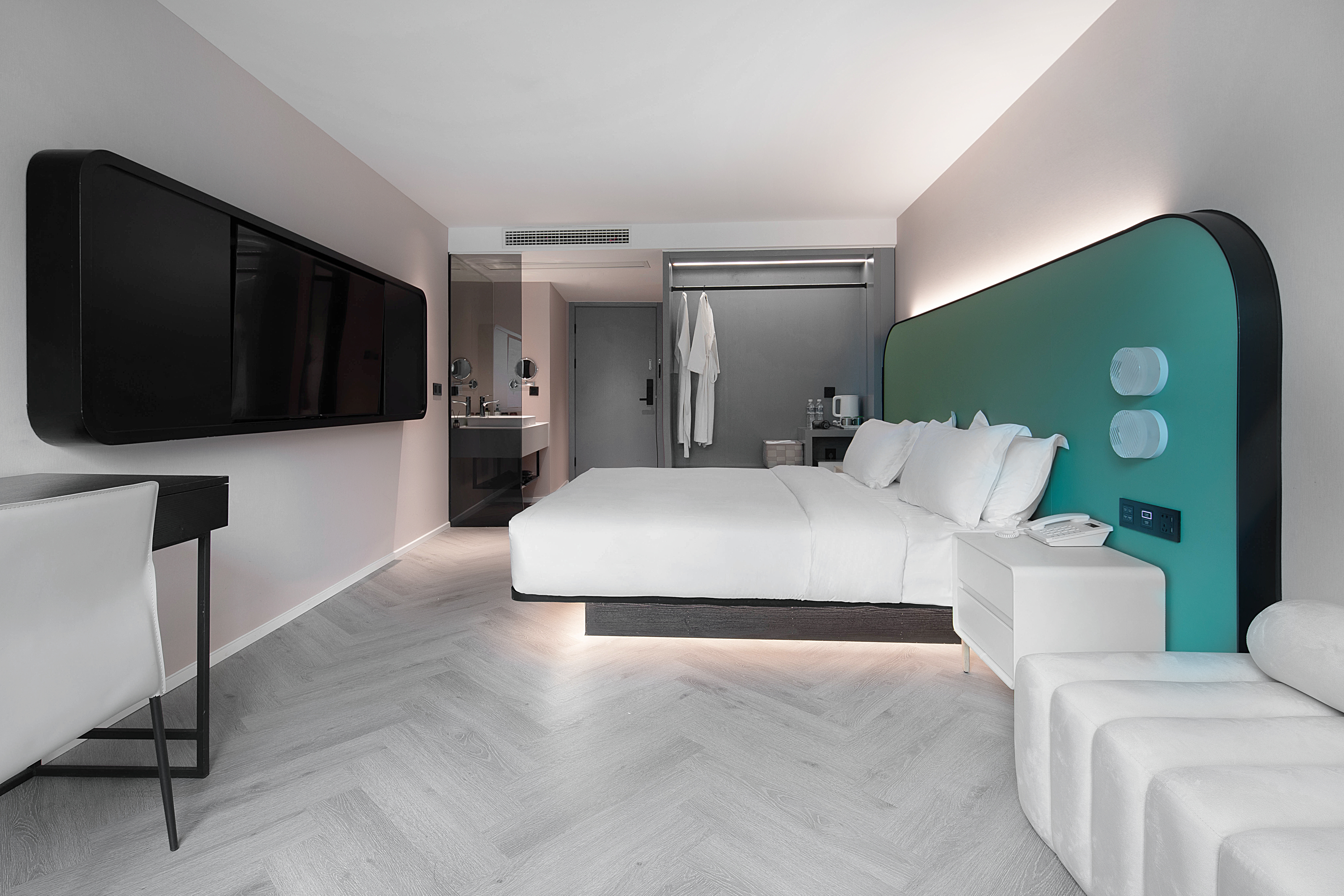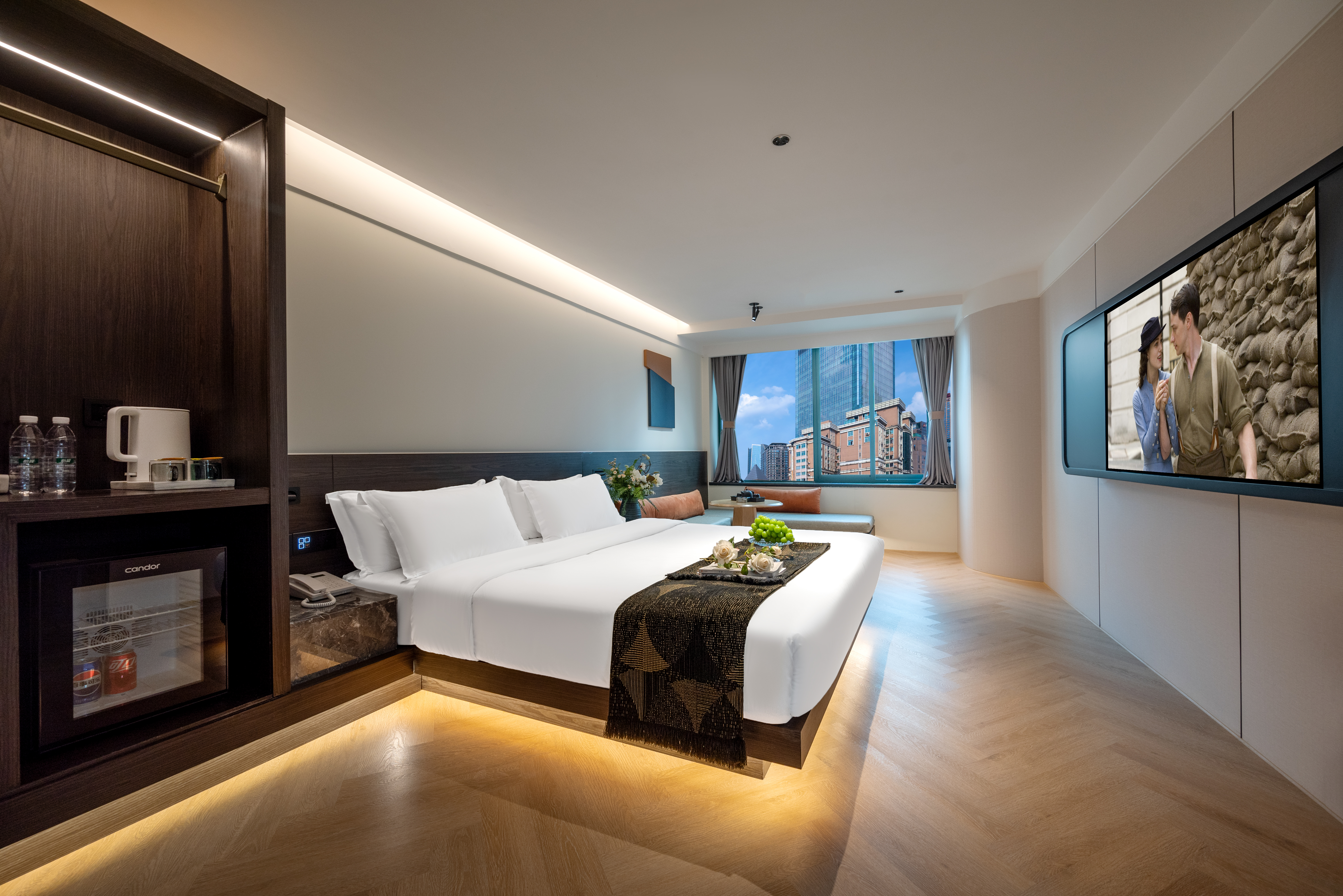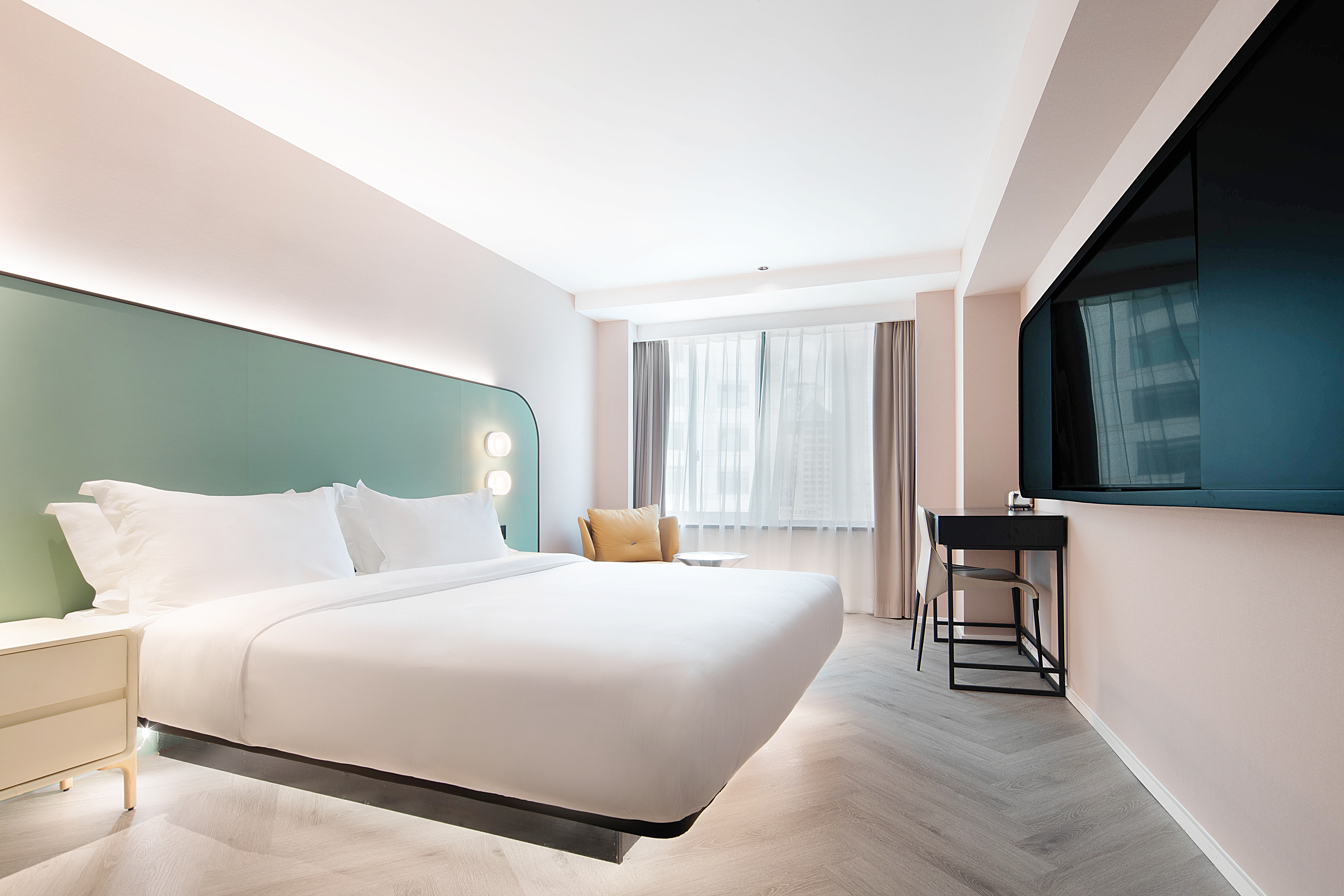 Dear·靜謐大床房 【賞城市霓虹+地標城景+智能窗簾+高速吹風機】