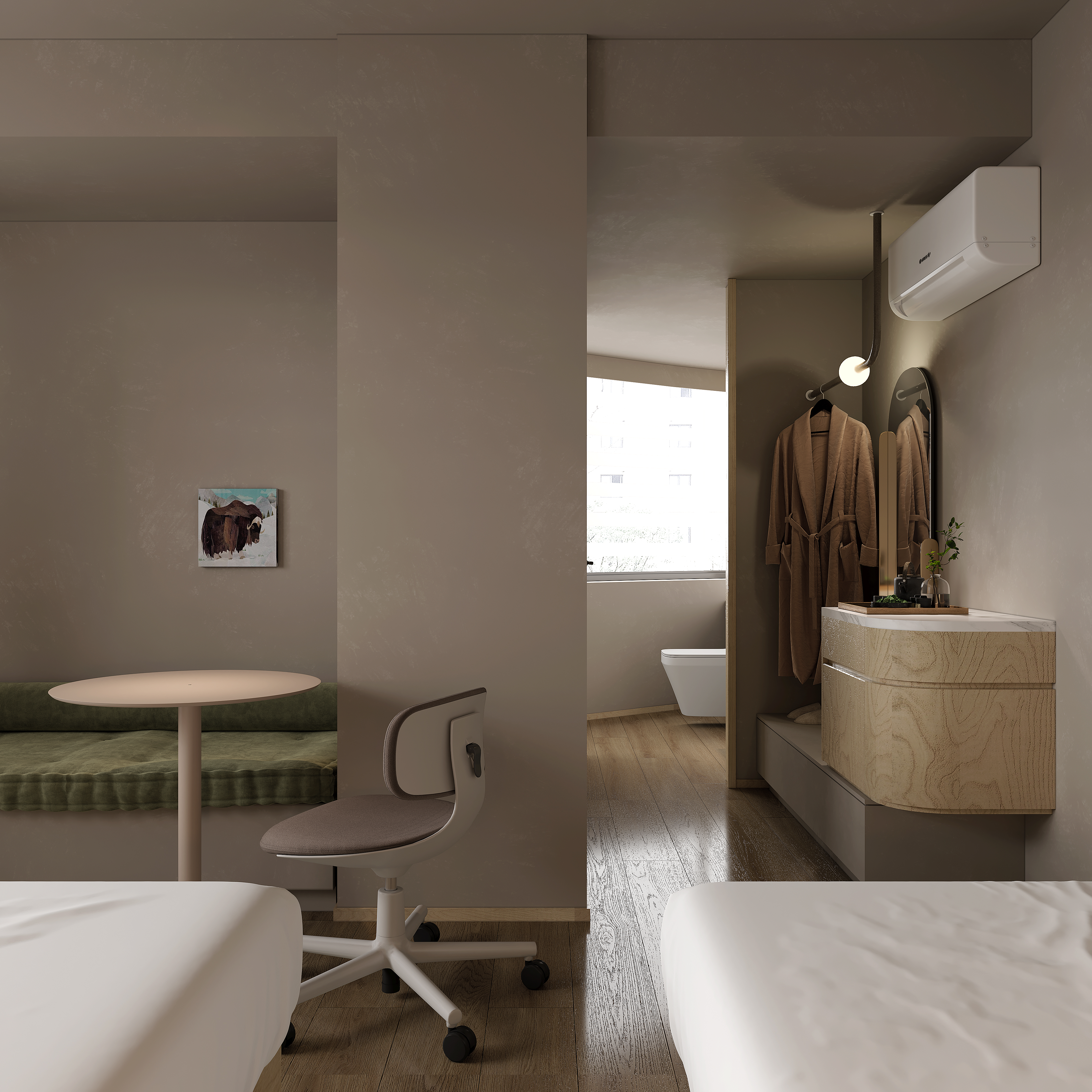 安睡雙床房|高定床品+乾濕分離