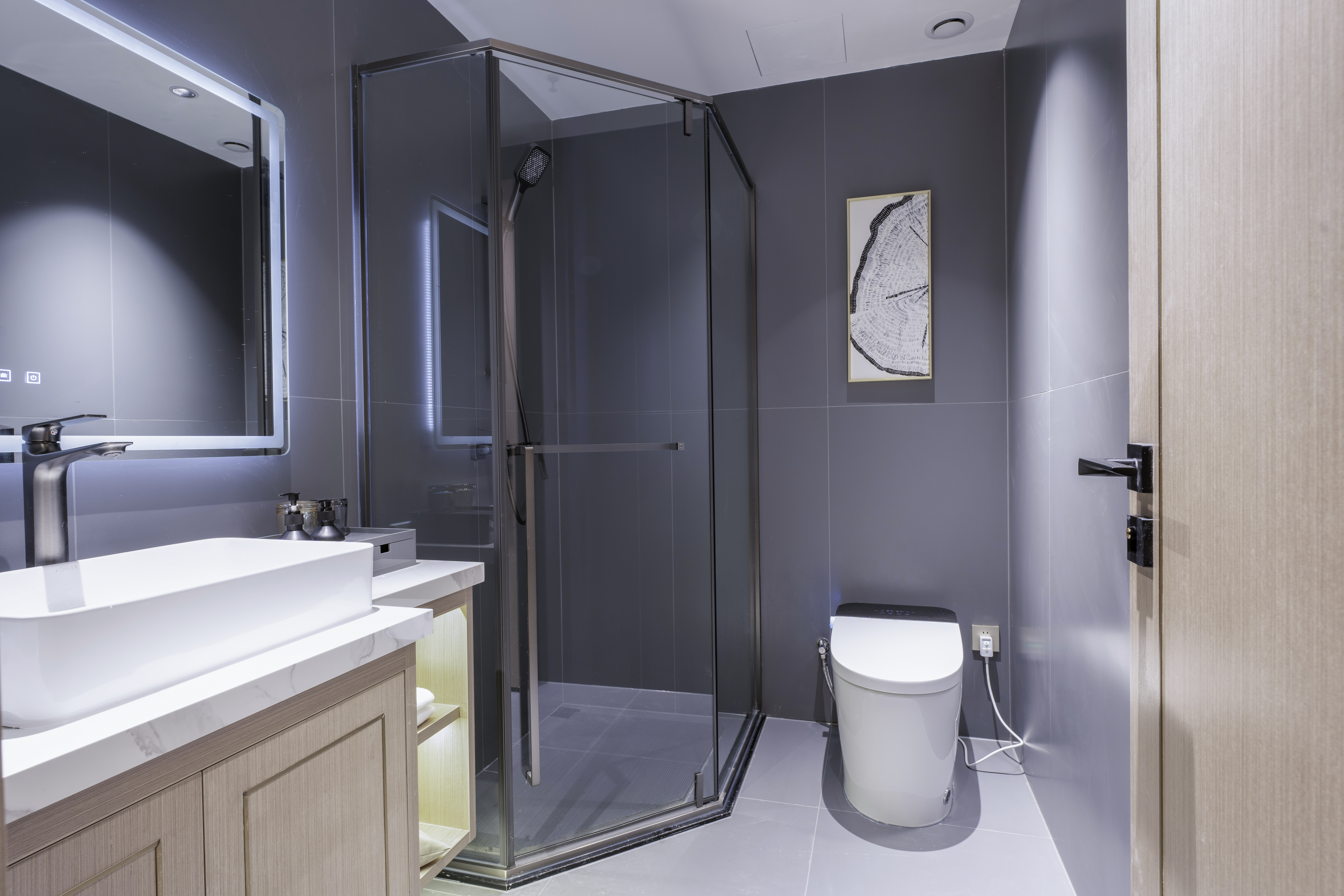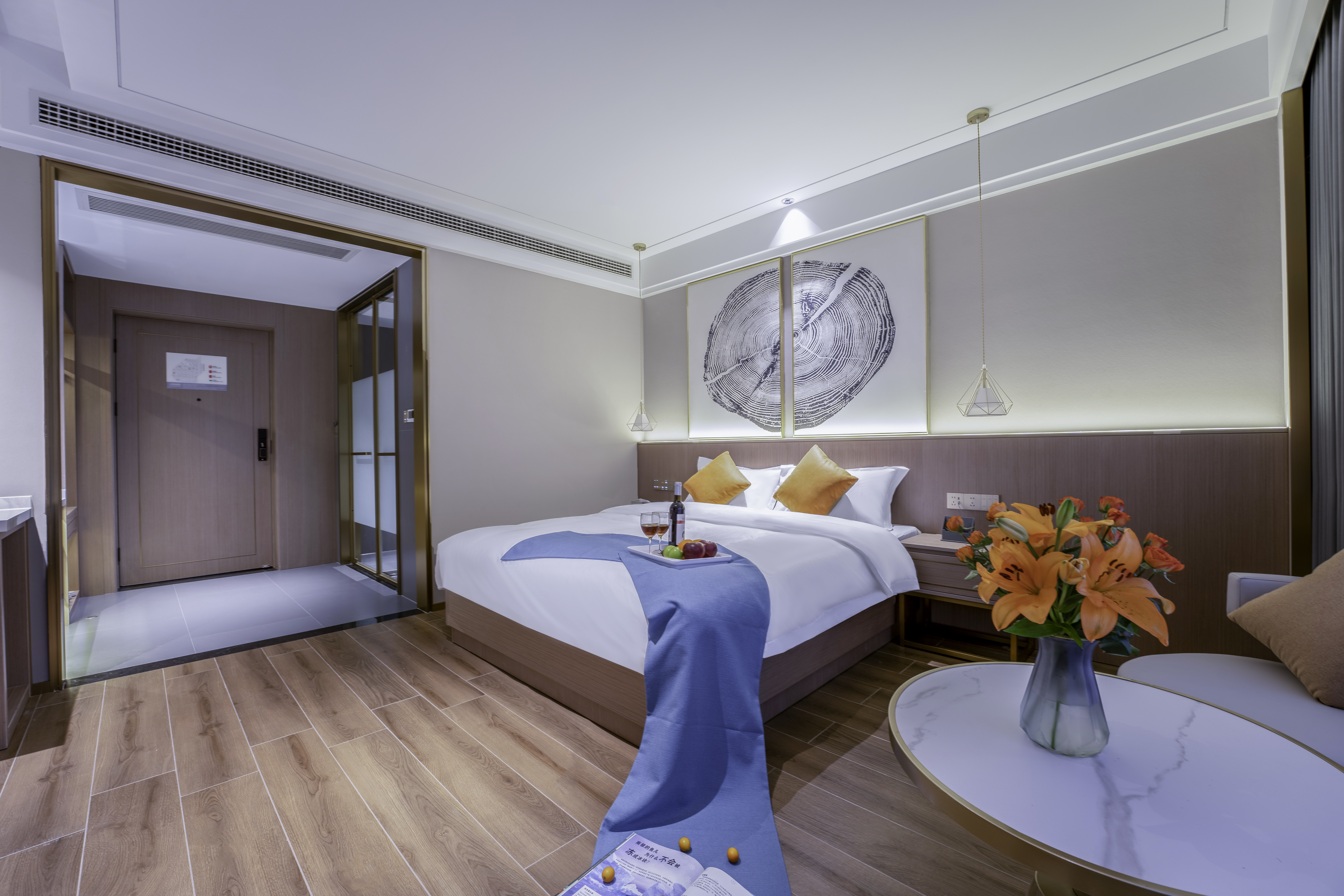 輕奢智能大床房(靜謐+地暖新風+中央空調+定製慕思環保舒適床墊+科勒智能馬桶)